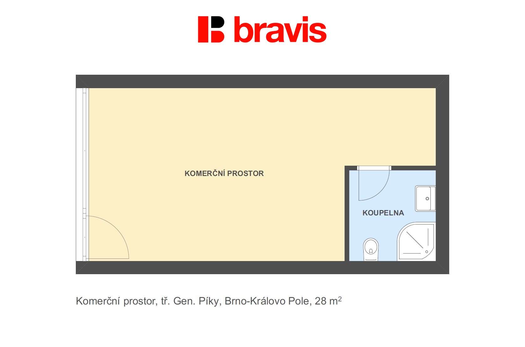 Pronájem obchodního prostoru 35 m2, Brno - Černá pole, ul. Tř.Generály Píky, s výlohou a park.stáním