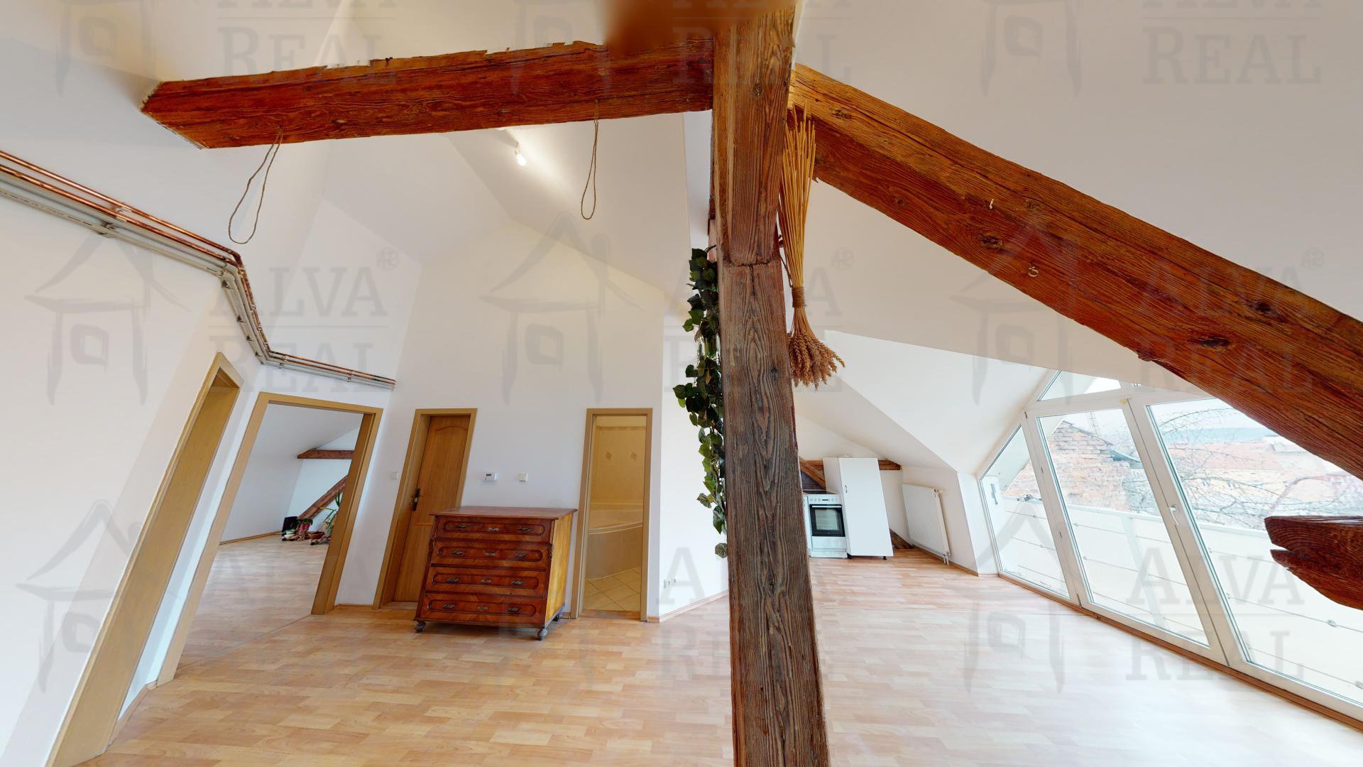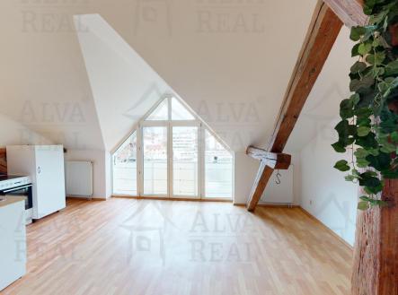 Pronájem podkrovního bytu 3+kk 90 m², ul. Štěpánská, Brno - střed s balkonem a výhledem na Petrov a