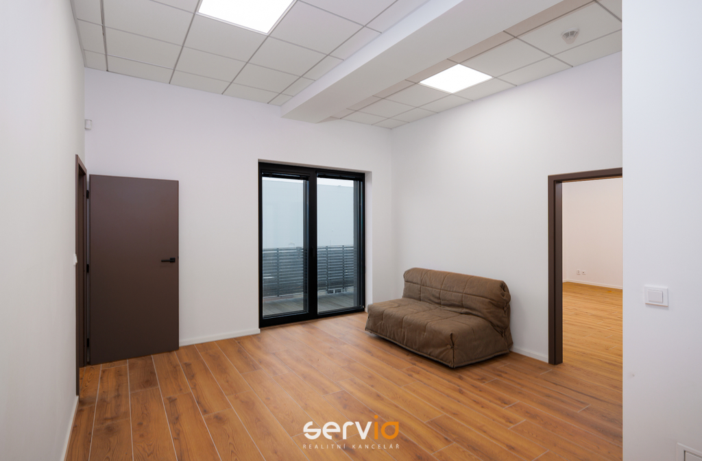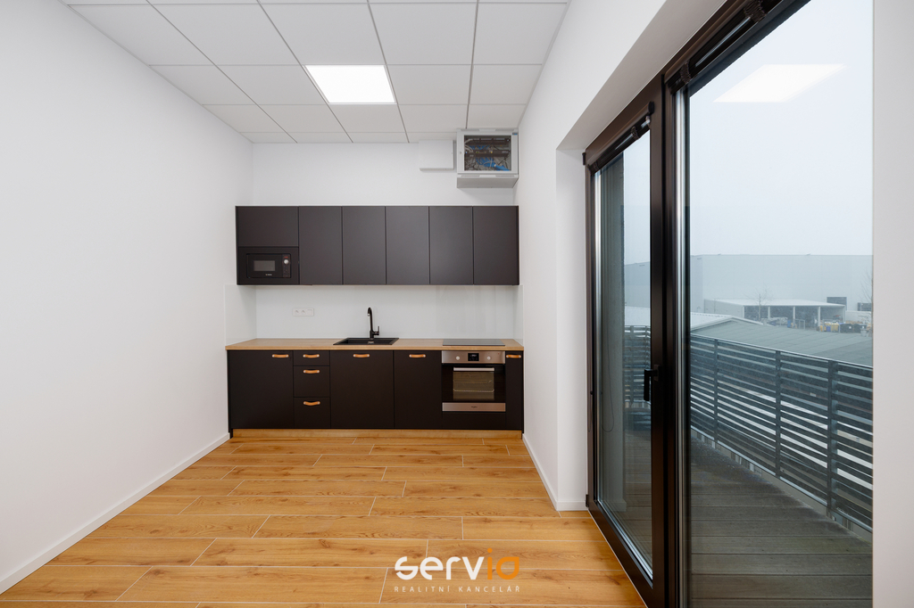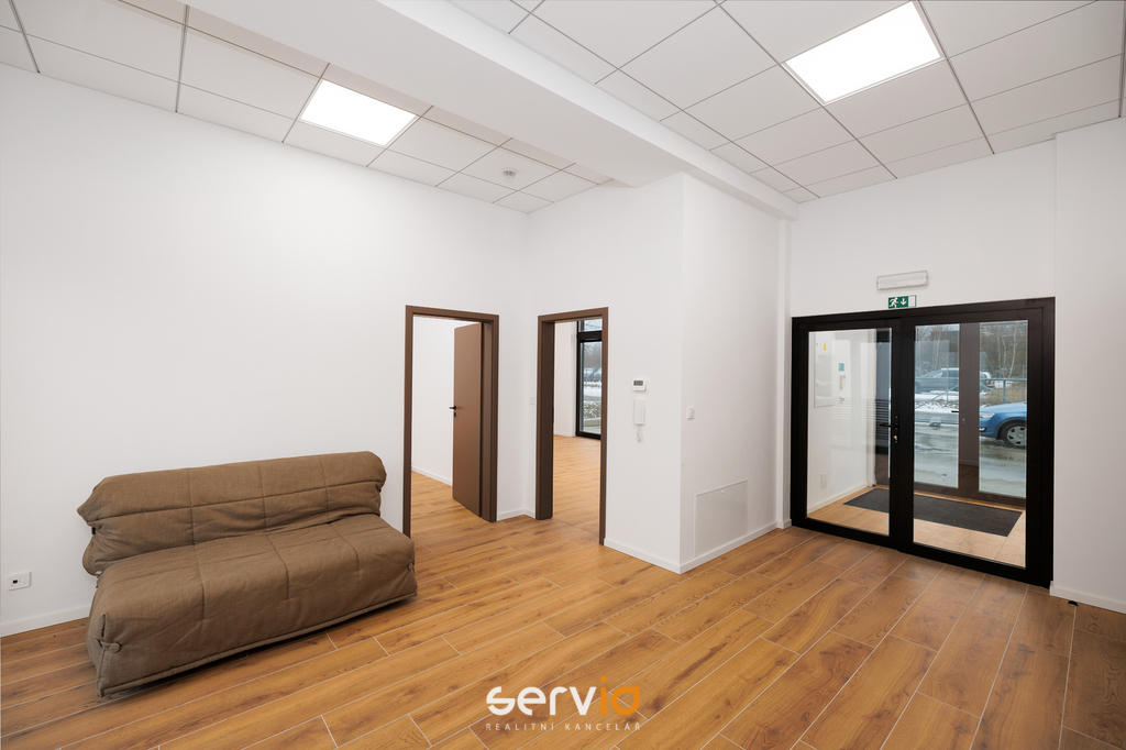 Nabízíme k pronájmu kancelářské prostory o rozloze 94 m2 v Brně - Líšni, na ulici Úlehlova. Prostory se nacházejí v 1.NP/3.NP a skládají se ze 2 neprůchozích klimatizovaných místností, recepce, samostaté plně vybavené kuchyně spotřebiči Whirlpool, sprchy, 2x WC a balkonu (18,4 m2) se třemi samostatnými vstupy. Další vybavení: podlahové vytápění, solární panely, dlažba, přípojka internetu, kabelové rozvody. Jinak nezařízeno. Minimálně 2 garantovaná parkovací stání za uzamykatelnou bránou. Rozměry jednotlivých místností: chodba: 20,3 m2, 1 místnost: 30,5 m2, 2 místnost: 22,3 m2, chodba: 2,4 m2, sprcha: 4 m2, WC: 1,1 m2 a 2,3 m2, kuchyň: 11,1 m2, balkon: 18,3 m2. Měsíční nájemné činí 30.000,- Kč +DPH, +zálohy na služby a energie ... Kč/měs. +DPH. Provize RK 1 měsíční nájem + DPH. Další informace a cena u RK.