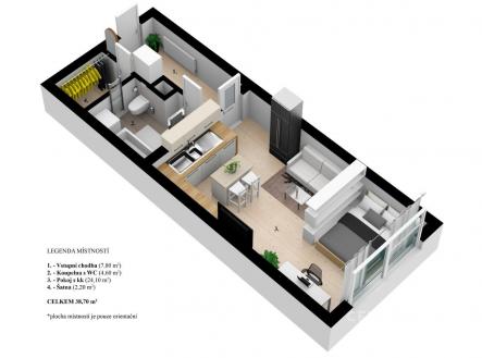 Pronájem bytu, 1+kk, 38 m²