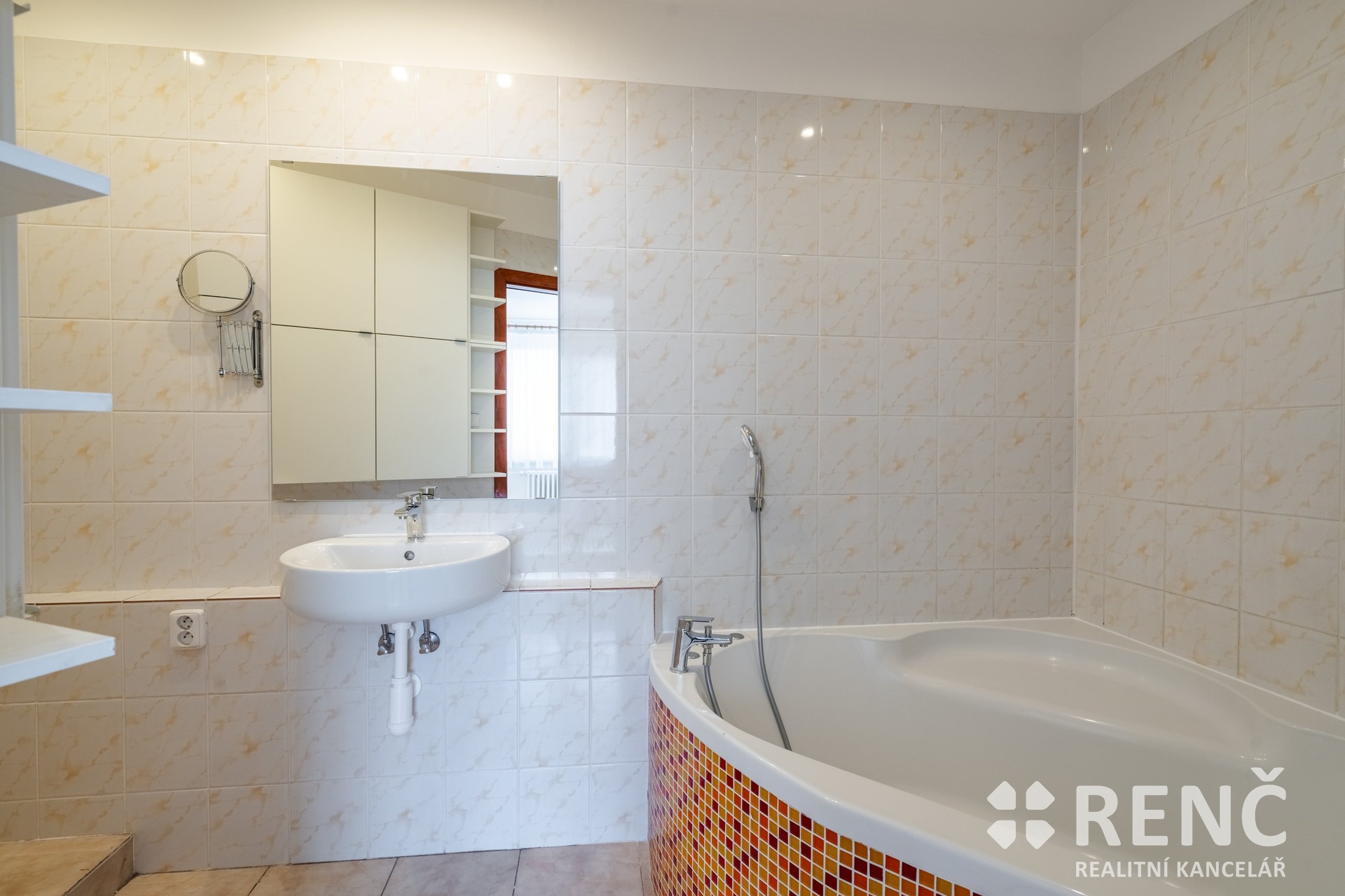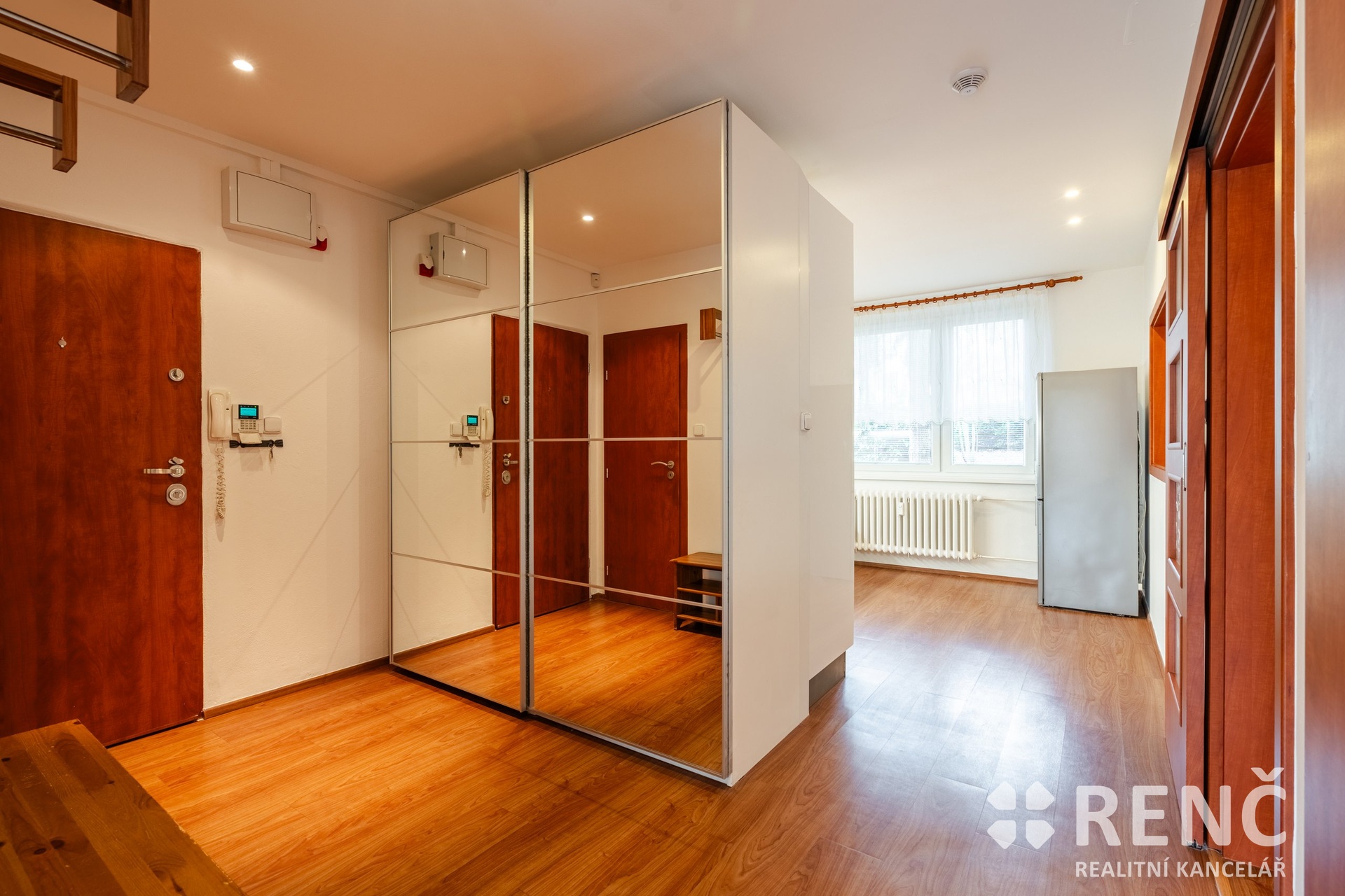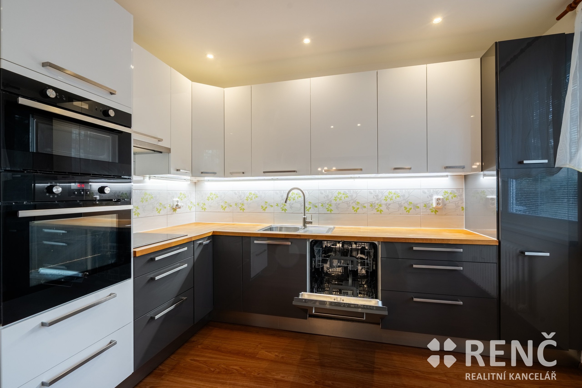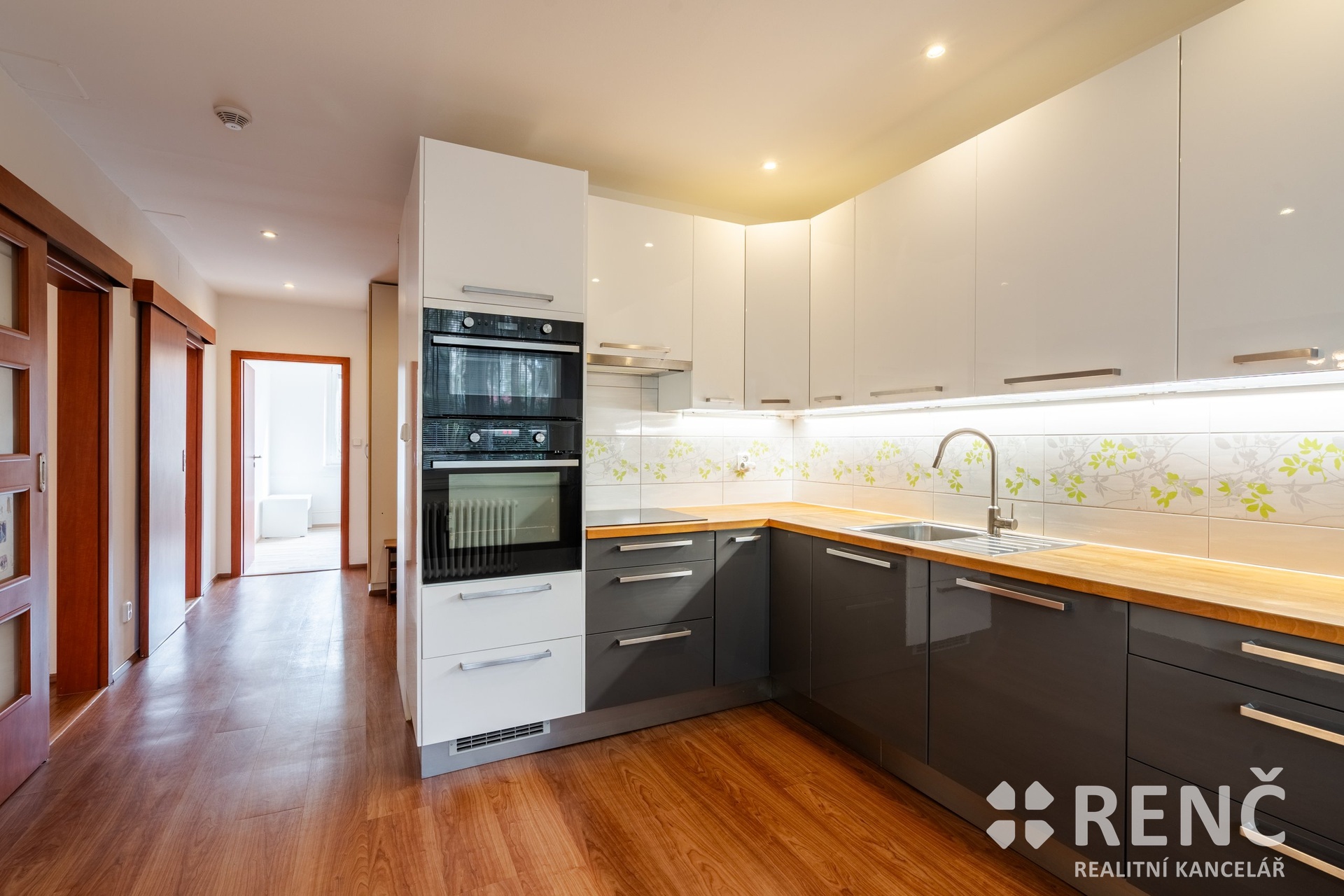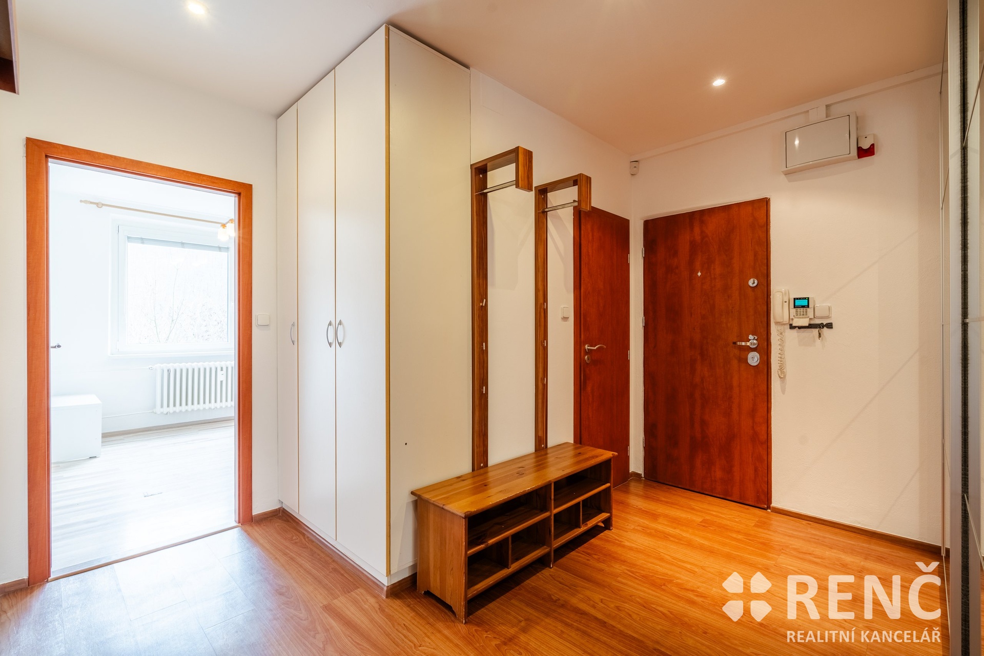 K pronájmu nabízíme moderně zrekonstruovaný byt o dispozici 3+1, který se nachází v 1. podlaží panelového bytového domu na ul. Černého v Brně – Bystrci. Byt je obklopen zelení a má krásný výhled do Údolí oddechu a obory Holedná. Celková podlahová plocha bytu je 70,7 m2 + balkon 2,7 m2 + sklep 2,4 m2. Z prostorné předsíně bytu vstupujeme do kuchyně, která je oknem propojena s obývacím pokojem, ze kterého se vstupuje na balkon. Obě ložnice a toaleta jsou samostatně přístupné z předsíně. Byt je orientován východním a západním směrem. K bytu náleží sklepní box a dále je možné využívat společný balkon na mezipatře domu. V bytě i sklepě je instalován bezpečnostní systém. Byt je po celkové rekonstrukci, byla vybudována nová koupelna s rohovou vanou, umyvadlem, koupelnovým nábytkem a prostorem pro umístění pračky a samostatná toaleta s umyvadlem. V bytě jsou instalovány plastová okna se žaluziemi, byly vyměněny vnitřní dveře a vstupní bezpečnostní dveře, položena plovoucí laminátová podlaha v ložnicích a marmoleum v kuchyni, obývacím pokoji a předsíni. Kuchyně je vybavena moderní kuchyňskou linkou zn. Ikea s elektrickou varnou deskou, elektrickou troubou, mikrovlnnou troubou, myčkou, spížní skříní a lednicí s mrazákem. V předsíni jsou instalovány dvě prostorné vestavěné šatní skříně a botník. Byt není vybaven nábytkem, je zde pouze bílá skříňka pod televizi a držák na TV. Byt je vybaven osvětlovacími tělesy, záclonami a žaluziemi v oknech. Dům je situován v klidné lokalitě v blízkosti krásné přírody Brněnské přehrady a obory Holedná. V okolí domu je veškerá občanská vybavenost (obchod, škola, školka, dětská hřiště). Od domu je dobré spojení MHD do centra Brna i autem na dálnici. Kauce je ve výši jednoho měsíčního nájemného. Byt bude volný k nastěhování od 15. 3. 2026 a je zde možnost dlouhodobého nájmu. Prohlídky bytu jsou možné ihned.
