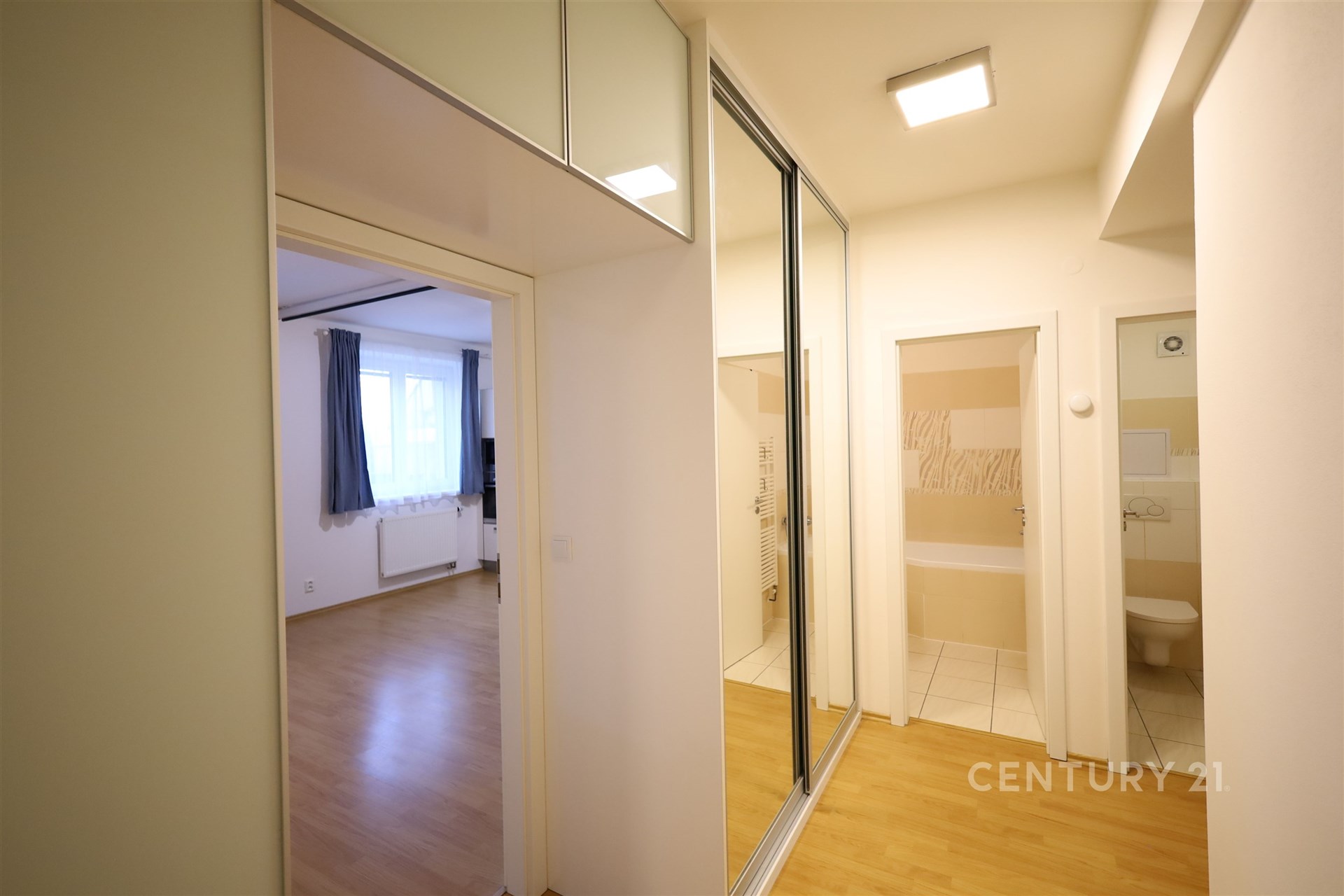 Pokud hledáte kombinaci klidného bydlení s terasou do vnitrobloku a skvělou dostupnost do centra i na dálnici, tento byt je pro vás ideální. Nabízíme k pronájmu světlý a prostorný byt 3+kk v cihlovém bytovém domě z roku 2009 na ulici Cacovická v klidné části Husovic, nedaleko sídliště Lesná. Dispozice a vybavení: ● Obývací pokoj s kuchyní (25 m2): moderní linka se spotřebiči (indukce, digestoř, myčka, lednice s mrazákem, trouba, mikrovlnka), vchod na balkon (8 m2), obýváková část je vybavena elektrickým projektorovým plátnem, vhodným pro domácí kino, okna na východ do klidné ulice. ● Ložnice (15 m2): vybavena manželskou postelí (King Size) a vestavěnou skříní. Z ložnice vyjdete na velkorysou terasu (20 m2) s přímým vstupem do klidného vnitrobloku. Okna na západ. ● Druhý pokoj (12 m2): nezařízený, ideální jako dětský pokoj nebo pracovna. Okna na východ. ● Příslušenství: Koupelna s vanou, topným žebříkem a přípojkou na pračku, samostatná toaleta, praktická komora v bytě a dvě prostorné vestavěné skříně v předsíni, které zajistí dostatek úložného prostoru. K bytu náleží sklep (2 m2). Technické detaily: ● Vlastní plynový kotel (vytápění i ohřev vody máte pod kontrolou). ● Plastová okna, plovoucí podlahy. ● Energetická třída C (úsporné bydlení). ● Parkování v modrých zónách C přímo u domu. Lokalita: Byt je v klidné vedlejší ulici s minimem dopravy. Do centra dojedete tramvají č. 4 za 15 minut, nově vybudovaný nájezd na městský okruh je otázkou minuty (směr Židenice a dále na D1). Milovníci pohybu ocení cyklostezku podél Svitavy, která vede až do Bílovic. Nedaleko se nachází supermarkety Lidl, Albert a Penny, cca 3 minuty autem. Byt je volný ihned. Majitel preferuje nájemníky na dlouhodobý pronájem, nekuřáky. Vhodné pro pracující, rodiny i studenty. Ozvěte se nám a dohodněte si prohlídku s makléřem.