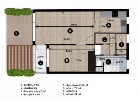Nabízíme k prodeji útulný byt 2+KK se soukromou zahradou, který se nachází na ulici Sokolnická v Brně v Tuřanech. Bytová jednotka o užitné ploše 48,2 m² je umístěn v 1. nadzemním podlaží zděného domu s pavlačí. Díky orientaci na jihozápad a do klidného vnitrobloku nabízí příjemné a ničím nerušené bydlení. Dispozice bytu je praktická a promyšlená. Tvoří ji vstupní předsíň (2,4 m²) s navazující chodbou (3 m²), koupelna s toaletou (4,5 m²), prostorný obývací pokoj (19,6 m²) s kuchyňským koutem (6,5 m²) a ložnice (12,2 m²) vybavená skříní. Velkou výhodou jsou okna v kuchyni i koupelně, která zajišťují přirozené denní světlo a možnost přirozeného větrání. Součástí bytu je také lodžie o velikosti 5 m², která přímo navazuje na soukromou zahradu o ploše 30 m² s pergolou a přívodem vody, což je ideální pro péči o zeleň, letní posezení či další venkovní aktivity. K bytu náleží také sklep o velikosti 1,7 m². Byt je ve velmi dobrém technickém stavu. Elektroinstalace je v mědi, rozvody vody v plastu, okna jsou dřevěná s izolačním dvojsklem. V roce 2020 byla položena vinylová podlaha a zrekonstruována kuchyň, v roce 2021 byly vyměněny interiérové dveře a v roce 2023 byl instalován nový plynový kotel značky Viessmann, který zajišťuje vytápění i ohřev vody. Celkové měsíční náklady pro dvě osoby činí cca 4.800 Kč. Městská část Tuřany patří mezi oblíbené a plně funkční lokality Brna. Nabízí výbornou dopravní dostupnost – rychlé napojení na dálnice D1 a D2, snadný přístup na městský okruh a pohodlné spojení MHD do centra města, na Campus Square i do FN Brno. Zastávka MHD se nachází jen pár kroků od domu. Parkování je bezproblémové přímo před domem i v jeho okolí, bez modrých zón. Velkou výhodou je také blízkost nákupních a zábavních center Olympia, Avion Shopping Park a OC Kastaňová, která jsou dostupná během několika minut jízdy autem. Tuřany disponují kompletní občanskou vybaveností – mateřskou i základní školou, lékaři, veterinou, poštou, bankomatem, obchody i dalšími službami pro každodenní život. Přímo za domem se nachází dětské hřiště a v okolí je dostatek zeleně a možností k rekreaci. Nechybí cyklostezky vedoucí směrem na Újezd u Brna nebo do přírody podél řeky Dunávky. Tuřany jsou známé svou komunitní atmosférou, pravidelnými trhy, místními akcemi a dobrou dostupností sportovišť. V případě zájmu o prohlídku nás neváhejte kontaktovat. Rádi vám byt osobně představíme.