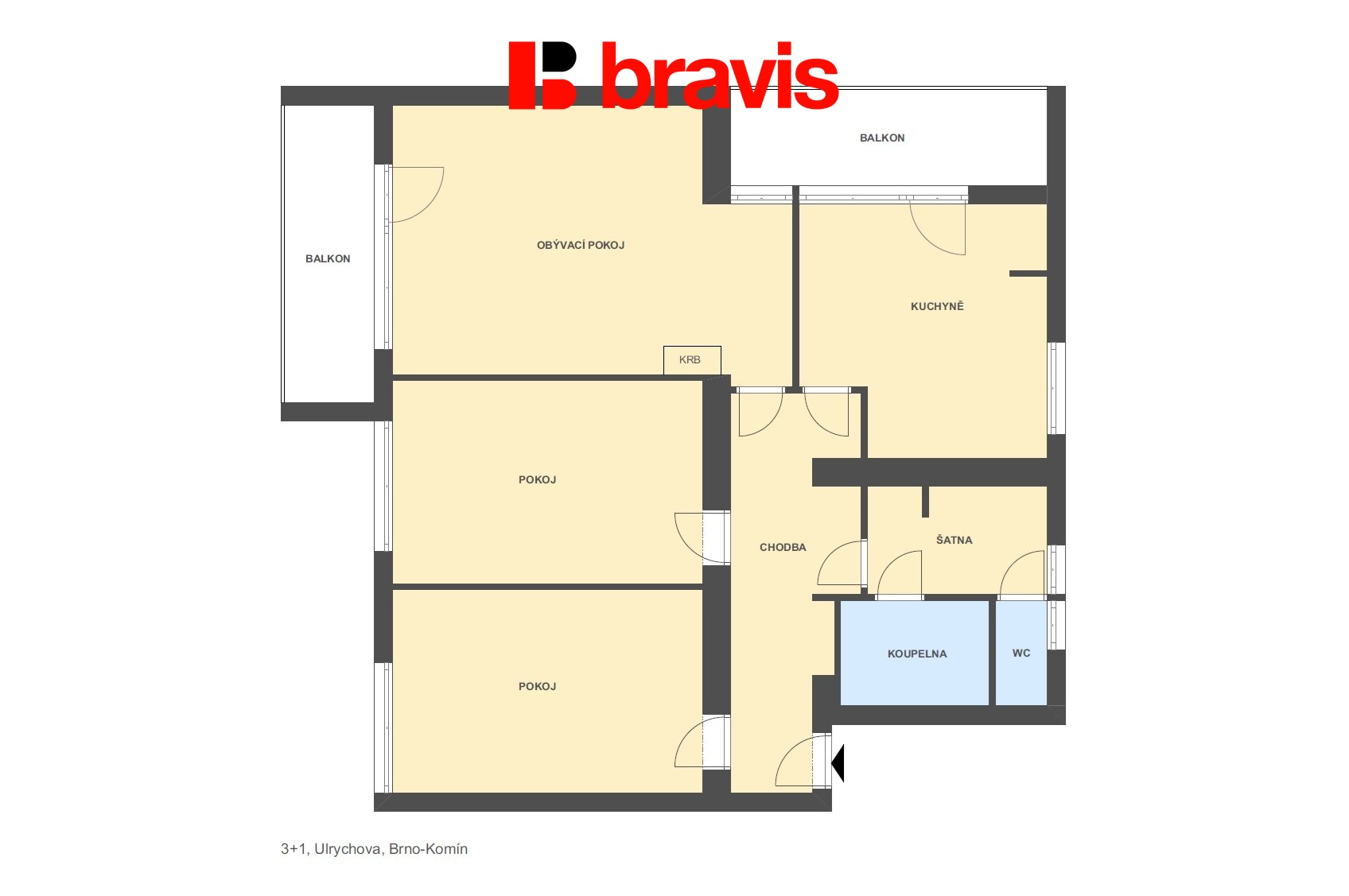 Velkorysý byt 3+1 s dvěma lodžiemi 110 m2 a potenciálem krásné rekonstrukce – Brno-Komín