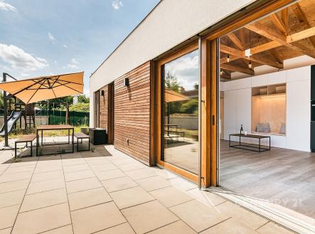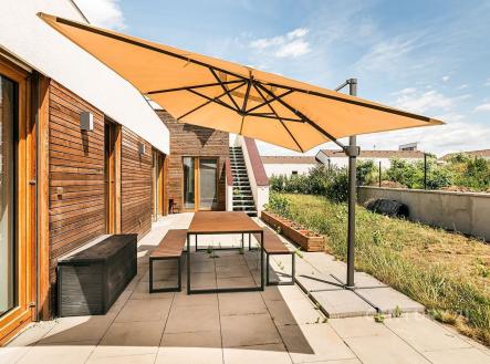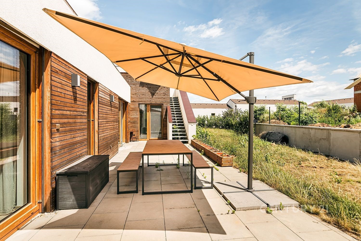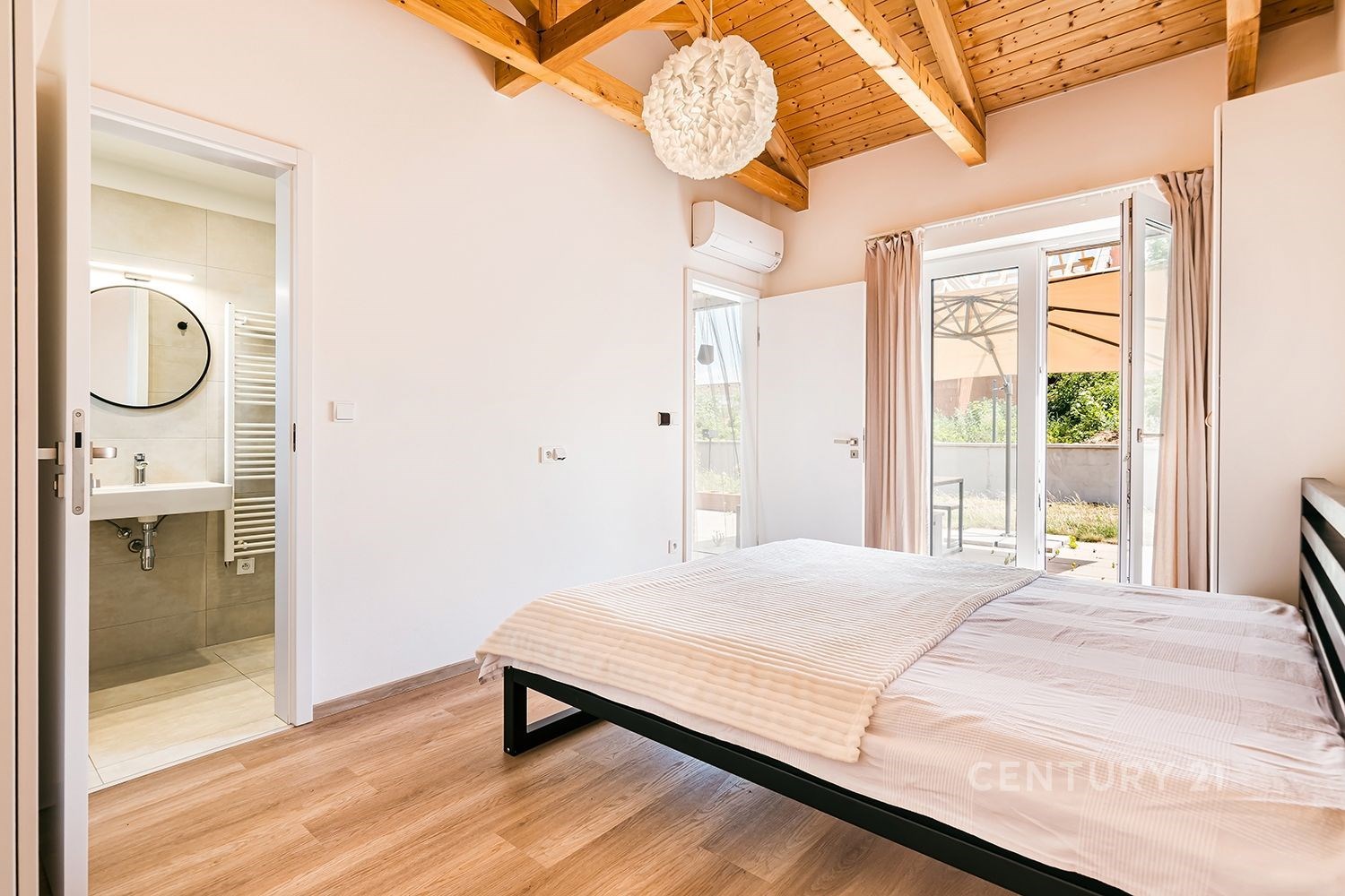 Hledáte místo, kam uniknout z ruchu města, a přitom se nevzdat svého pohodlí? Vítejte v Brodě nad Dyjí. V obci, kde vítr voní vínem, slunce zapadá nad hladinou Novomlýnských nádrží a večery patří posezení na terase… Právě zde nabízíme ke koupi moderní dům s dispozicí 3+kk, zkolaudovaný v roce 2021. A rozhodně nejde o žádný tuctový domek – tohle je místo, kde se snoubí funkčnost, promyšlený design a atmosféra domova. Interiér byl navržen s důrazem na detail. Většina nábytku je vyrobena na míru, vše do sebe perfektně zapadá. Kuchyňská linka je vybavena vestavěnými spotřebiči – myčkou, lednicí s mrazákem, varnou deskou, troubou – stačí jen přivézt zásoby a můžete vařit. K dispozici jsou dvě koupelny, každá se svou toaletou – ideální řešení pro rodinu i návštěvy. Podlahové topení se postará o příjemné teplo v zimě, klimatizace o komfort v létě, venkovní žaluzie oceníte po celý rok. Energetický průkaz B vám zajistí nízké náklady na provoz. Praktická venkovní komora pojme kola, nářadí nebo třeba paddleboardy. Všechny obytné místnosti mají francouzská okno pro vstup na terasu, která láká k snídani pod širým nebem, odpolednímu odpočinku či večernímu grilování. Parkování? Přímo před domem na vlastním pozemku jsou dvě místa jen pro vás. A pokud byste zatoužili po větším výletu, stačí nasednout na kolo nebo do auta. Kousek od domu se rozprostírá vodní nádrž Nové Mlýny, na dohled jsou Pálavské vrchy, vinařské stezky, Mikulov, Lednickovaltický areál, Aqualand Moravia nebo klidné rybářské zátoky. Brod nad Dyjí je menší, ale živá obec s obchodem, mateřskou školou, knihovnou i restaurací. Vše ostatní najdete pár minut jízdy v Pasohlávkách nebo Mikulově. Ať už hledáte místo pro život, rekreační útočiště nebo investiční příležitost s potenciálem, tento dům vám nabídne víc než jen střechu nad hlavou. Zavolejte si o prohlídku. Možná právě tady začne vaše nová životní kapitola.