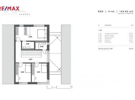Rádi bychom vám představili developerský projekt Rezidence Brodce, který nabídne 19 prostorných a nadstandardně vybavených řadových domů se soukromou zahradou v krásné a klidné lokalitě, na okraji obce Brodce. Nabízíme vám zde moderní dvoupodlažní dům s velkorysým prostorem, dispozicí 4+kk a užitnou plochou 149,85 m2, který vám poskytne maximální komfort. Tento dům bude dokončen a zkolaudován do 6 měsíců od složení rezervační zálohy. Stále si tak můžete vybrat standardy a materiály podle sebe. V 1. podlaží najdete garáž, technickou místnost, zádveří, toaletu a obývací pokoj s kuchyňským koutem, ze kterého je přímý vstup na prostornou terasu, která propojuje dům se zahradou a kde si vychutnáte příjemné posezení a relaxaci, nejen při letním grilování. Díky prosklenému obytnému prostoru je hezky propojený interiér s exteriérem. Druhé podlaží vám nabídne chodbu se schodištěm, dva dětské pokoje, koupelnu a ložnici s vlastní koupelnou. Dům se bude vyznačovat výrazným a moderním designem a vysokými standardy s použitím těch nejkvalitnějších materiálů. Najdete zde vinylové podlahy a elegantní velkoformátové obklady a dlažby. Osvětlení veškerých místnosti zajistí energeticky úsporné LED světelné zdroje. Interiér bude vybaven bezfalcovými dveřmi včetně kování. Podomítkové baterie nabídnou úsporu místa. Spolehlivost, bezpečnost a estetiku zajistí zásuvky a vypínače JUNG. Zárukou tepelné izolace nejvyšší úrovně budou energeticky úsporná hliníková okna, která zajišťují dlouhou životnost a moderní vzhled. K vytápění bude využito tepelné čerpadlo a podlahové vytápění. Nebude chybět rekuperace, která zajistí neustálý přísun čerstvého vzduchu a minimalizuje ztráty tepla. Díky použití špičkových materiálů a nejnovějších technologií nabídne toto bydlení kombinaci luxusu, komfortu a energetické efektivity. Místo k zaparkování vozidla vám zajistí nejen garáž, ale také parkovací stání před domem. Další stání v rámci rezidence mohou využívat vaši hosté. Obec nabízí veškerou potřebnou občanskou vybavenost, základní i mateřskou školu, poštu, obchod, restauraci, lékaře. Pouhé 3 minuty od rezidence se nachází nájezd na dálnici D10, což vám zajistí skvělou dostupnost, do Prahy na Černý most se dostanete za 20 minut a v Mladé Boleslavi jste za 10 minut. Případně můžete využít městskou dopravu, zastávka autobusu je v docházkové vzdálenosti. Okolí vám nabídne krásnou přírodu, na výlety se dá vydat do nedalekých skalních měst či k množství rybníků v čele s Máchovým jezerem. Milovníci horských túr najdou vyžití v pár kilometrů vzdáleném Českém Ráji a v pohoří Krkonoš. Kulturní nadšenci ocení divadlo, kino, muzeum anebo hrad v Mladé Boleslavi. V případě zájmu o rezervaci konkrétního domu se skládá částka ve výši 300.000 Kč, následně se do 30 dní podepisuje smlouva o smlouvě budoucí kupní a doplatek do 15% z ceny domu. Až po kolaudaci je do 30 dní splatný zbytek, tj. 85% ceny domu. Pokud vás naše nabídka zaujala, neváhejte se ozvat a rádi vám poskytneme další informace.