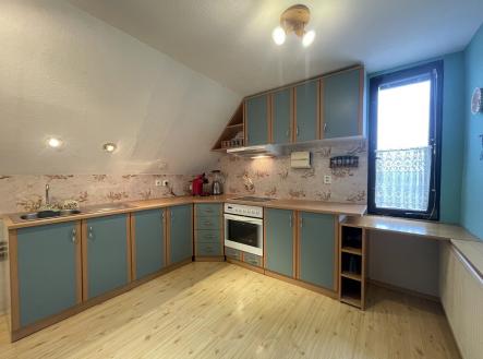Hledáte kvalitní rodinné bydlení s velkým pozemkem v klidné lokalitě? Tento prostorný dům o celkové užitné ploše 234 m² v oblíbené části Broumova – Spořilov vám nabízí skvělou dispozici, dostatek úložného prostoru a krásnou zahradu. Na pozemku je navíc relaxační zóna se srubem a prostor pro bazén nebo hřiště. Hlavní benefity: - Velký a čistý pozemek 1 552 m² – dostatek soukromí, relaxace i velkorysý prostor pro moderní zahradničení nebo umístění bazénu - Praktické dispoziční řešení domu – ideální pro větší rodinu nebo dvougenerační bydlení - Sklepní prostory 76 m² – m.j. garáž, posilovna, prádelna, kotelna, sklady ovoce a zeneniny a přímý vstup do obytné části - Dvě obytná podlaží – včetně dvou kuchyní, několika ložnic/pokojů a pracovny - Terasa, balkón a lodžie – jihovýchodní a jihozápadní orientace pro maximální světlo a výhledy - Půda pro uložení sezónních věcí - Vytápění plynovým kotlem a ohřev vody elektrickým bojlerem - Dům je zateplen a má plastová okna - Další vybavení na pozemku – druhá garáž a srub pro letní odpočinek Dispozice domu: Sklep (76 m²): m.j. garáž, posilovna, prádelna, kotelna, sklady potravin i přímý vstup do bytové části Přízemí (77 m²): obývací pokoj (s terasou 8 m²), kuchyně s jídelním koutem, ložnice (s balkonem 7,2 m²), dětský pokoj, koupelna s vanou i sprchovým koutem, samostatné WC Podkroví (50 m²): druhá kuchyně, pracovna s lodžií, velký obývací pokoj s lodžií, WC Lokalita: Dům se nachází v klidné čtvrti Spořilov v severní části Broumova, v okolí je příjemná zástavba rodinných domů, dostatek zeleně a veškerá občanská vybavenost. Tato nemovitost je ideální volbou pro rodinu, která hledá dostatek prostoru, soukromí a pohodlí, případně jako dvougenerační bydlení. Majitelé, lékaři, se stěhují za prací, a proto dům prodávají. Neváhejte a domluvte si prohlídku!
