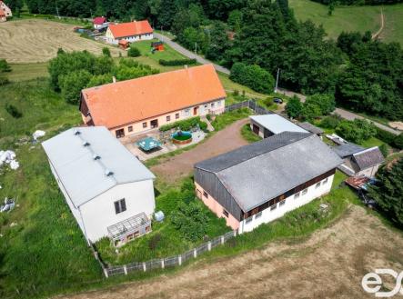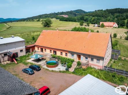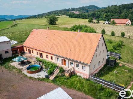 Hledáte romantickou, rozlehlou usedlost pro podnikání či k sestěhování větší rodiny? Nabízíme k prodeji bývalou zemědělskou usedlost s pozemky o celkové ploše 3996m², nacházející se v klidné části obce Rožmitál u Broumova, okres Náchod. Nemovitost nabízí krásný prostorný byt o velikosti 4+1, který se nachází v přízemí budovy s užitnou plochou cca 184m². Součástí obydlené budovy jsou další prostory, které v minulosti sloužily jako kanceláře a mají celkovou plochu 114m2. Tento objekt prošel nákladnou nedokončenou rekonstrukcí. V areálu objektu stojí další 3 budovy sloužící jako sklady a garáže pro auta. Odpady jsou řešeny kanalizací. Přívod vody je zajištěn vlastní studnou. Topení řešeno naprostým komfortem automatického vytápění kotle na tuhá paliva s emisní třídou 5 - ekodesign. Dominantou této nemovitosti je velký prostor uvnitř areálu, příroda v okolí CHKO Broumovsko a Polské hranice vzdálené pouhých cca 5km. V případě zájmu o prohlídku mne neváhejte kontaktovat.