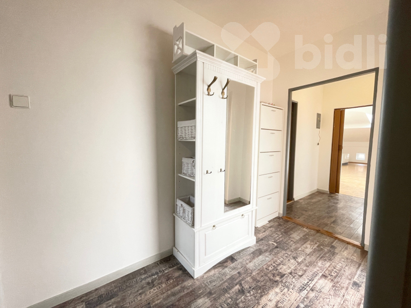 Nabízím k pronájmu prostorný byt o dispozici 3+1 a velikosti přibližně 120 m2, který se nachází ve 3. patře bytového domu bez výtahu, v klidné části Broumova, jen pár minut chůze od náměstí. Podkrovní byt je po částečné rekonstrukci, působí velmi příjemně a nabízí dostatek prostoru jak pro pár, tak pro rodinu. Byt disponuje: - kuchyní s kuchyňskou linkou a spotřebiči, (s myčkou). - obývacím pokojem, s úložními prostory. - dvěma samostatnými pokoji. - koupelnou, s WC, bidetem a vanou. - dostatkem úložného prostoru. - zavedeným internetem. K bytu dále náleží: - možnost uzamykatelné kolny, - možnost využívání zahrady u domu, Velkou výhodou je nadstandardní velikost bytu, která v této lokalitě není běžná. Technické informace: - vytápění: elektrická akumulační kamna, - ohřev vody: elektrický bojler, Lokalita nabízí kompletní občanskou vybavenost v docházkové vzdálenosti - obchody, služby, školy i centrum města. Finanční podmínky: - Nájemné: 11.500 Kč / měsíc - Zálohy na energie a služby: cca 5.000 Kč / měsíc (dle počtu osob a spotřeby) - Kauce: 25.000 Kč - Provize RK: 12.100 Kč Byt je volný ihned. V případě zájmu o prohlídku mě neváhejte kontaktovat, rád Vám byt osobně ukážu a zodpovím dotazy.