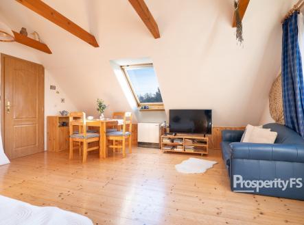 Prodej rodinného domu 155 m² - CHKO Broumy - Křivoklátské lesy Nabízíme k prodeji útulný rodinný dům v klidné oblasti Křivoklátských lesů CHKO Broumy. Nemovitost se nachází v chatové oblasti zhruba 1km od samotné vesnice Broumy a poskytuje dokonalé řešení, pokud hledáte soulad přírody a pohodlného bydlení. Rozlehlé lesy nacházíme zhruba ve vzdálenosti 100m od branky na pozemek a nemovitost tak může být používána i jako chalupa. Parametry nemovitosti a pozemku: • 1.NP: 83 m² - 3+1 • 2.NP: 72 m² - 3kk • Garáž + dílna: 57 m² • Pozemek: 1 690 m² Obytná část • Byt v 1.NP je ve starším, typicky venkovském stylu, s kouzelnou atmosférou a tradičním vybavením. Byt je přesto plně funkční a samostatný včetně plnohodnotné kuchyně, toalety a sprchového koutu. • O teplo domu se starají krásná akumulační kamna, která rozvádí teplý vzduch po celém domě. Dále je k dispozici 2x tepelné čerpadlo vzduch-vzduch a 3x přímotop • Byt v 2.NP je zařízen taktéž jako plně samostatná bytová jednotka, tentokrát ve stylu z přelomu roku 2000 s důrazem na použití dřeva • Vytápění/chlazení pomocí tepelného čerpadla vzduch/vzduch + akumulačních kamen v přízemí a další 3 kusy přímotopů Neobytná část • Dům je v části terasy a chodby podsklepen o výměře 4 m² • Garáž je průchozí z jednotky v 1.NP, včetně dílny nabídne výměru 57 m² a poskytuje 1 garážové stání pro auto + motorku. V druhé místnosti nabídne prostor pro uskladnění jízdních kol, nábytku, nářadí apod. • Pozemek • Výměra pozemku dalece přesahující 1600 m² nabídne dostatek prostoru pro další kreativitu a v aktuální podobě nabízí následující • Dvě parkovací stání před garáží • Krytý bazén • Venkovní krb pro grilování a společné chvíle s rodinou a přáteli • Záhon s množstvím bylinek a zeleniny • Jabloně, ořech a jiné okrasné dřeviny • Okrasnou skalku s květinami, která dotváří kouzlo zahrady • Kopanou studnu do 8m s hladinou vody 4m, kopanou studnu do zhruba 3m s hladinou vody 1m na zalévání • Vlastní jímka o velikosti 9 m³ Lokalita: Dům se nachází v krásném a klidném prostředí s dobrou dostupností do přírody Křivoklátských lesů, ideální pro rekreační využití i celoroční bydlení. Dojezdová vzdálenost do Berouna 25min, Kladno 35min, Praha 50min