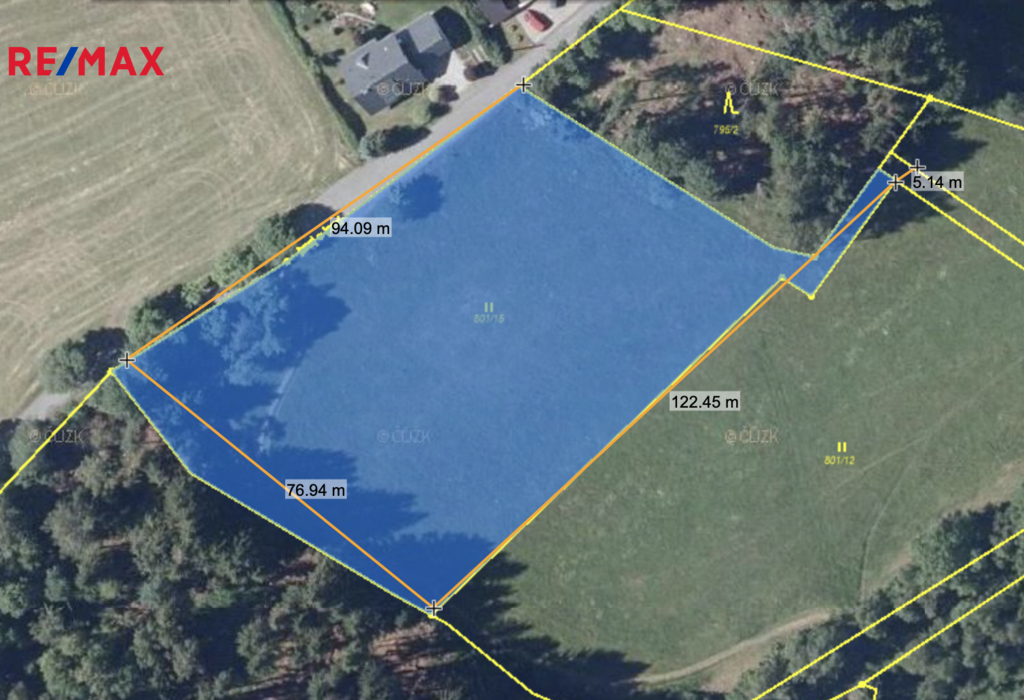 Pozemek v obci Bublava na hranici s Německem, velikost 7.001 m2 v blízkosti zástavby
