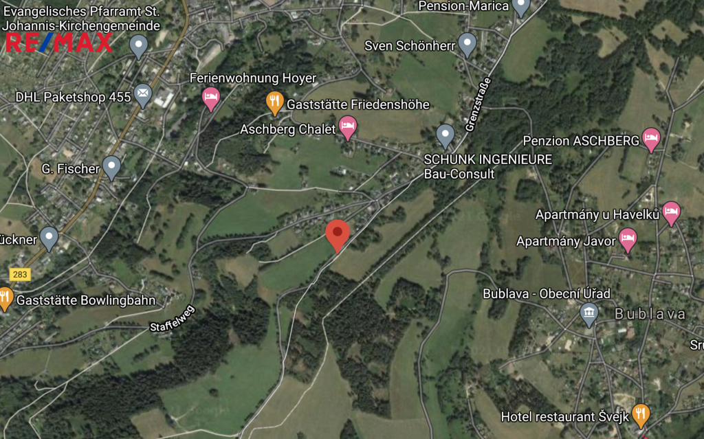 Pozemek v obci Bublava na hranici s Německem, velikost 7.001 m2, trvalý travní porost, v blízkosti zástavby. V nabídce pozemky i v jiných částech Krušných Hor (vhodné pro stavbu rod. domů, chat a rekreačních zařízení i komerčních objektů jako penzionů a podobně) v těchto lokalitách: Bublava, Stříbrná, Tisová a Zelená hora. Čím je oblíbená Bublava: Oblíbený lyžařský areál pod vrcholem Olověný vrch. Několik vleků a sjezdových tratí různých obtížností. V okolí obce možnost i běžeckého lyžování. V létě oblíbená lokalita pro cykloturistiku a pěší turistiku. V případě zájmu bližší informace u makléře