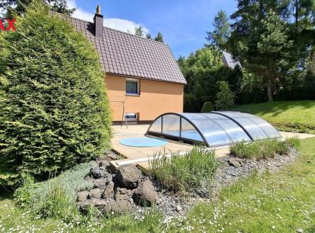 Nabízíme zrekonstruovanou, zateplenou, útulnou chatu s bazénem, vhodnou k celoročnímu užívání i s možností trvalého bydlení v obci Guntramovice, Budišov nad Budišovkou, Oderské Vrchy. Celková výměra pozemků je 1541 m², zastavěná plocha 46 m², obytná plocha cca 75 m², příjezd po obecní komunikaci. Atmosféra místa nelze na fotkách zachytit, proto vás srdečně zveme na prohlídku této kompletně zrekonstruované rekreační chaty. Ať už hledáte místo pro rodinnou rekreaci, víkendový únik z města, celoroční bydlení v klidné oblasti nebo inspirativní prostor k tvoření – možná právě tady najdete to své. Dispozice a vybavení chaty: 1. NP - zádveří, kuchyň s novou kuchyňskou linkou na míru, sporákem se sklokeramickou deskou, el. troubou, lednice, technická místnost, spižírna, 2. NP - koupelna s rohovou vanou a toaletou, obývací pokoj s krbovými kamny, 3. NP - prostorná ložnice a malý pokoj. Kapacita chaty je pohodlně 4 až 6 osob, víkendově více v případě umístění dalších míst na spaní. Chata se nabízí s veškerým zařízením. Dům procházel postupně rekonstrukcí - plastová okna, zateplení, fasáda, střecha, ústřední topení ve všech podlažích, vytápění kotlem na pevná paliva VIADRUS, elektrický bojler (210 l). Zdrojem pitné vody je vlastní studna. V obývacím pokoji se nachází krbová kamna, která nejen že jsou alternativní možností vytápění, ale rovněž vytvářejí příjemnou atmosféru. V chatě je ve 2 patrech satelitní rozvod a příprava na WI-FI. Dům se nachází uprostřed oplocené okrasné zahrady se slunnou terasou a zapuštěným bazénem ALBIXON se zastřešením a protiproudem. Pod zahradou se nachází vstup do sklípku, který lze využít jako vinný sklípek. Ve spodní části pozemku je postavena kůlna na nářadí, dílna, tři krytá garážová stání, betonový gril, skleník a kuželky. Tento rekreační objekt nabízí komfortní zázemí pro víkendové i celoroční bydlení. Díky pečlivé rekonstrukci, praktickému dispozičnímu řešení a krásnému prostředí je ideální volbou pro rodinu hledající klid a prostor pro relaxaci nebo aktivní trávení volného času. Je ideální pro milovníky houbaření, pěší turistiky a cykloturistiky a na své si v zimním období přijdou i lyžaři a běžkaři. V obci se nachází lyžařský vlek s umělým zasněžováním i večerním lyžováním vhodný i pro rodiny s dětmi a běžkařské trasy. Nedaleko se nachází meteorologická stanice Červená – oblíbený výletní cíl na Červené hoře. Kilometr západně od Červené hory stojí na vyvýšenině osamocená košatá lípa nazvaná Zlatá lípa, od které je krásný rozhled ke Dvorcům, Staré Libavé, Moravskému Berounu a ještě dále na vrcholky Nízkého i Hrubého Jeseníku včetně Pradědu. Celá oblast je vyhledávaným rekreačním místem pro obyvatele Opavska a Ostravska. Opava je vzdálena 30 km, Ostrava 60 km, Olomouc 50 km. Neváhejte mě kdykoliv kontaktovat, ráda Vám tuto nemovitost osobně představím.