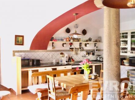 V dojezdové vzdálenosti od Prahy – 18 km od Jesenice, jen 7 km od Benešova, v malebné obci Bukovany, nabízíme na pozemku o rozloze 1554 m2, poctivě rekonstruovanou, prostornou chalupu s osobitým historickým kouzlem, nyní využívanou k trvalému bydlení, ale vhodnou i jen na rekreační účely. Pozemek domu je umístěna na kopci s hezkým výhledem. Přízemí domu s rozlohou 208 m2 nabízí velkorysý prostor o dispozici 4+kk a stejně velkou půdu s vysokými krovy, kde lze realizovat půdní vestavbu po celé její rozloze, s odděleným vchodem. Dům je postaven ještě poctivou starou školou stavebních řemesel, díky čemuž nabízí podmínky, které jsou v moderním stavebnictví již raritou. Od roku 2015 je zcela opravena střecha a po celé ploše je nová krytina. Nabízí se útulný a inspirující prostor pro všechny, kdo preferují zdravé bydlení bez toxických stavebních materiálů. Tento starobylý kamenný dům s 1.2 m silnými zdmi je dobře postaven a možná pro někoho překvapivě je suchý a má dobré izolační vlastnosti, a to jak v létě, tak v zimě. Klenuté stropy ve všech prostorách domu, žulový sloup ve velké obývací kuchyni, špaldová dřevěná okna, různé výklenky, původní dveře z masivního dřeva a kachlová kamna dodávají domu svůj ojedinělý charakter. Kachlová kamna jsou nově postavena asi před dvaceti lety. Dům má další tři pokoje. Z přístupové chodby vede skladová komora s 200 l bojlerem, samostatná koupelna s rohovou vanou a umyvadlem, obložená uměleckou mozaikou a samostatné WC s ručně malovanou obkladovou dlažbou. Přímo z velké obývací kuchyně se lze dostat přímo ven dvěma vchody, severní vede přes pergolu do sadu, za kterým už je les a louka a jižní na kamenné zápraží. Zahrada i sad jsou plné ovocných stromů: třešeň, jabloně, kivi, broskev, blumy, aronie, rybíz, ořešáky, meruňka a dalších vzrostlé okrasné keře a stromy. K domu dále patří dva prostorné venkovní sklepy, které lze využívat k uskladnění vína, nebo ovoce a zeleniny. Nemovitost má vlastní studnu s velmi dobrou a chutnou vodou a novým čerpadlem, rozvody elektřiny v mědi a nové napojení na veřejnou kanalizaci. Vytápění je řešeno elektrickým kotlem s novými radiátory v celém domě – vybudováno v roce 2015, dále lze přitápět v peci, a krbovými kamny v každé místnosti, ohřev vody je zajištěn bojlerem. V obci je dětské hřiště, rybník a knihovna. Veškerá občanská vybavenost je v 2 km vzdáleném Týnci nad Sázavou a v Benešově. Do Týnce jezdí každou hodinu pražská MHD, a je tam vlakové nádraží. V okolí obce je mnoho turistických a cyklistických tras s krásnou přírodou, vodácký ráj na řece Sázavě Pro bližší informace o prodeji a prohlídce nemovitosti prosím kontaktujte makléře.