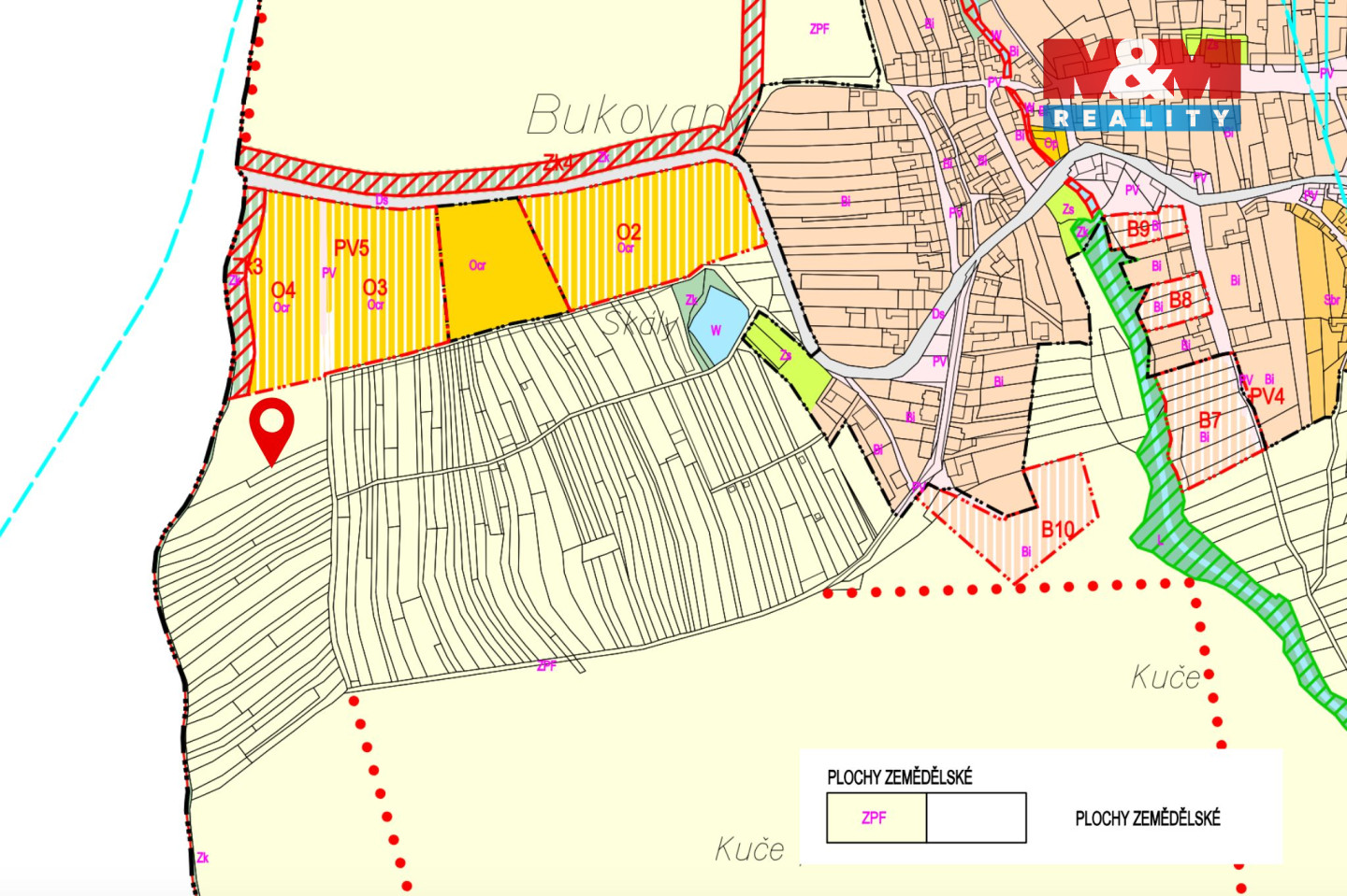 Nabízíme k prodeji pozemek o celkové výměře 1791 m2 v obci Bukovany u Kyjova, okres Hodonín. Pozemek je v územním plánu vedený jako plocha zemědělská. Příjezd k pozemku je zajištěn po nezpevněné cestě. Bukovany jsou menší jihomoravská obec ležící nedaleko Kyjova, v kopcovité krajině typické pro oblast Slovácka. Lokalita je klidná a přírodně atraktivní, s výhledy na okolní vinice, pole a lesy. Obec má základní občanskou vybavenost a silnou tradiční moravskou identitu – folklór, kulturní akce i komunitní život. Dominantou obce je Bukovanský mlýn, který funguje jako rozhledna i místo turistického ruchu. Díky blízkosti Kyjova nabízí Bukovany dobré spojení na služby a zaměstnanost, přičemž si zachovávají charakter pokojné vesnické lokality. Pro více informací k prodávanému pozemku kontaktujte makléře nabídky.