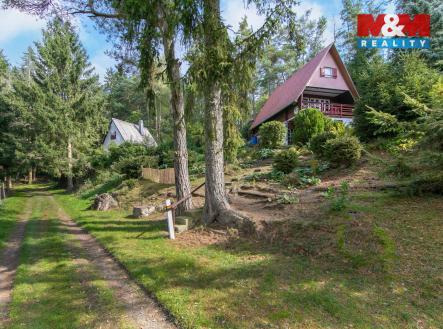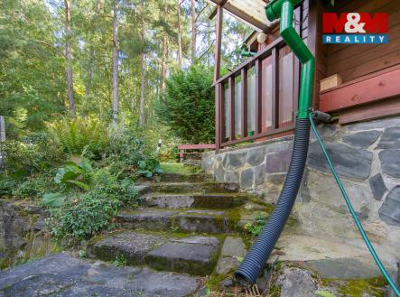 Prodej krásné chaty v Bukovci u Horšovského Týna v chatové osadě nedaleko rybníka Korida. Jedná se o dvoupodlažní dřevěnou chatu postavenou na zděném základu, ve kterém se nachází sklep a dílna. Podlahová plocha chaty je krásných 55 m². V 1NP se nachází vstupní chodba, obývací pokoj, kuchyňský kout, koupelna s WC a velká terasa, v 2NP jsou pak dvě ložnice. Pozemek okolo chaty představuje krásných 413 m2 a disponuje množstvím stromů a keřů, které tak vytváří skvělé místo pro relax a odpočinek. Tento rozlehlý prostor je jako stvořený pro zahradničení, relaxaci nebo drobné hospodaření. Do chaty je přivedena elektřina a voda s vlastního vrtu. Vytápění zajišťují krbová kamna a ohřev vody je řešen průtokovým ohřívačem. Odpady jsou svedeny do septiku. Chata má nová plastová okna a je velmi udržovaná. Máte rádi klid a chcete být obklopeni přírodou? Pak nás neváhejte kontaktovat a domluvit si prohlídku.