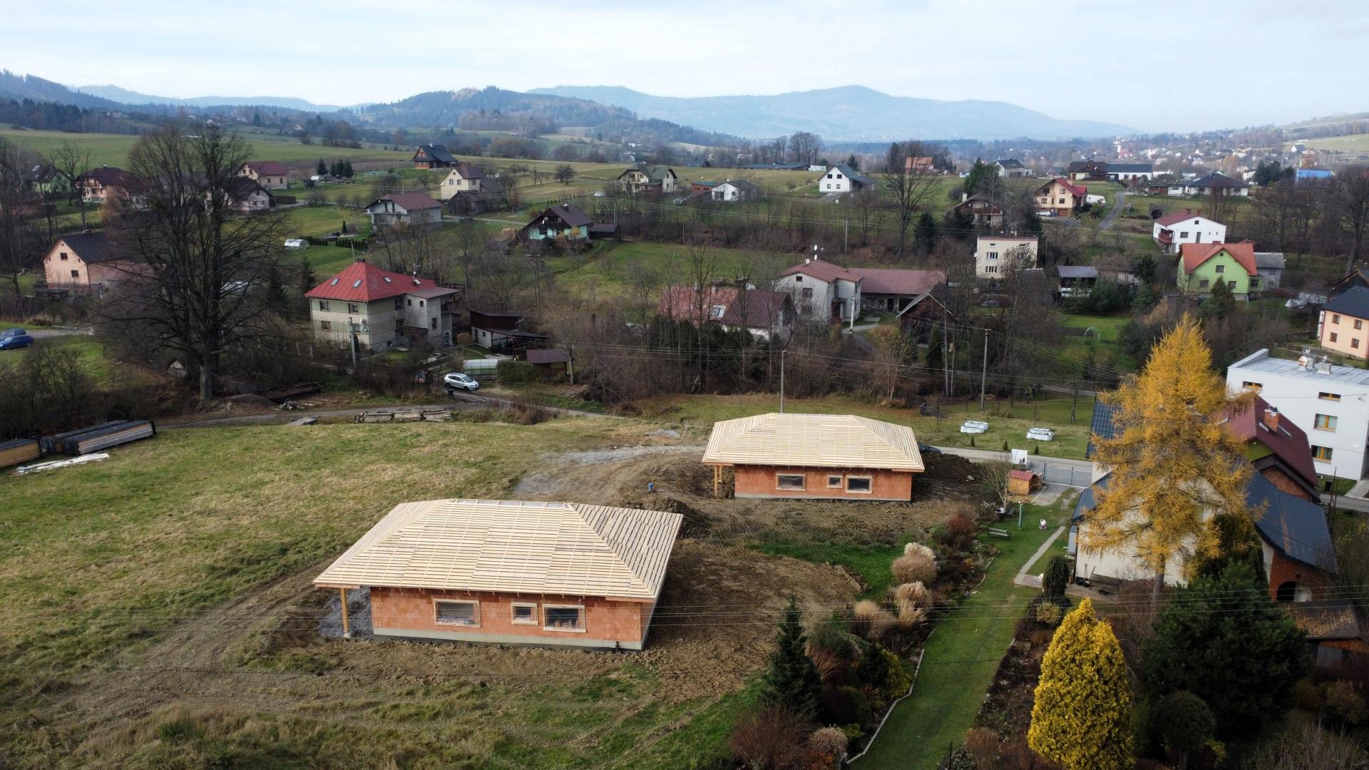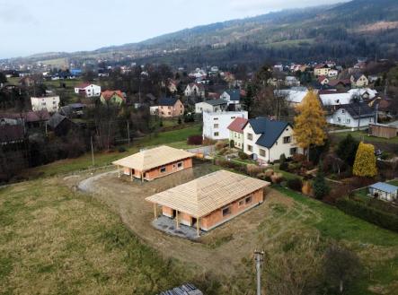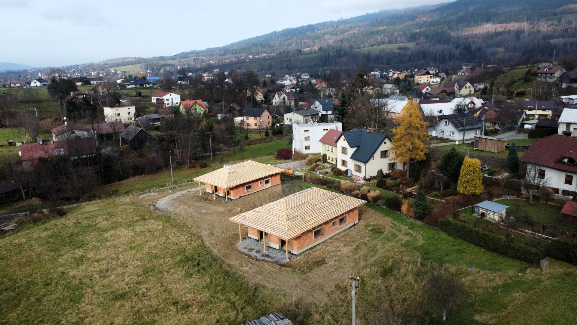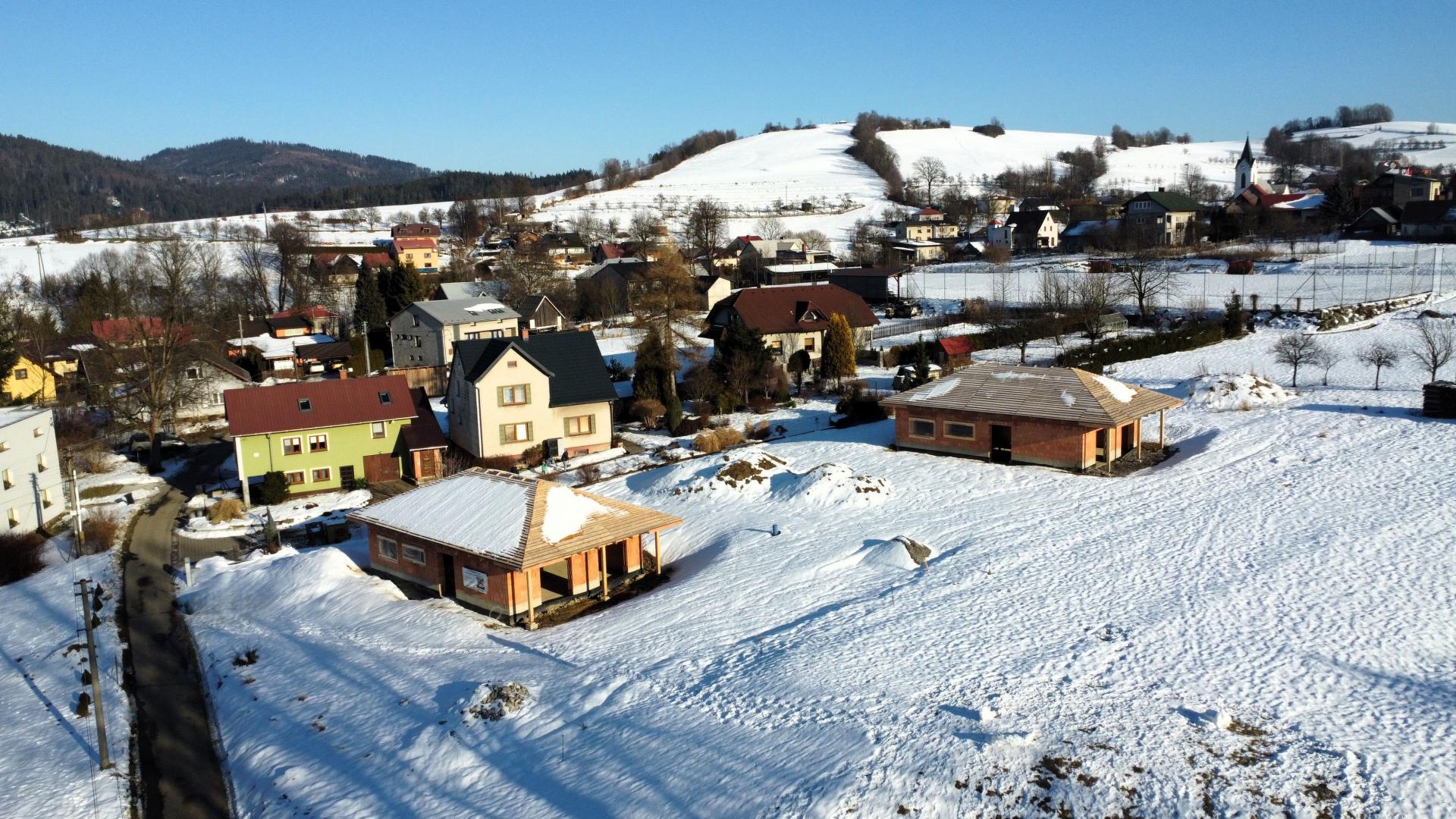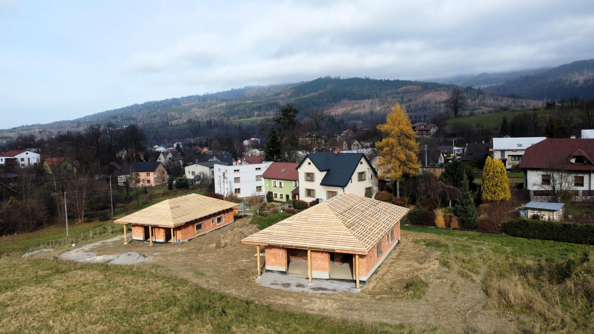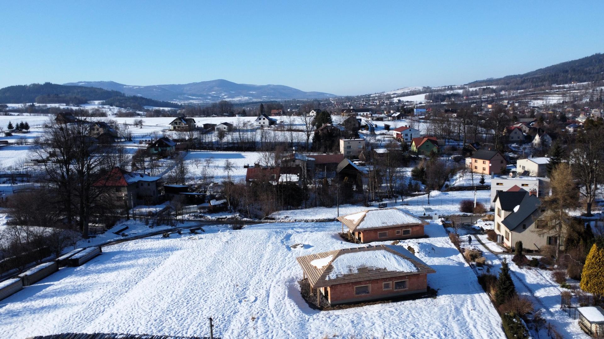 Nabízíme k prodeji novostavbu (hrubou stavbu), která byla vystavěna v roce 2025, na slunném pozemku v katastru obce Bukovec. Jedná se o jednopodlažní rodinný dům typu bungalov o dispozičním řešením 3KK - vystavěny na zastavěné ploše 121 m2 a na pozemku o plošné výměře 1072 m2. Parametry nemovitosti: - Podlahová plocha 89 m2 - Dispoziční řešení 3KK a nalezneme zde: - Zádveří 6,37 m2 - Chodbu 6,85 m2 - Obývací pokoj + kuchyni 34,18 m2 - Koupelnu 6,13 m2 - Ložnici 13,27 m2 - Pokoj 13,58 m2 - Technickou místnost 8,2 m2 Zásadní výhodou této nemovitosti je zejména její umístění v klidné části obce, s krásným výhledem na panorama Beskyd a do širokého okolí. Jako konstrukce obvodových stěn byly použity tepelněizolační cihly s minerální izolací Porotherm 38 T Profi P8. Na střeše bude položena plechová krytina v barvě antracit. Vytápění je plánováno tepelným čerpadlem. Zdroj vody je z vlastní studny, která je již vybudovaná. Odpady budou řešeny do ČOV. Příjezd k rodinným domům je řešen po obecní komunikaci a dále po soukromém pozemku, na kterém budou mít noví vlastníci spoluvlastnický podíl o velikosti 1/2 pozemku o výměře 112 m2. Dům je možno koupit ve stavu stávajícím, případně po dohodě s majitelem s možností dostavby do jakéhokoliv stavu i celkového dokončení. Koupi domu můžete financovat pomocí hypotéky, s jejímž vyřízením vám rádi zdarma pomůžeme. Pro více informací či domluvení prohlídky volejte makléři.