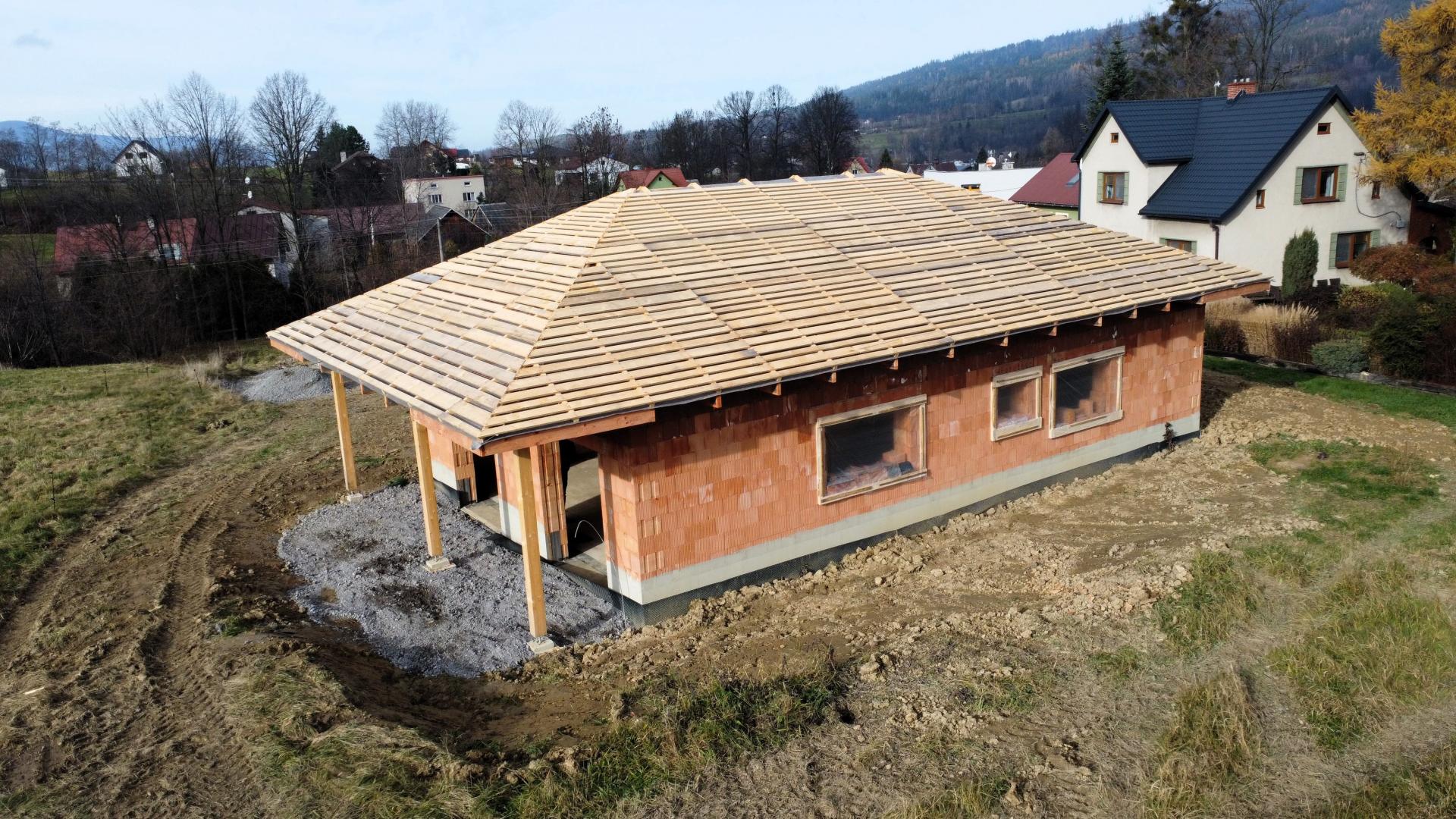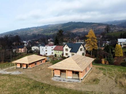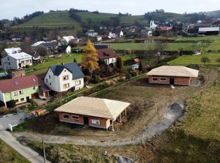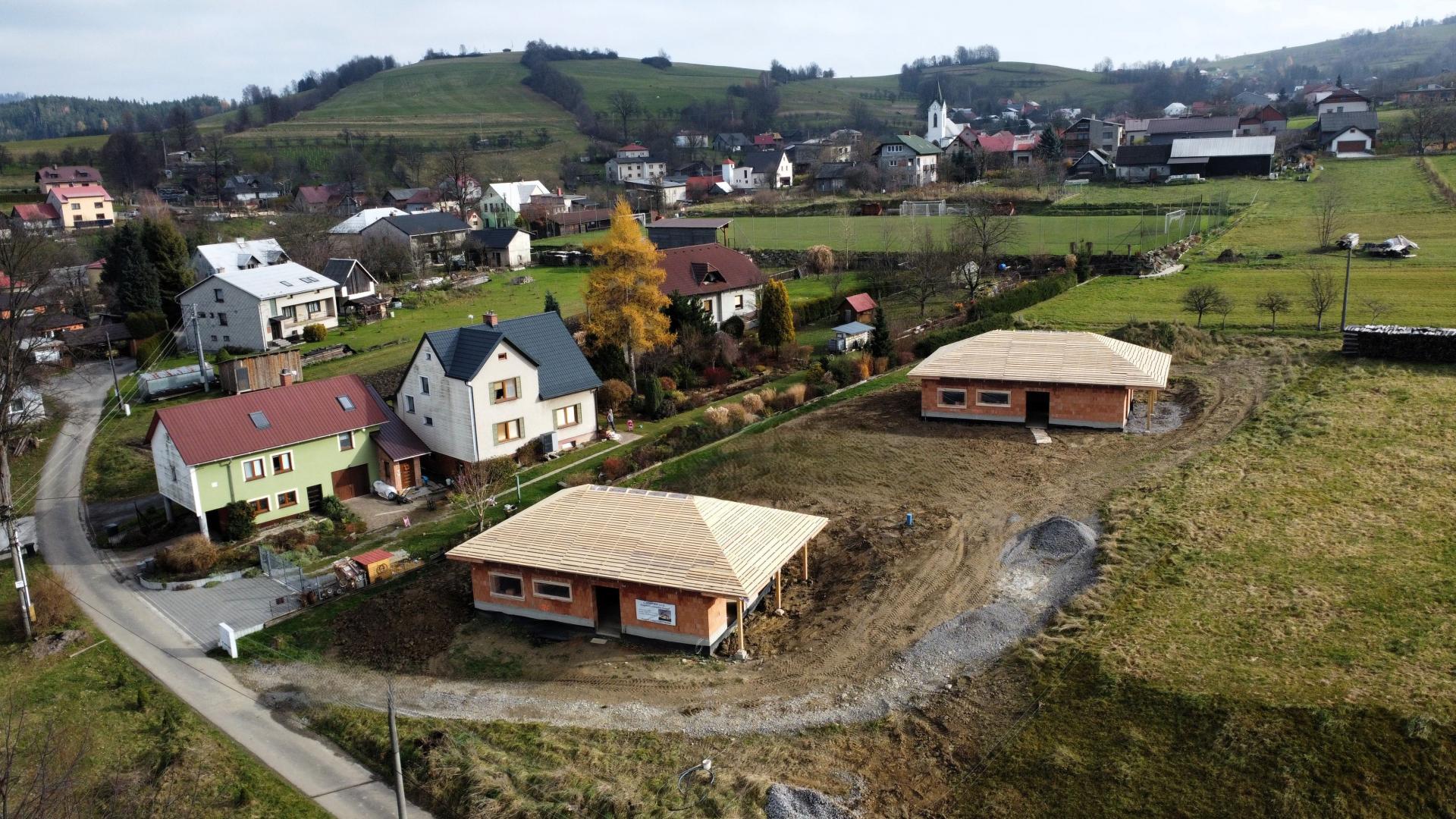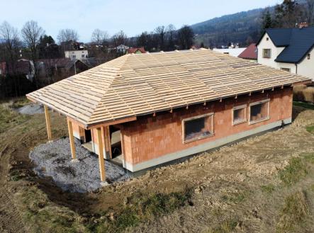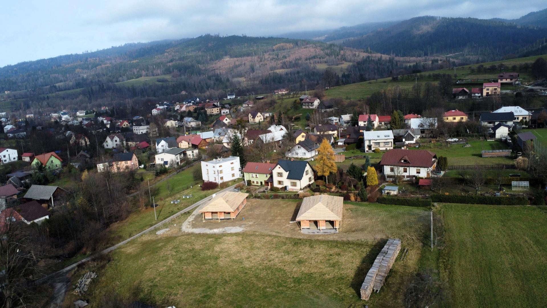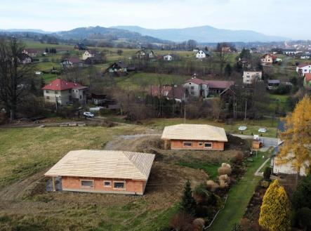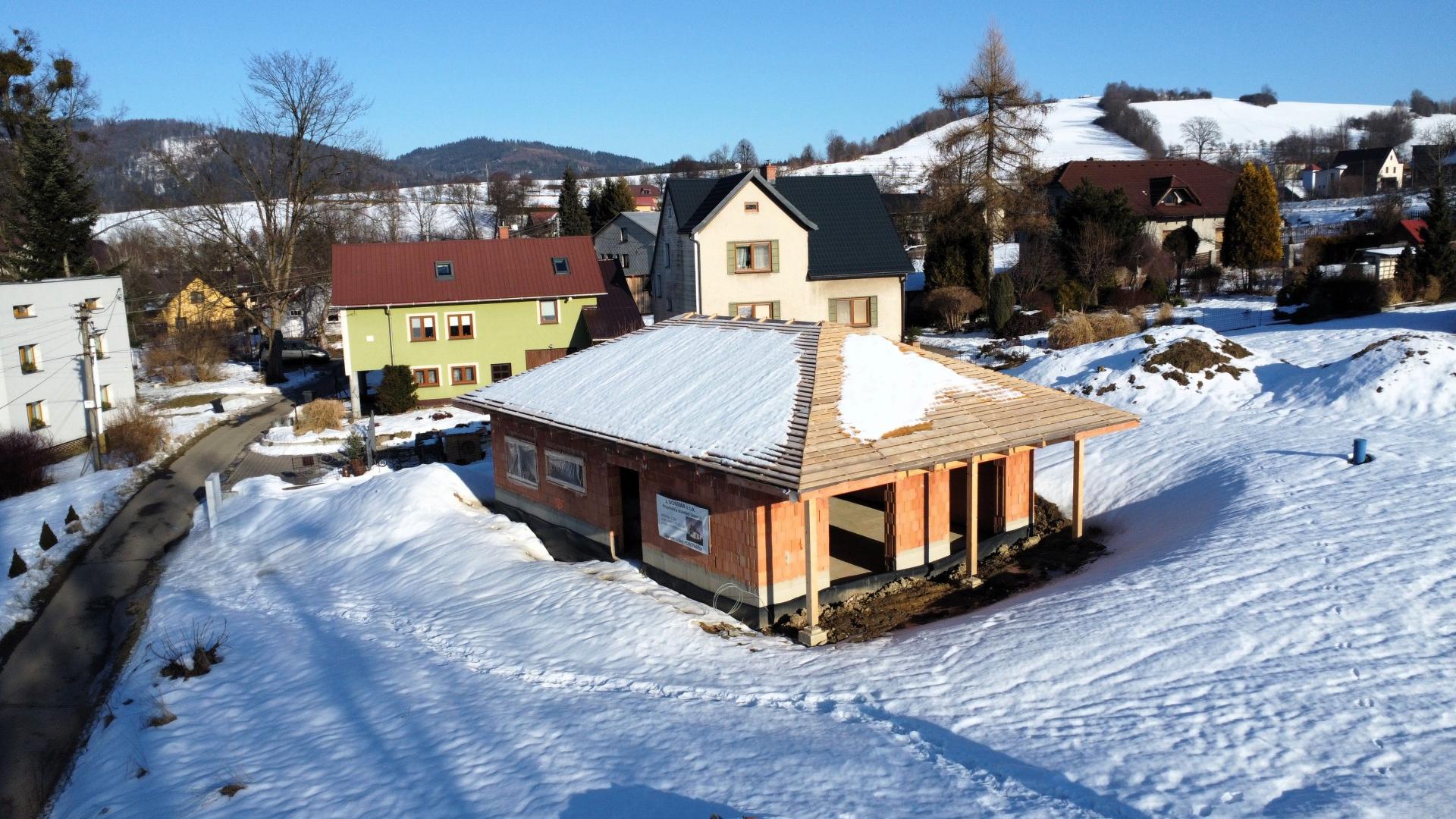 Nabízíme k prodeji novostavbu (hrubou stavbu), která byla vystavěna v roce 2025, na slunném pozemku v katastru obce Bukovec. Jedná se o jednopodlažní rodinný dům typu bungalov o dispozičním řešením 3KK - vystavěny na zastavěné ploše 121 m2 a na pozemku o plošné výměře 1072 m2. Parametry nemovitosti: - Podlahová plocha 89 m2 - Dispoziční řešení 3KK a nalezneme zde: - Zádveří 6,37 m2 - Chodbu 6,85 m2 - Obývací pokoj + kuchyni 34,18 m2 - Koupelnu 6,13 m2 - Ložnici 13,27 m2 - Pokoj 13,58 m2 - Technickou místnost 8,2 m2 Zásadní výhodou této nemovitosti je zejména její umístění v klidné části obce, s krásným výhledem na panorama Beskyd a do širokého okolí. Jako konstrukce obvodových stěn byly použity tepelněizolační cihly s minerální izolací Porotherm 38 T Profi P8. Na střeše bude položena plechová krytina v barvě antracit. Vytápění je plánováno tepelným čerpadlem. Zdroj vody je z vlastní studny, která je již vybudovaná. Odpady budou řešeny do ČOV. Příjezd k rodinným domům je řešen po obecní komunikaci a dále po soukromém pozemku, na kterém budou mít noví vlastníci spoluvlastnický podíl o velikosti 1/2 pozemku o výměře 112 m2. Dům je možno koupit ve stavu stávajícím, případně po dohodě s majitelem s možností dostavby do jakéhokoliv stavu i celkového dokončení. Koupi domu můžete financovat pomocí hypotéky, s jejímž vyřízením vám rádi zdarma pomůžeme. Pro více informací či domluvení prohlídky volejte makléři.