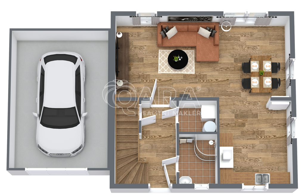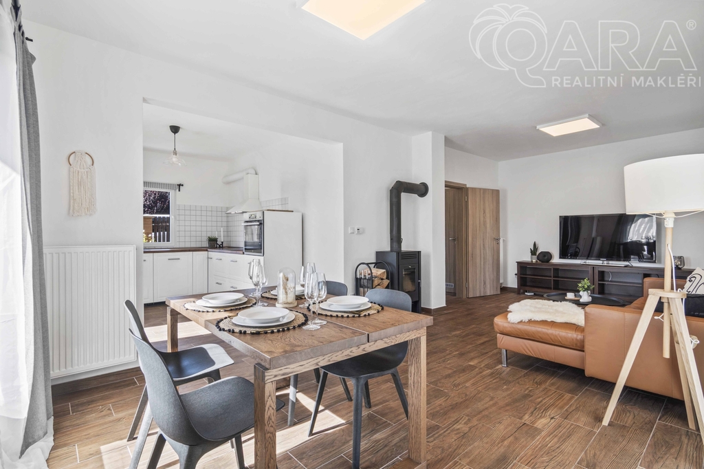 Nabízím ke koupi rodinný dům o dispozici 4+kk s garáží, terasou a zahradou o výměře 1.117 m², který se nachází v klidné části obce Buš, jen pár minut od Slapské přehrady. Dům typu CANABA UNO byl kolaudován v roce 2018 a je připravený k okamžitému nastěhování, bez nutnosti dalších investic. Součástí domu je garáž, dvě parkovací místa za plotem, kompletní oplocení, automatická brána, terasa s pergolou a zabezpečovací systém. Užitná plocha domu činí 96 m² (celkem včetně garáže 123 m²). Veškeré výměry jsou orientační a vycházejí z projektové dokumentace. V přízemí se nachází obývací pokoj s krbem a vstupem na terasu, kuchyň s výhledem do ulice, koupelna se sprchovým koutem, technická místnost a spíž (příp. šatna). V patře jsou tři útulné ložnice a koupelna s vanou. Dům je světlý, funkční a působí velmi příjemnou, domáckou atmosférou. Vytápění zajišťuje elektrokotel Protherm (9 kW) doplněný krbovou vložkou, ohřev vody je zajištěn bojlerem zn. Ariston. Dům je energeticky úsporný (PENB – třída C). Na přání lze ponechat vybavení tak, jak jej vidíte na fotografiích (pohovka, postele, skříně apod.). Dům byl obýván jen krátce, vše je tedy ve výborném stavu. Buš je ideálním místem pro ty, kdo hledají klid, přírodu a sousedskou atmosféru. Vesnice leží asi 29 km jižně od Prahy a pouhé 2 km od Slapské přehrady. Nabízí kombinaci venkovského klidu a dobré dostupnosti, protože autem jste na hranici Prahy za půl hodiny. Okolí vybízí k procházkám, cyklo výletům i koupání. Místní lidé se znají, často se potkávají na společných akcích a obec si drží pověst přátelské a bezpečné komunity, kde se dobře žije i vychovávají děti. Samostatné webové stránky domu, kde najdete kompletní vizuální prezentaci včetně více fotografií, více technických informací, najdete jako podstránku mých osobních webových stránek v sekci Nemovitosti. Pokud Vás dům zaujal, ozvěte se mi a já Vám pošlu do emailu odkaz na sdílenou složku s dokumentací k domu a doplňující informace. Budu se na Vás těšit na prohlídce. Realitní srdcař.