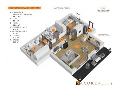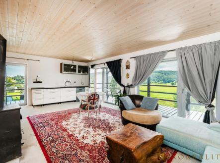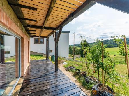 Exklusivně nabízíme k prodeji novostavbu v obci Buš nedaleko Slapské přehrady, která byla zkolaudovaná v roce 2024, poskytuje opravdu nádherný výhled do krajiny a má dispozici 6+kk s obytnou plochu 181m2. Pro lepší orientaci najdete ve fotogalerii orientační 3D plán včetně velikosti všech místností. Dům byl postaven jako dvougenerační, takže má každé patro samostatný vchod a vlastní 13m2 terasu, ale obě patra se dají samozřejmě propojit schodištěm. Mimo oplocení a fasády je potřeba dokončit některé interiérové věci, což poskytuje novému majiteli možnost dodělat si vše podle vlastního uvážení. Pozemek o výměře 901m2 je mírně svažitý, takže ze všech míst budete mít krásný výhled a ve spodní části se provedli terénní úpravy včetně zpevnění betonovou podezdívkou jako příprava pro bazén. Obec Buš se nachází 3,5 km od vodní nádrže Slapy a 2,5 km od Golf Parku Slapy. Je zde Obecní úřad, restaurace, tenisové kurty, obchod, fotbalové hřiště. V okolí je možnost koupání, turistiky, rybaření, vodních sportů, jachtingu a mnoho dalších aktivit. V případě zájmu nebo nějakých dotazů nás prosím kdykoliv kontaktujte.