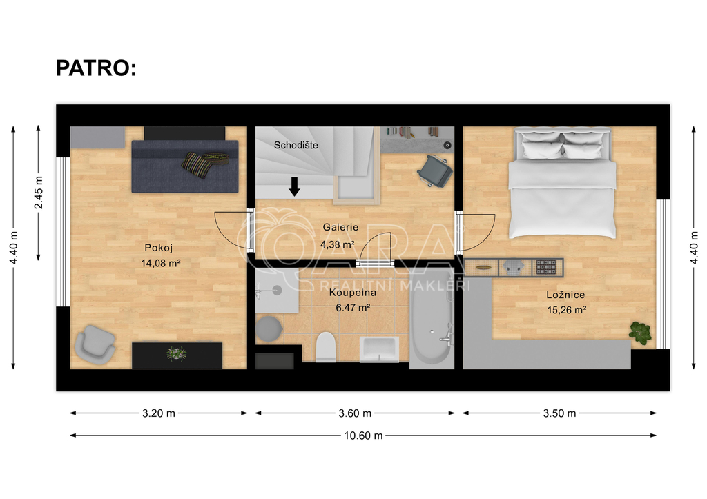 Pokud hledáte k pronájmu klidný a moderní dům se zahradou v dosahu veškerého komfortu velkoměsta, pak jste tu správně. Jedná se o řadový dům 3 + kk postavený v klidné nové čtvrti Buštěhrad – Ořešín. K domu patří dvě bezplatná parkovací stání. Přes zádveří se vstupuje do obývacího pokoje s výhledem do zahrady. Tento prostor je neskutečným bonusem celého domu, zahrada poskytuje Vašemu životu velký komfort. Pokračováním obývacího pokoje a neoficiální čtvrtou místností domu je vyhřívaná terasa, kde můžete trávit spoustu krásných večerů i v chladnějších měsících. Výhodou celého pozemku je i jeho propojení s okolím. Ze zahrady máte totiž přístup zadní brankou ven přímo do parku s nedalekým dětským hřištěm. Součástí přízemí je plně vybavený kuchyňský kout, samostatná toaleta a úložný prostor. Z obývacího pokoje v přízemí se po schodišti dostanete do podkroví, kde se nachází dva samostatné pokoje, koupelna se sprchovým koutem, vanou i WC a šikovně vyřešený pracovní kout na galerii nad schodištěm. Dům je vytápěný kondenzačním kotlem Protherm, v domě je klimatizace, voda je upravována změkčovačem vody a internetové spojení je zajišťováno místní firmou. Dům se pronajímá částečně zařízený – kuchyňská linka s vybavením, jídelní stůl se židlemi, gauč, postel, komody, vestavěné skříně, televizní stěna včetně velké TV. Vše moderní a funkční. Celý dům je nesmírně kompaktní s chytrým využitím úložných prostor a splňuje veškeré požadavky na moderní bydlení. Pro majitele hledám spolehlivého dlouhodobého nájemce. Odběr elektřiny a plynu přihlásím přímo na vás, abyste měli kontrolu nad vlastní spotřebou, vodné a stočné zůstává převedeno na majitele. Poplatky za vodné a stočné jsou 1.830 Kč měsíčně, za odvoz odpadu 1.100 Kč ročně. Poplatky za elektřinu 4 300 Kč a za plyn 1 500 Kč při provozu rodiny s dětmi a při práci z domova. Celková vstupní platba se skládá z nájemného na první měsíc ve výši 35 000 Kč + 2 vratné měsíční kauce ve výši 70 000 Kč + provize makléře ve výši 20 000 Kč. Pokud potřebujete více informací o lokalitě, nebo chcete dům navštívit, abyste zjistili, jak se vám v něm bude žít, ráda se s vámi setkám na prohlídce.