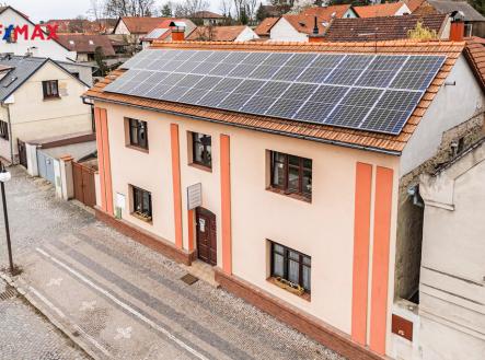 Nabízíme k prodeji prostorný rodinný dům s užitnou dispozicí 6+2 s možností úprav až na 8+2 a podlahovou plochou cca 327 m² (přesná plocha bude doplněna), na pozemku o celkové výměře 538 m² v obci Byšice. Dům je vhodný zejména pro vícegenerační bydlení, kombinaci bydlení s podnikáním (aktuálně je část domu využívána jako kadeřnický salon) nebo pro bydlení s možností dalšího rekreačního využití na navazujícím pozemku. Objekt se skládá ze dvou částí ve tvaru „L“. Původní část domu prošla kompletní rekonstrukcí v roce 2003, druhá část byla postavena z Porothermu před cca 13 lety. Obě části mají dvě nadzemní podlaží a prostornou půdu, přičemž v nové části je možné půdu upravit na další obytné prostory. V domě se nachází dvě kuchyně, obývací pokoj, čtyři samostatné pokoje v patře včetně šatny a malé spíže u horní kuchyně. V přízemí je jeden velký pokoj (aktuálně kadeřnictví) a přes chodbu další samostatný pokoj (bývalé kadeřnictví). Součástí domu je také zastřešená veranda (balkon), dvě koupelny (jedna v přízemí s oddělenou šatnou), pět toalet, garáž, malý sklep ve starší části domu s tlakovou nádobou na studnu, skladový prostor vedle garáže na zahradní nábytek a podzemní kamenný sklep s klenutými stropy ideální pro uskladnění zeleniny. Dispozice tedy umožňuje pohodlné vícegenerační soužití i oddělené provozy, případně kombinaci bydlení a podnikání. Dům je napojen na všechny inženýrské sítě – obecní vodovod, elektřinu, plyn a tlakovou kanalizaci. Vytápění zajišťují dva plynové kotle, ohřev vody dva samostatné bojlery. Před dvěma lety byla na střechu instalována fotovoltaická elektrárna s 27 panely (výkon cca 6,9 kW). Střecha domu je sedlová s krytinou Tondach, okna jsou dřevěná s dvojskly (eurookna) a fasáda je zateplena 10 cm polystyrenem. V přízemí staré části jsou instalovány dvě klimatizační jednotky. Parkování je možné před domem, dále přímo na pozemku a v zadní části se nachází garáž, do které se vjíždí přes zahradu. Obec Byšice nabízí kompletní občanskou vybavenost – základní a mateřskou školu, zdravotní péči (praktický lékař), potraviny, poštu, restaurace, kulturní dům a sportovní areál. Výborná dopravní dostupnost do okolních měst díky silničnímu spojení a železniční trati Praha–Turnov zvyšuje atraktivitu lokality. Průkaz energetické náročnosti budovy (PENB) zatím není zpracován a bude doplněn. Pro více informací či sjednání prohlídky nás neváhejte kontaktovat.