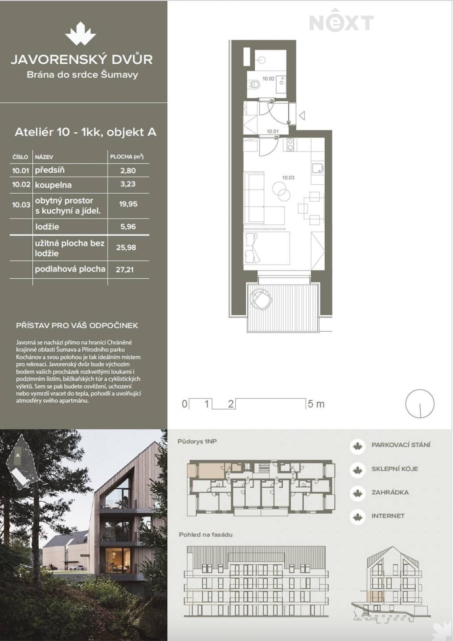 Chcete uniknout ruchu všedních dní a nadechnout se čerstvého šumavského vzduchu? Představte si vlastní apartmán v horách – místo, kde se potkává klid, příroda a moderní komfort. V obci Javorná (část obce Čachrov, okres Klatovy) vzniká nový projekt dvou moderních budov na hranici CHKO Šumava a Přírodního parku Kochánov. Lokalita, která má energii po celý rok. Léto patří turistice, cyklistice, koloběžkám i nordic walkingu. Zima? Nazujete běžky přímo u domu, vezmete sáňky nebo vyrazíte do nedalekého skiareálu Javorná. Čtyři roční období, čtyři důvody, proč tu být. Nabízíme apartmán 1+kk o celkové ploše 27 m² s lodžií 5,96 m² a krásným výhledem do přírody. Součástí ceny je sklepní kóje (2,2 m²) a venkovní parkovací stání. Standard projektu je vysoký a promyšlený do detailu: – teplovodní podlahové vytápění s možností ovládání online – vytápění pomocí tepelných čerpadel – fotovoltaika na střeše – hliníková okna s izolačním trojsklem – dřevěná fasáda s úpravou termowood – výtah – sauna s odpočinkovou místností v suterénu (rezervační systém) Každý apartmán má vlastní elektroměr, vodoměr i měřič tepla. Dokončení projektu je plánováno na červenec 2027. Tato nemovitost není jen místem pro odpočinek. Díky atraktivní lokalitě a celoročnímu využití jde také o velmi zajímavou investiční příležitost. Možnost financování hypotékou je samozřejmostí. Nabízíme také moderní formu financování až na 30 let bez ohledu na věk či prokazování příjmů. Rádi Vám představíme celý projekt osobně a vysvětlíme všechny detaily. Pro komunikaci uvádějte evidenční číslo zakázky N103030.