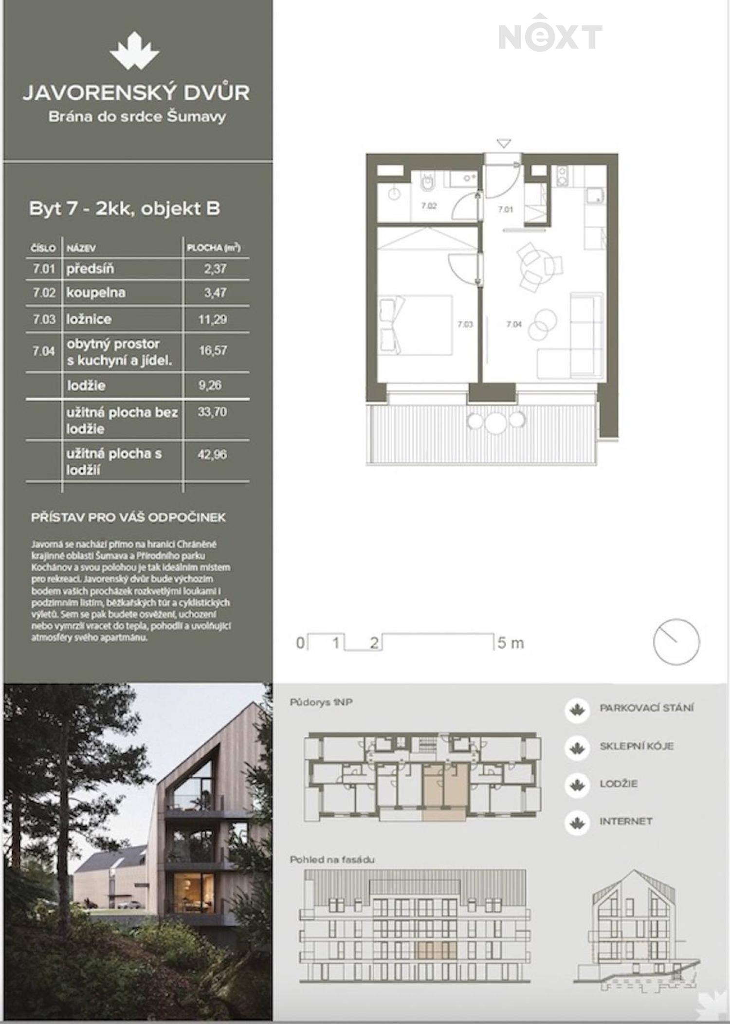 Chcete uniknout ruchu všedních dní a nadechnout se čerstvého šumavského vzduchu? Představte si vlastní apartmán v horách – místo, kde se potkává klid, příroda a moderní komfort. V obci Javorná (část obce Čachrov, okres Klatovy) vzniká nový projekt dvou moderních budov na hranici CHKO Šumava a Přírodního parku Kochánov. Lokalita, která má energii po celý rok. Léto patří turistice, cyklistice, koloběžkám i nordic walkingu. Zima? Nazujete běžky přímo u domu, vezmete sáňky nebo vyrazíte do nedalekého skiareálu Javorná. Čtyři roční období, čtyři důvody, proč tu být. Nabízíme apartmán 2+kk o celkové ploše 35 m² s lodžií 9,28 m² a krásným výhledem do přírody. Součástí ceny je sklepní kóje (2,2 m²) a venkovní parkovací stání. Standard projektu je vysoký a promyšlený do detailu: – teplovodní podlahové vytápění s možností ovládání online – vytápění pomocí tepelných čerpadel – fotovoltaika na střeše – hliníková okna s izolačním trojsklem – dřevěná fasáda s úpravou termowood – výtah – sauna s odpočinkovou místností v suterénu (rezervační systém) Každý apartmán má vlastní elektroměr, vodoměr i měřič tepla. Dokončení projektu je plánováno na konec roku 2027. Tato nemovitost není jen místem pro odpočinek. Díky atraktivní lokalitě a celoročnímu využití jde také o velmi zajímavou investiční příležitost. Možnost financování hypotékou je samozřejmostí. Nabízíme také moderní formu financování až na 35 let bez ohledu na věk či prokazování příjmů. Rádi Vám představíme celý projekt osobně a vysvětlíme všechny detaily. Pro komunikaci uvádějte evidenční číslo zakázky N115590.