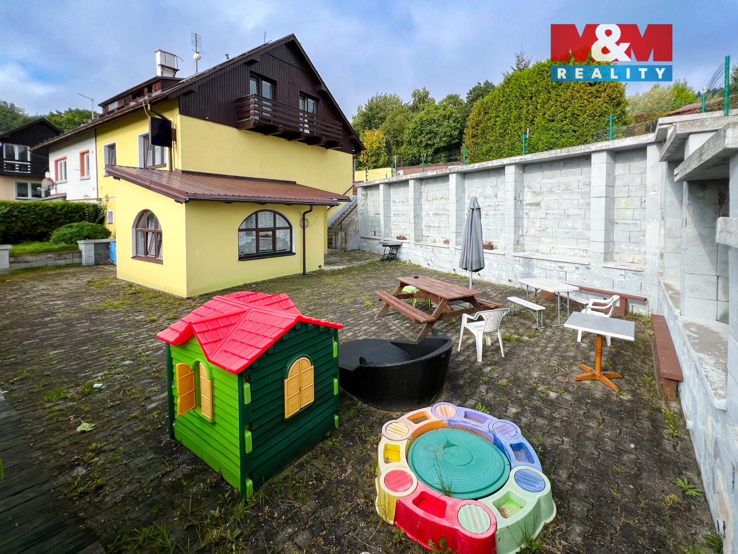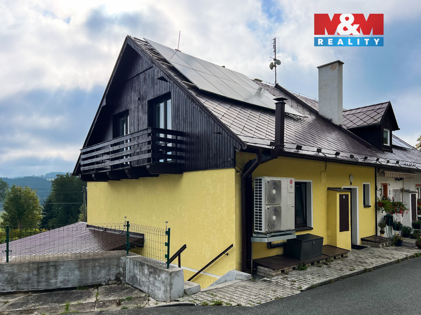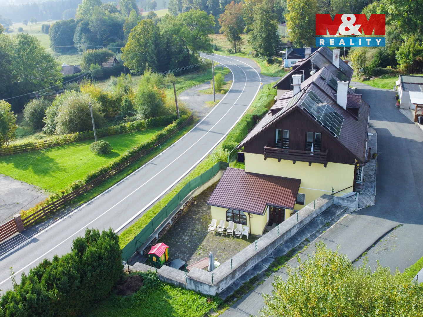Nabízíme k prodeji prostorný rodinný dům v srdci Šumavy, v klidné části obce Jesení. Ideální pro podnikání nebo vícegenerační bydlení. Tento cihlový dvojdomek, aktuálně provozovaný jako penzion, nabízí 8 pokojů s kapacitou 13 lůžek. K dispozici jsou 2 společenské místnosti a plně vybavená společná kuchyně, 4 koupelny, 6x WC. Dům má 3 nadzemní podlaží a užitnou plochu 230 m². Vytápění je zajištěno moderním tepelným čerpadlem, na střeše jsou solární panely. Na pozemku o rozloze 825 m² naleznete velkou terasu s možností grilování a parkoviště pro 6 aut. Bonusem je také oddělený zamykatelný dvůr s dílnou, garáží a malou místností s koupelnou. Nemovitost je ve velmi dobrém stavu a nabízí skvělou investiční příležitost. Neváhejte nás kontaktovat pro více informací.