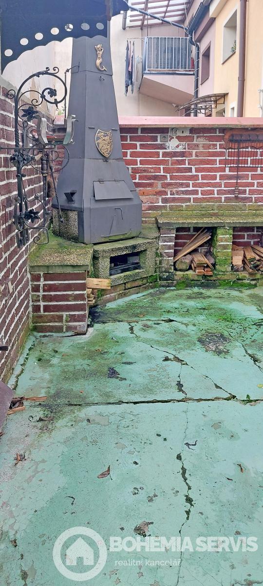 Rodinný řadový dům téměř v centru města se zahradou, Dispozice: 3+1, zahradní krb s posezením