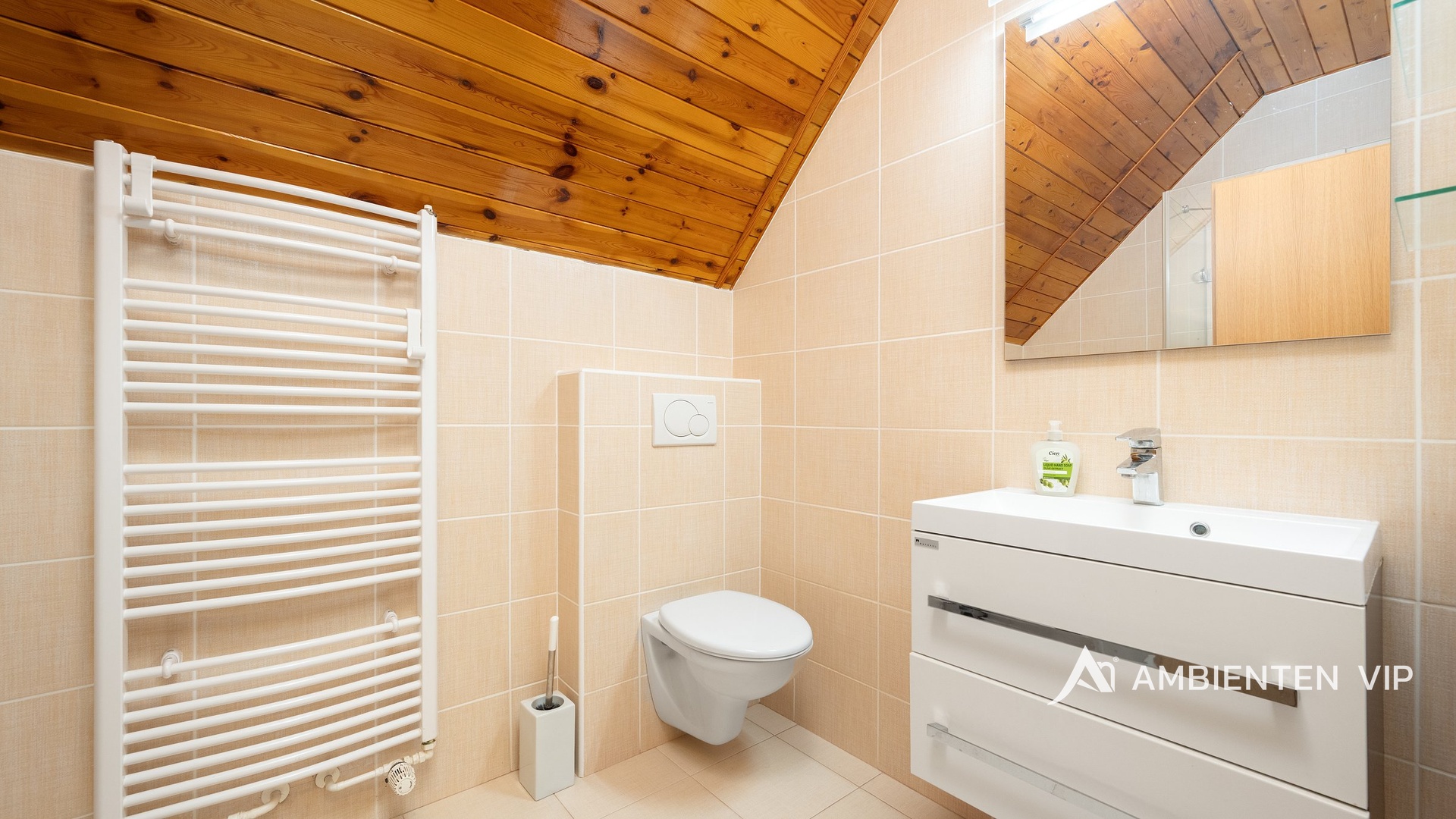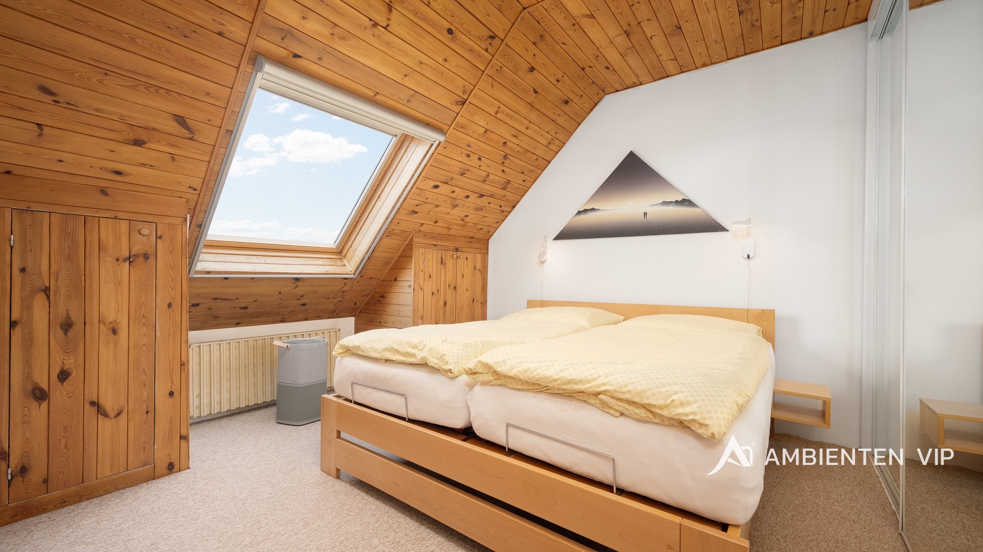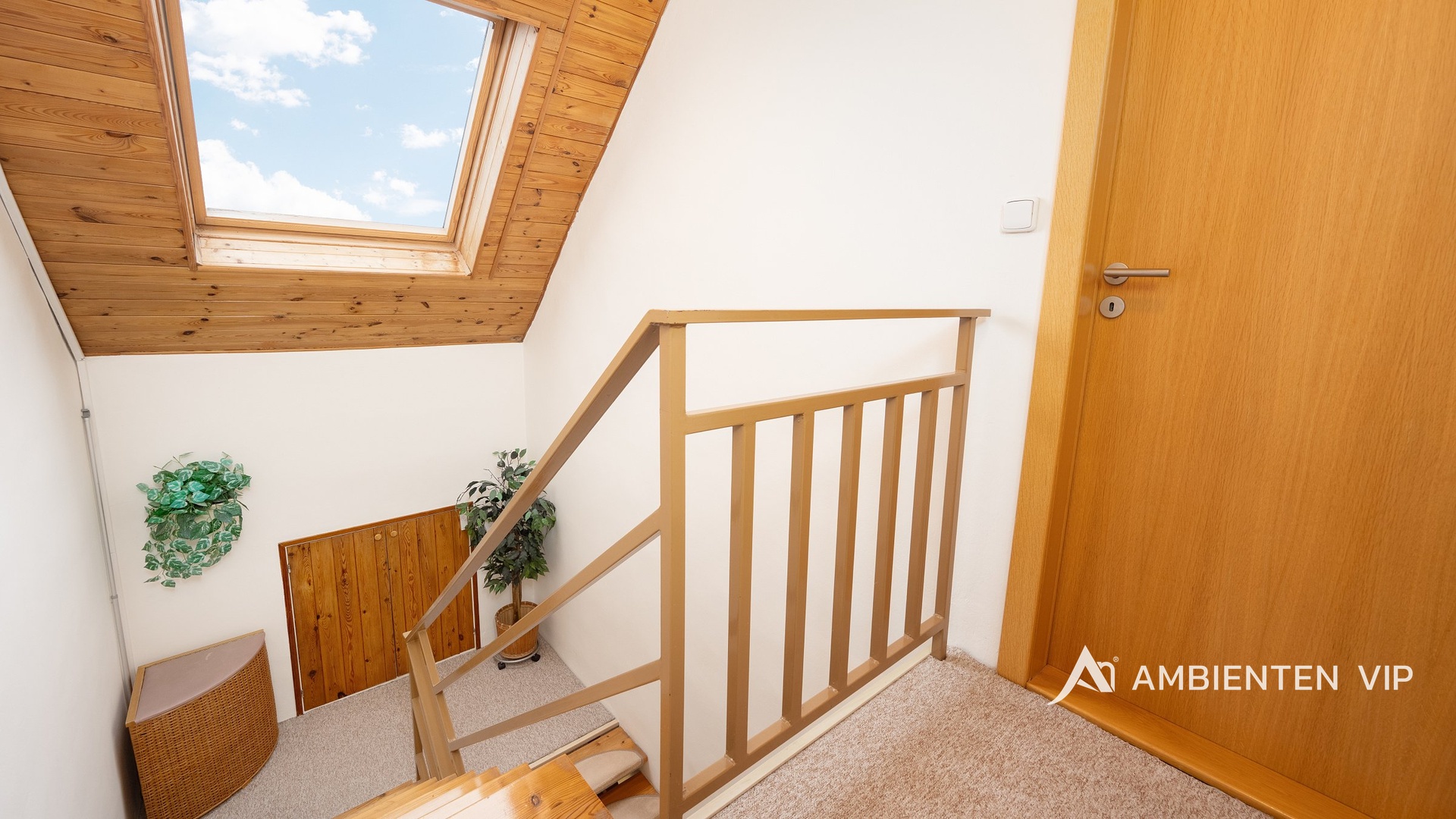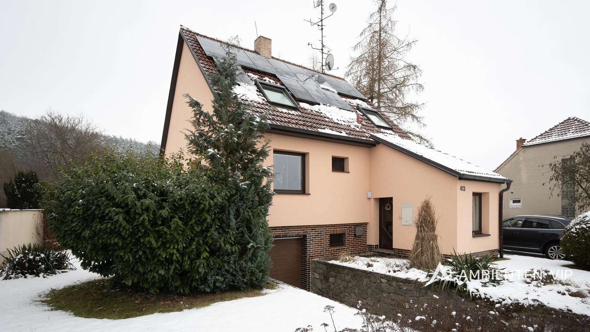 Ambienten vip vám exkluzivně nabízí prodej samostatně stojícího rodinného domu 4+kk s podsklepením pod celým domem. Je v dobrém technickém stavu o ZP 93 m2, UP 160 m2, CP pozemku 3.639 m2. Nemovitost je z roku 1991 a je ve velmi dobrém technickém stavu. Navazující pozemky, které jsou součástí prodeje jsou dle územního plánu určené pro další výstavbu domů. Nemovitost je ihned k dispozici k nastěhování a je možné ji odkoupit vč. kompletního vybavení v domě. Součástí prodeje je i vířivka. Tepelné čerpadlo vytápí celý dům a zajišťuje i ohřev vody do zásobníku. V domě je bateriové úložiště 15 Kwh. Nemovitost je cihlová, zateplena minerální vatou 12 cm, střecha je zateplena 24 cm vaty + polystyrénem. Střešní krovy jsou dřevěné. Střešní krytina je betonová taška. Na střeše jsou solární panely 12 ks. Dalším zdrojem vytápění je krb umístěný v obývacím pokoji s litinovou krbovou vložkou. V domě jsou radiátory a v koupelnách otopné žebříky. Nemovitost je napojena na veřejný vodovod. Studna na pozemku není. Pozemek kolem celého domu je kompletně oplocený. Pakování vozů je možné v garáži dva vozy za sebou a parkování dalších min. 5 vozů je před domem na vlastním pozemku. Garážová vrata jsou na dálkové ovládání. V suterénu domu se nachází hala, technologie, sušárna a garáž pro dva vozy. V 1 NP domu je otevřená dispozice obývacího pokoje s kuchyní a jídelnou orientovaná na JZ stranu směrem do zahrady a k lesu. Nabídne vám nádherné výhledy na okolní krajinu. Nemovitost je vybavena alarmem, klimatizací ve 2 NP vč. venkovních žaluzií, čtyřkvadrantním elektroměrem, kdy neplatíte zálohy za energie, ale za skutečnou spotřebu. Nemovitost má vlastní septik 10 m3, avšak přípojka kanalizace je přímo před domem s možností napojení na ni. V domě se nachází dvě koupelny v 1NP se sprchou, toaletou a umyvadlem ve 2 NP s vanou, umyvadlem a toaletou. Otevřená dispozice 1 NP vám nabídne příjemné posezení s možností vstupu do zahrady přes prostornou terasu, kterou lemuje zábradlí z nerezu. Ovocné stromy v zahradě jsou: jabloňe 29 ks, třešňě 3 ks, višňě 2 ks, švestky 5 ks, ryngle – švestky 10 ks, ořech 1 ks. Dále jsou v zahradě ovocné stromkové keře angrešť červený a bílý 6 ks, rybíz 1 ks, ostružiny zahradní 18 ks. Dále je na zahradě skleník s možností pěstování vlastní zeleniny a další tři drobné stavby. Jedna z nich je kůlna pro zahradní nábytek či nářadí, další slouží jako vinotéka s možností příjemného posezení u grilu s přáteli. Pokud vás tato investičně zajímavá nemovitost zaujala, tak si neváhejte sjednat její prohlídku s námi. Potenciálně nabízí možnost výstavby dalších 3-4 domů.