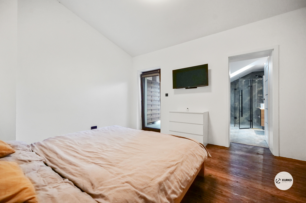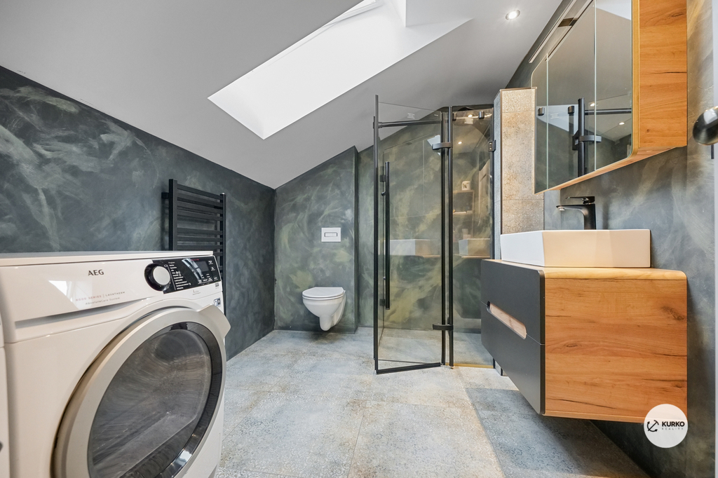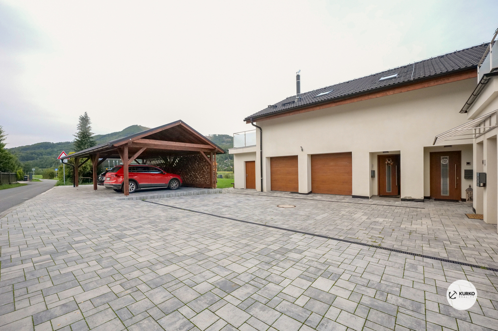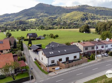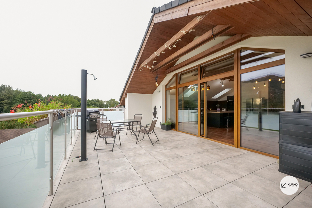 Hledáte domov, kde se snoubí komfort moderního bydlení s kouzlem Beskyd? Tento jedinečný byt o velikosti 202 m² nabízí právě to. K dispozici máte i terasu 34 m² s panoramatickým výhledem na hory, ideální pro rodinné snídaně i večerní posezení. Samozřejmostí je i vlastní dvojgaráž (30 m²). Byt se nachází v domě se třemi jednotkami a má svůj vstup v přízemí se zádveřím a chodbou. Obytná část je velkorysá, obývací pokoj s jídelnou a moderní kuchyní na míru působí vzdušně a elegantně. Navazující pokoje nabízí dostatek soukromí a variabilitu, v případě potřeby lze dispozici jednoduše rozšířit na 5+kk. Interiér je řešen s citem pro detail: podlahové vytápění, tepelné čerpadlo a kvalitní zateplení zajistí nízké provozní náklady, zatímco přiznané trámy a designové stěrky dodávají prostoru charakter. Hlavní koupelna kombinuje vanu i walk-in sprchu, druhá koupelna u ložnice pak přidává komfort v podobě vlastního zázemí. Nechybí ani spíž u kuchyně či menší skladovací prostory v chodbě – prostě domov, kde se myslí na vše. A proč právě Čeladná? Protože je to perla Beskyd. Nabízí kompletní občanskou vybavenost – školu, školku, obchody, služby, k tomu stylové kavárny a luxusní restaurace. Milovníci sportu ocení prestižní golfové hřiště Prosper Golf Resort, turistické trasy i cyklostezky. Čeladná patří mezi nejžádanější lokality regionu: bezpečná, klidná a zároveň společensky živá. Tady získáte nejen bydlení, ale také životní styl. Neváhejte nás kontaktovat, rádi vám poskytneme více informací, domluvíme osobní prohlídku nebo vám byt ukážeme i online přes videohovor. Náš zkušený hypoteční specialista vám zdarma pomůže najít nejlepší finanční řešení.