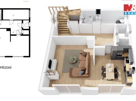 Nabízíme k prodeji krásný rodinný dům o dispozici 3+kk, s užitnou plochou 104 m², který prošel rekonstrukcí v roce 2012. Z původní budovy zůstalo pouze zdivo. Vše ostatní bylo nově postaveno, včetně krovu. V 1.NP se nachází obývací pokoj propojený s terasou, kde si můžete užít krásné letní večery. Dále je zde koupelna s vanou a toaletou. V podkroví jsou dva samostatné pokoje. Ložnici lze v případě potřeby přepažit a upravit jako další pokoj. Tím by se zvětšila dispozice domu na 4+kk. Dům má vlastní FVE o výkonu 9,95 kWp s bateriemi o kapacitě 9,6 kWh. Díky tomu je během slunných dnů téměř beznákladový. Jistě se Vám také bude líbit nabíječka pro elektromobily a klimatizace v podkroví, která je provozována díky FVE téměř zdarma. Vytápění je zajištěno pomocí elektrokotle s podlahovým topením v 1.NP a radiátory ve 2.NP. Kanalizace i vodovod je veřejný. Je zde ale i vlastní studna, na kterou je dům také napojen. Zahrada má celkem 216 m² a dalších 208 m² je pronajato od obce.