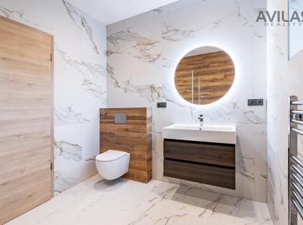 Nabízíme k prodeji novostavbu řadového rodinného domu v obci Čerčany u Benešova. Dům je nyní před dokončením a kolaudace je plánovaná na prosinec 2025. Dům bude plně funkční a připraven k nastěhování: kompletně hotové koupelny (dlažby, obklady, zařizovací předměty včetně baterií), podlahové krytiny, interiérové dveře včetně kování, obložení vnitřního schodiště a vnitřní parapety.DISPOZICEPo vstupu do zádveří můžete vstoupit do šatny, dále z chodby technické místnosti, koupelny se sprchovým koutem awc nebo do srdce domu v podobě prostorného obývacího pokoje s kuchyňským koutem. Pro vzdušnost a světlost prostoru navrhl architekt francouzské okno se vstupem do zahrady, které přírodním světlem osvětluje obývací pokoj. v 1.NP se dále nachází garáž s průchodem do domu. Ve 2.NP se nachází čtyři pokoje, šatna koupelna a samostatné wc.RD Čerčany o dvou bytových jednotkách 5+kk s garáží, každá jednotka má podlahovou plochu 183 m², pozemek 450 m².Uvedená cena je vždy za jednu bytovou jednotku.Dispozice 1.NP: obývací pokoj + kk 34,27 m2, šatna 4,56 m2, koupelna s wc 4,99 m2, technická místnost 6,65 m2, zádveří 3,96 m2, chodba 11,33 m2, schodiště 4,77 m2, komora 2,12 m2, garáž 22,05 m2.Dispozice 2.NP: pokoj 15,44 m2, pokoj 15,55 m2, ložnice 17,89 m2, šatna 4,95, pracovna 12,15 m2, koupelna 6,71 m2, wc 1,76 m2, chodba 9,15 m2, schodiště 4,76 m2.Použité materiály: zdivo cihla Porotherm 30 cm plus 17 cm zateplení, střecha zateplená 50 cm polystyrenu, okna plastová - trojsklo, vytápění podlahové - zdroj tepelné čerpadlo Panasonic, krbová vložka 9 kw, obecní kanalizace a vodovod, energetická třída B, příprava na před okenní rolety, příprava pro fotovoltaiku, zpevněné plochy okolo domu betonová dlažba 10 cm.LOKALITAPro rezidenční projekt byla vybrána obec Čerčany, která v současné době představuje velmi žádanou lokalitu s výbornou dostupností do Prahy. Město Čerčany a jeho okolí nabízí možnosti ke spoustě aktivit a mnoho dalšího - rybaření, houbaření, cykloturistika, fotbalové a volejbalové hřiště, tenisové kurty, půjčovna lodí a raftů, v okolí golfové areály - Pyšely, Štiřín, Konopiště, v zimních měsících možnost běžkaření atd. Ve městě se nachází veškerá občanská vybavenost: škola, školka, poliklinika, obchody, služby, vlakové a autobusové nádraží. Benešov 10 min., Nájezd na D1 - Mirošovice - 10 min. V případě zájmu Vám zdarma zprostředkujeme sjednání hypotéky. Více info v RK.