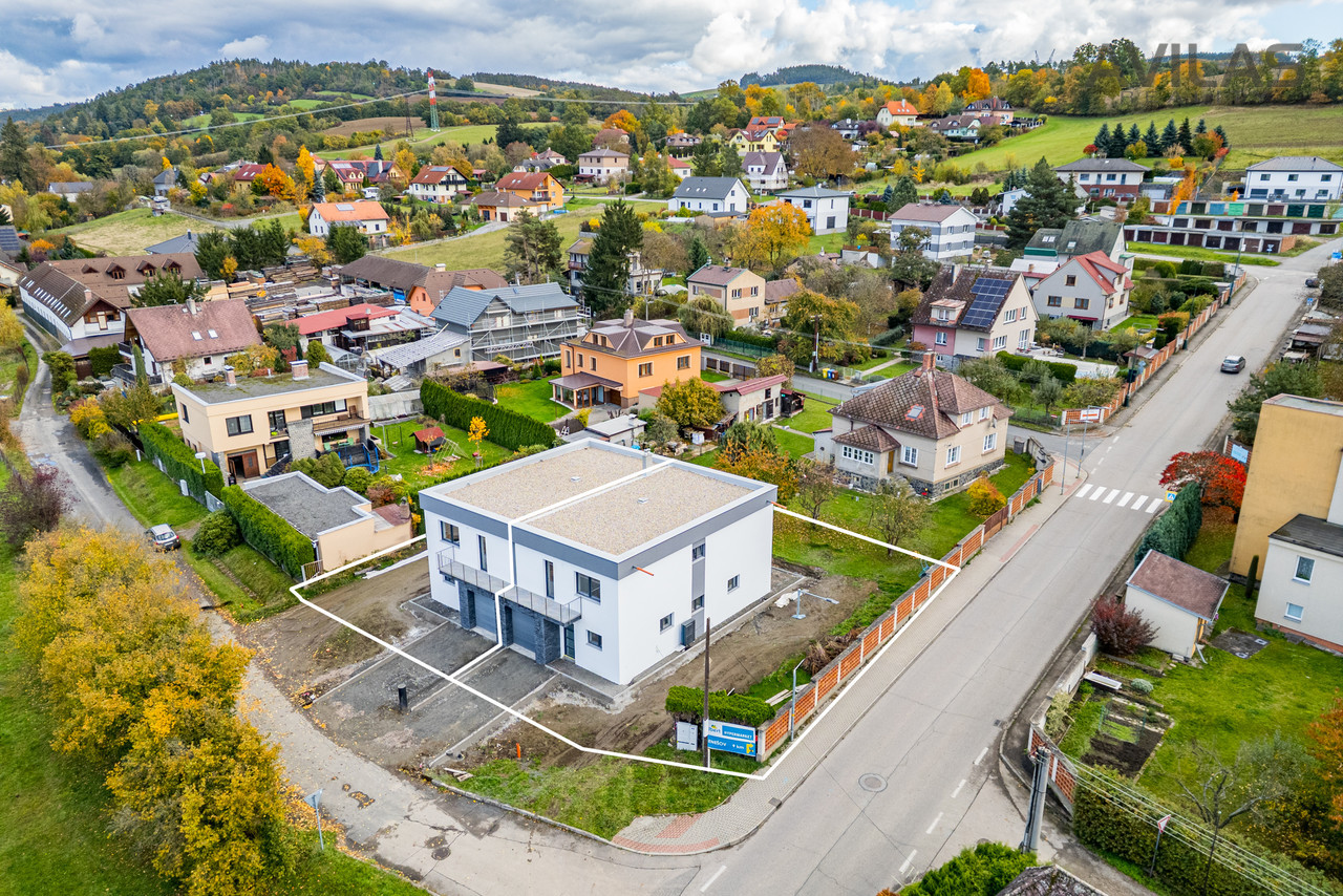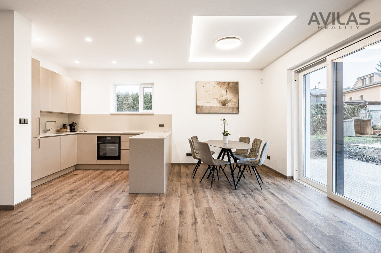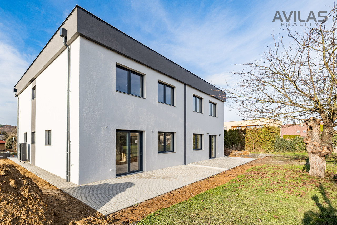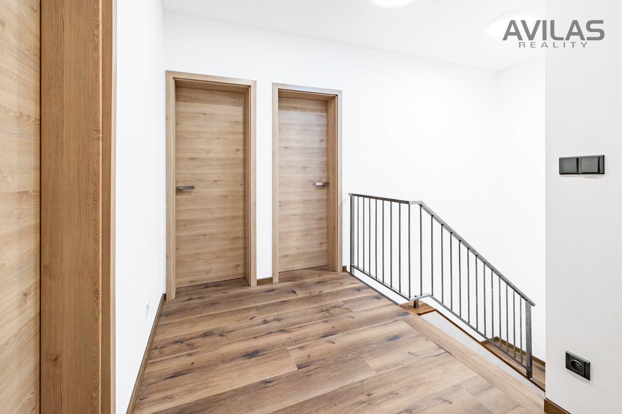 Nabízíme k prodeji novostavbu řadového rodinného domu v obci Čerčany u Benešova. Dům je dokončen, zkolaudován, plně funkční včetně vybavení a připraven k nastěhování.DISPOZICEPo vstupu do zádveří můžete vstoupit do šatny, dále z chodby technické místnosti, koupelny se sprchovým koutem a wc nebo do srdce domu v podobě prostorného obývacího pokoje s kuchyňským koutem. Pro vzdušnost a světlost prostoru navrhl architekt francouzské okno se vstupem do zahrady, které přírodním světlem osvětluje obývací pokoj. V 1.NP se dále nachází garáž s průchodem do domu. Ve 2.NP se nachází čtyři pokoje a koupelna s wc.RD Čerčany o dvou bytových jednotkách 5+kk s garáží, každá jednotka má podlahovou plochu 183 m², pozemek 450 m².Uvedená cena je vždy za jednu bytovou jednotku.Dispozice 1.NP: obývací pokoj + kk 34,27 m2, šatna 4,56 m2, koupelna s wc 4,99 m2, technická místnost 6,65 m2, zádveří 3,96 m2, chodba 11,33 m2, schodiště 4,77 m2, komora 2,12 m2, garáž 22,05 m2.Dispozice 2.NP: pokoj 15,44 m2, pokoj 15,55 m2, ložnice 17,89 m2, šatna 4,95, pracovna 12,15 m2, koupelna 6,71 m2, wc 1,76 m2, chodba 9,15 m2, schodiště 4,76 m2.Použité materiály: zdivo cihla Porotherm 30 cm plus 17 cm zateplení, střecha zateplená 50 cm polystyrenu, okna plastová - trojsklo, vytápění podlahové - zdroj tepelné čerpadlo Panasonic, krbová vložka 9 kw, obecní kanalizace a vodovod, energetická třída B, příprava na před okenní rolety, příprava pro fotovoltaiku, zpevněné plochy okolo domu betonová dlažba 10 cm.LOKALITAPro rezidenční projekt byla vybrána obec Čerčany, která v současné době představuje velmi žádanou lokalitu s výbornou dostupností do Prahy. Město Čerčany a jeho okolí nabízí možnosti ke spoustě aktivit a mnoho dalšího - rybaření, houbaření, cykloturistika, fotbalové a volejbalové hřiště, tenisové kurty, půjčovna lodí a raftů, v okolí golfové areály - Pyšely, Štiřín, Konopiště, v zimních měsících možnost běžkaření atd. Ve městě se nachází veškerá občanská vybavenost: škola, školka, poliklinika, obchody, služby, vlakové a autobusové nádraží. Benešov 10 min., Nájezd na D1 - Mirošovice - 10 min. V případě zájmu Vám zdarma zprostředkujeme sjednání hypotéky. Více info v RK.