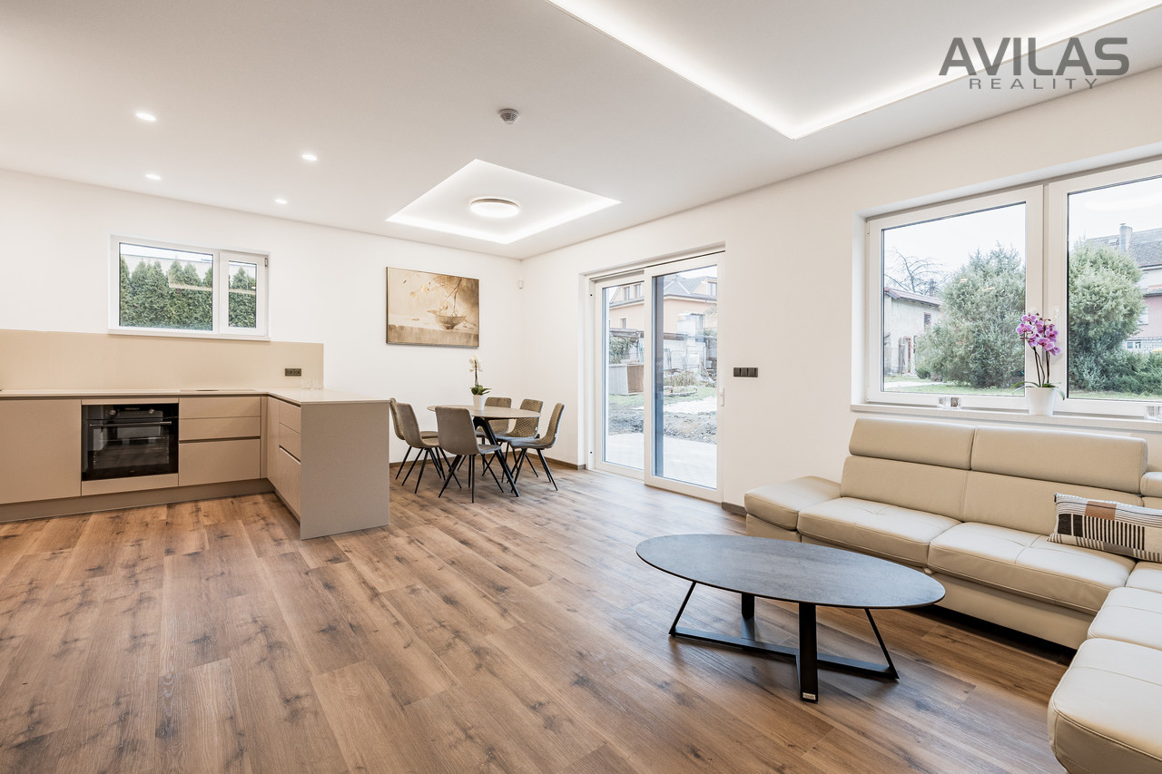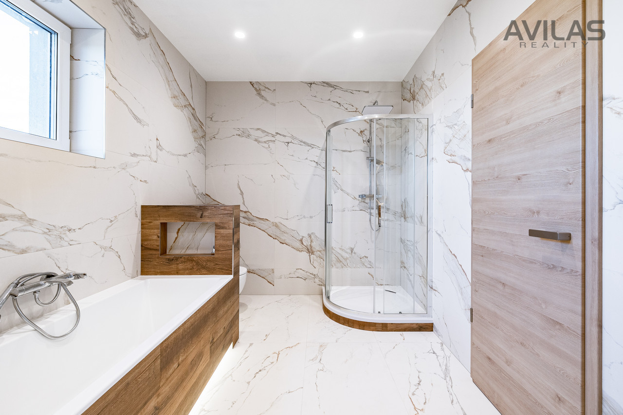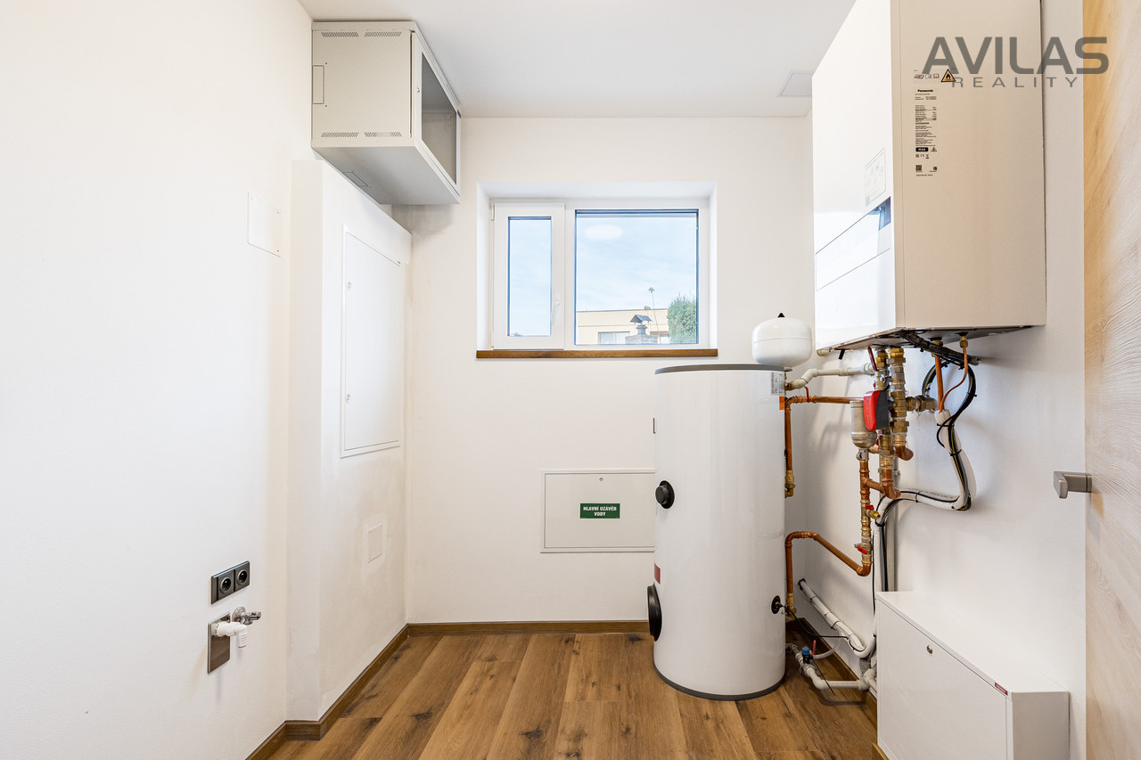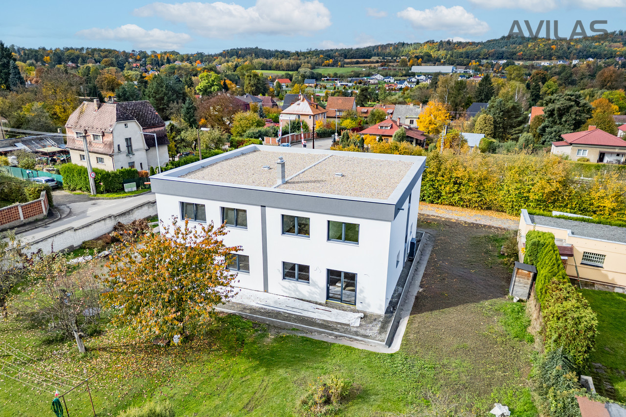Nabízíme k prodeji novostavbu řadového rodinného domu v obci Čerčany u Benešova. Dům je dokončen, zkolaudován, plně funkční včetně vybavení a připraven k nastěhování.DISPOZICEPo vstupu do zádveří můžete vstoupit do šatny, dále z chodby technické místnosti, koupelny se sprchovým koutem a wc nebo do srdce domu v podobě prostorného obývacího pokoje s kuchyňským koutem. Pro vzdušnost a světlost prostoru navrhl architekt francouzské okno se vstupem do zahrady, které přírodním světlem osvětluje obývací pokoj. V 1.NP se dále nachází garáž s průchodem do domu. Ve 2.NP se nachází čtyři pokoje a koupelna s wc.RD Čerčany o dvou bytových jednotkách 5+kk s garáží, každá jednotka má podlahovou plochu 183 m², pozemek 450 m².Uvedená cena je vždy za jednu bytovou jednotku.Dispozice 1.NP: obývací pokoj + kk 34,27 m2, šatna 4,56 m2, koupelna s wc 4,99 m2, technická místnost 6,65 m2, zádveří 3,96 m2, chodba 11,33 m2, schodiště 4,77 m2, komora 2,12 m2, garáž 22,05 m2.Dispozice 2.NP: pokoj 15,44 m2, pokoj 15,55 m2, ložnice 17,89 m2, šatna 4,95, pracovna 12,15 m2, koupelna 6,71 m2, wc 1,76 m2, chodba 9,15 m2, schodiště 4,76 m2.Použité materiály: zdivo cihla Porotherm 30 cm plus 17 cm zateplení, střecha zateplená 50 cm polystyrenu, okna plastová - trojsklo, vytápění podlahové - zdroj tepelné čerpadlo Panasonic, krbová vložka 9 kw, obecní kanalizace a vodovod, energetická třída B, příprava na před okenní rolety, příprava pro fotovoltaiku, zpevněné plochy okolo domu betonová dlažba 10 cm.LOKALITAPro rezidenční projekt byla vybrána obec Čerčany, která v současné době představuje velmi žádanou lokalitu s výbornou dostupností do Prahy. Město Čerčany a jeho okolí nabízí možnosti ke spoustě aktivit a mnoho dalšího - rybaření, houbaření, cykloturistika, fotbalové a volejbalové hřiště, tenisové kurty, půjčovna lodí a raftů, v okolí golfové areály - Pyšely, Štiřín, Konopiště, v zimních měsících možnost běžkaření atd. Ve městě se nachází veškerá občanská vybavenost: škola, školka, poliklinika, obchody, služby, vlakové a autobusové nádraží. Benešov 10 min., Nájezd na D1 - Mirošovice - 10 min. V případě zájmu Vám zdarma zprostředkujeme sjednání hypotéky. Více info v RK.