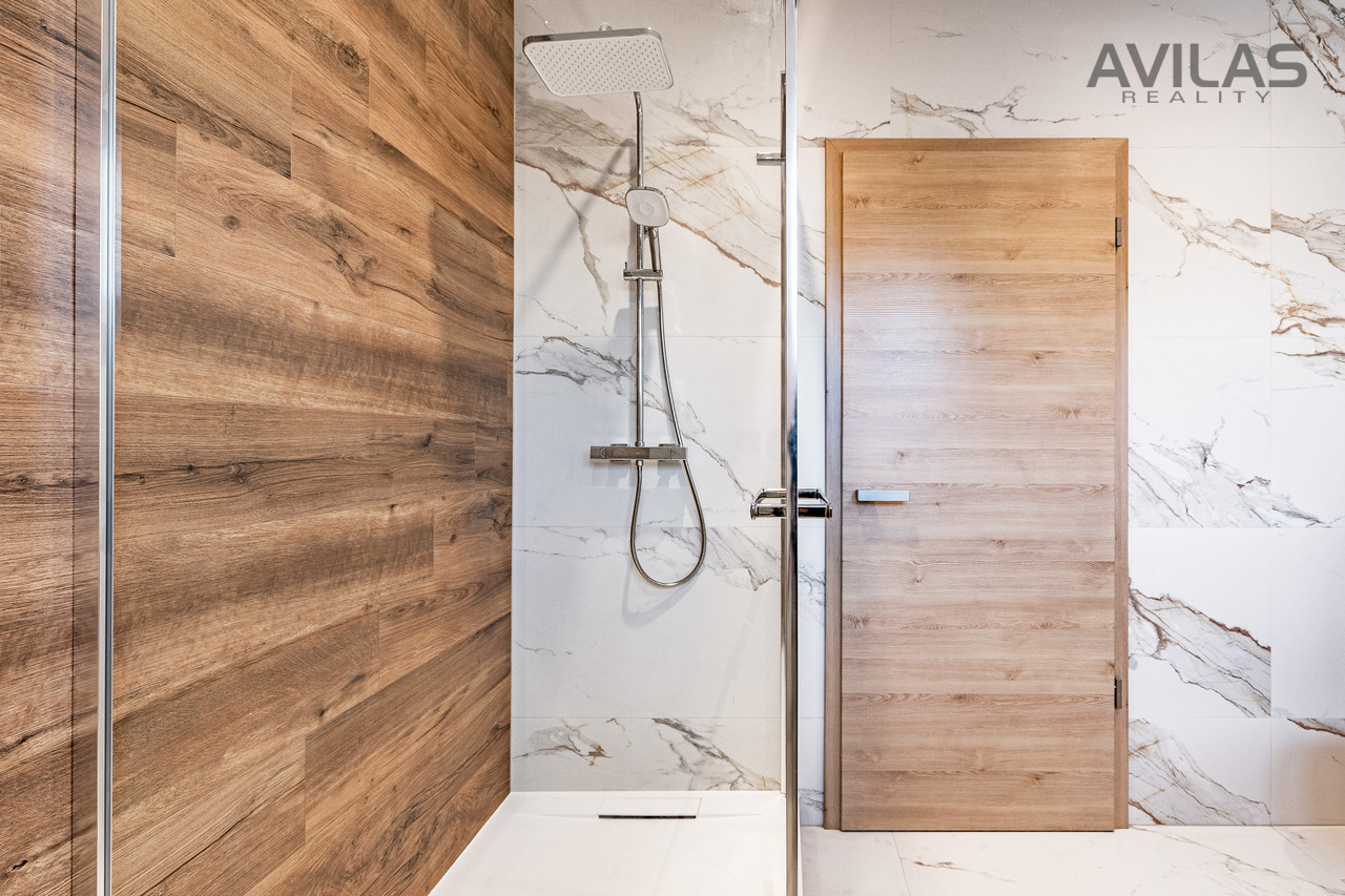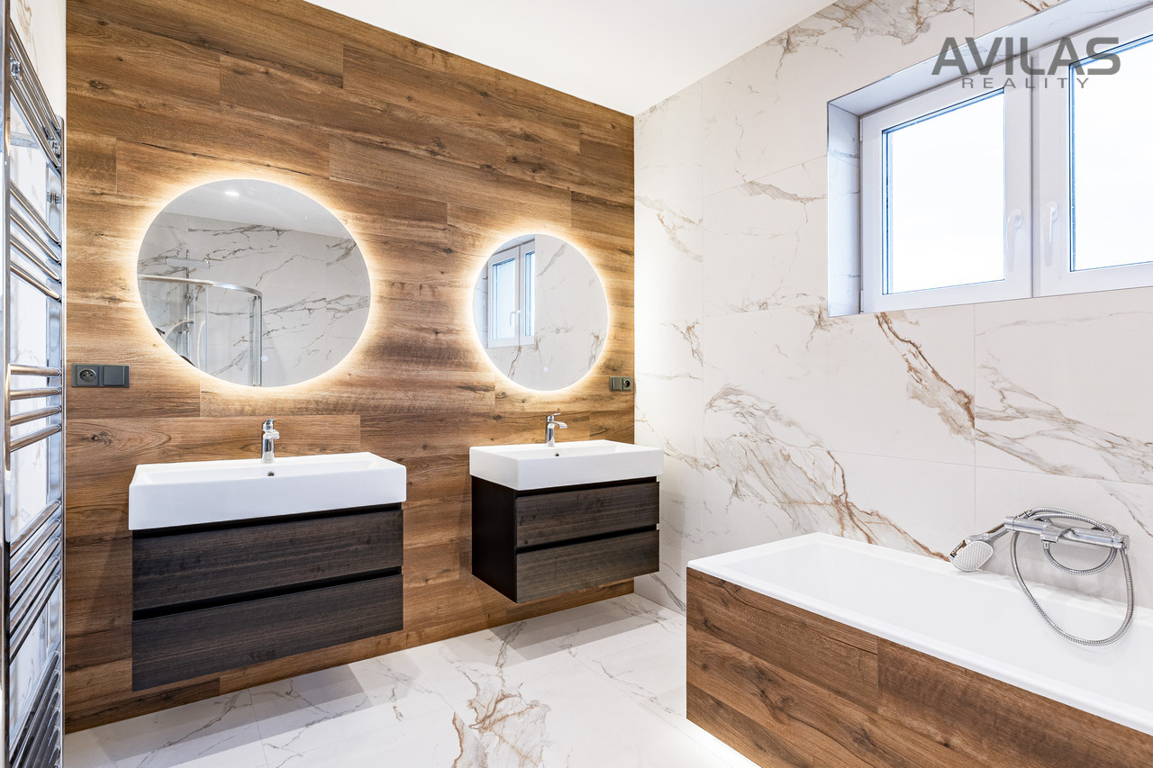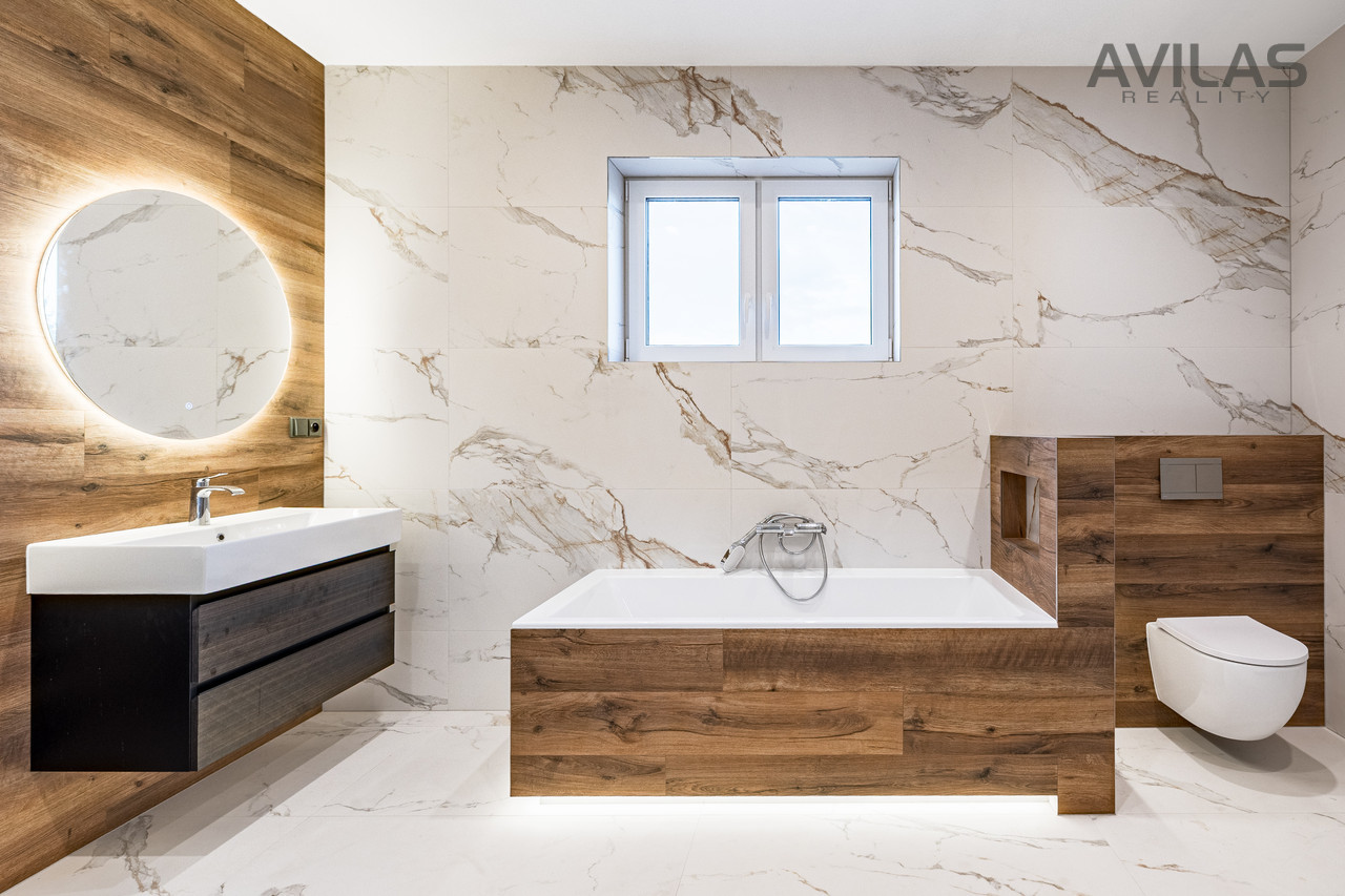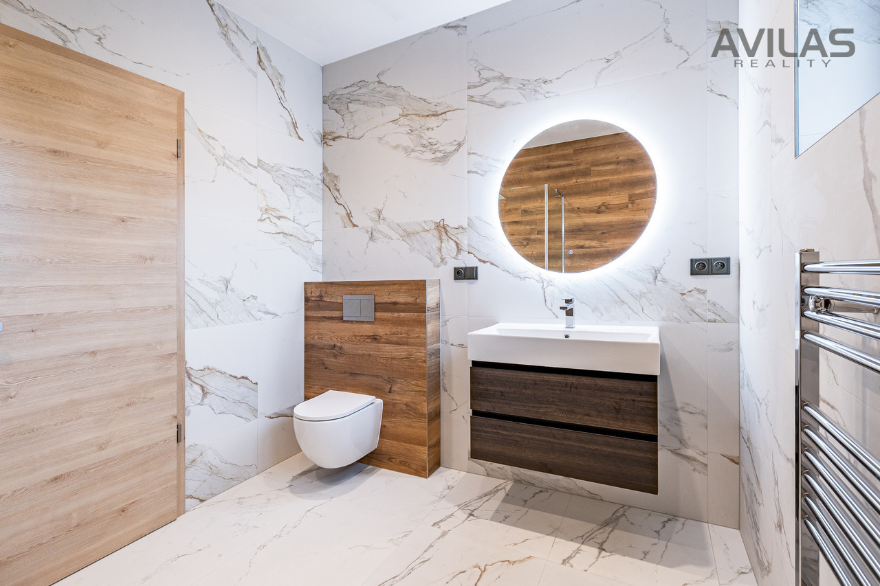 Nabízíme k prodeji novostavbu řadového rodinného domu v obci Čerčany u Benešova. Dům je dokončen, zkolaudován, plně funkční včetně vybavení a připraven k nastěhování.DISPOZICEPo vstupu do zádveří můžete vstoupit do šatny, dále z chodby technické místnosti, koupelny se sprchovým koutem a wc nebo do srdce domu v podobě prostorného obývacího pokoje s kuchyňským koutem. Pro vzdušnost a světlost prostoru navrhl architekt francouzské okno se vstupem do zahrady, které přírodním světlem osvětluje obývací pokoj. V 1.NP se dále nachází garáž s průchodem do domu. Ve 2.NP se nachází čtyři pokoje a koupelna s wc.RD Čerčany o dvou bytových jednotkách 5+kk s garáží, každá jednotka má podlahovou plochu 183 m², pozemek 450 m².Uvedená cena je vždy za jednu bytovou jednotku.Dispozice 1.NP: obývací pokoj + kk 34,27 m2, šatna 4,56 m2, koupelna s wc 4,99 m2, technická místnost 6,65 m2, zádveří 3,96 m2, chodba 11,33 m2, schodiště 4,77 m2, komora 2,12 m2, garáž 22,05 m2.Dispozice 2.NP: pokoj 15,44 m2, pokoj 15,55 m2, ložnice 17,89 m2, šatna 4,95, pracovna 12,15 m2, koupelna 6,71 m2, wc 1,76 m2, chodba 9,15 m2, schodiště 4,76 m2.Použité materiály: zdivo cihla Porotherm 30 cm plus 17 cm zateplení, střecha zateplená 50 cm polystyrenu, okna plastová - trojsklo, vytápění podlahové - zdroj tepelné čerpadlo Panasonic, krbová vložka 9 kw, obecní kanalizace a vodovod, energetická třída B, příprava na před okenní rolety, příprava pro fotovoltaiku, zpevněné plochy okolo domu betonová dlažba 10 cm.LOKALITAPro rezidenční projekt byla vybrána obec Čerčany, která v současné době představuje velmi žádanou lokalitu s výbornou dostupností do Prahy. Město Čerčany a jeho okolí nabízí možnosti ke spoustě aktivit a mnoho dalšího - rybaření, houbaření, cykloturistika, fotbalové a volejbalové hřiště, tenisové kurty, půjčovna lodí a raftů, v okolí golfové areály - Pyšely, Štiřín, Konopiště, v zimních měsících možnost běžkaření atd. Ve městě se nachází veškerá občanská vybavenost: škola, školka, poliklinika, obchody, služby, vlakové a autobusové nádraží. Benešov 10 min., Nájezd na D1 - Mirošovice - 10 min. V případě zájmu Vám zdarma zprostředkujeme sjednání hypotéky. Více info v RK.