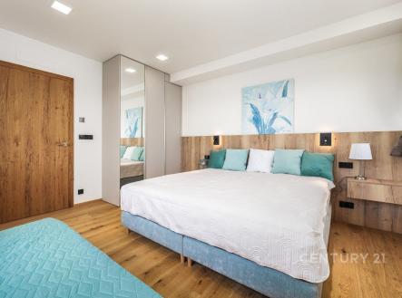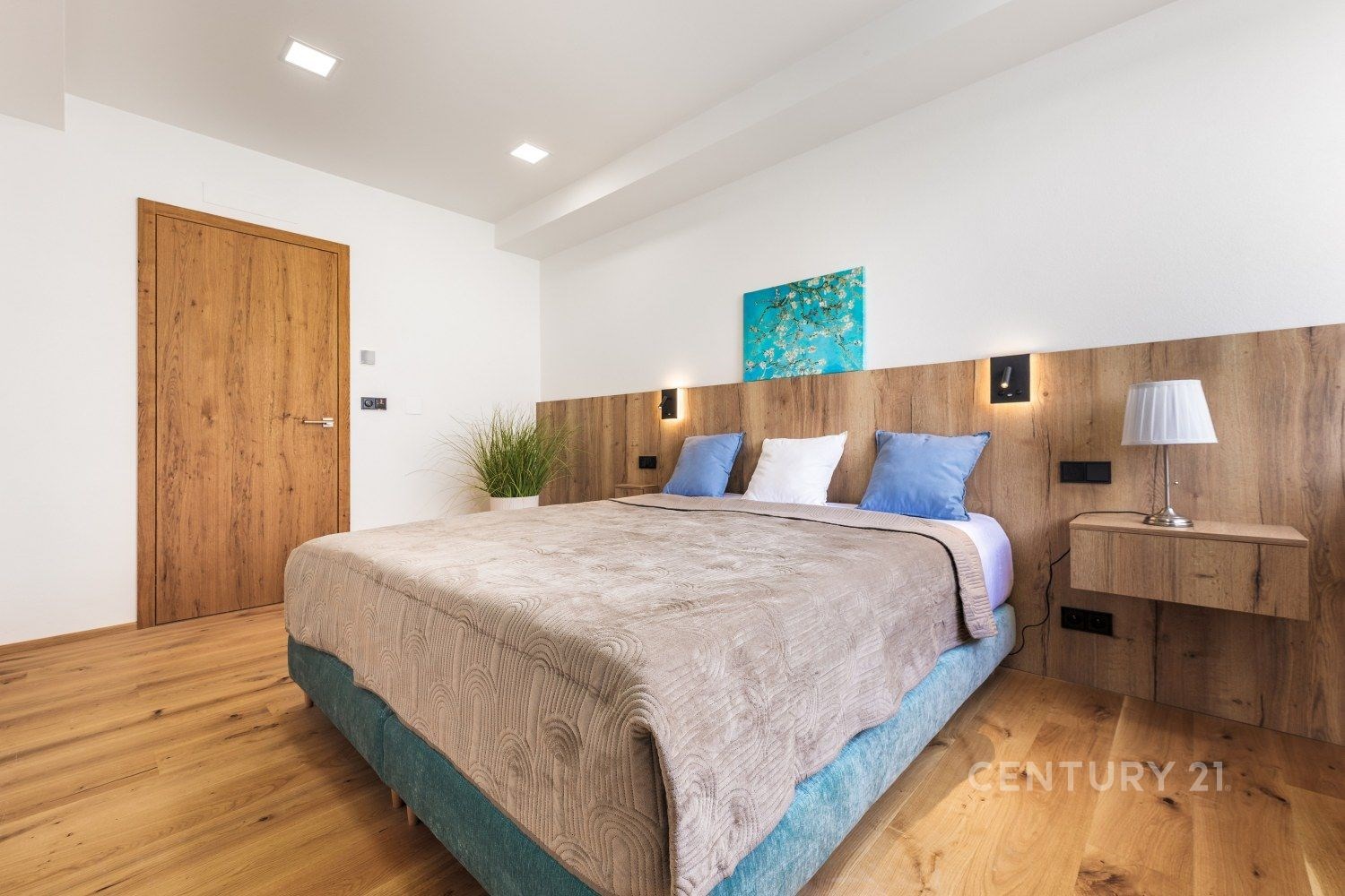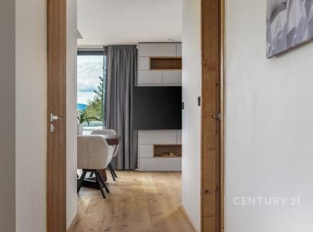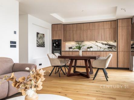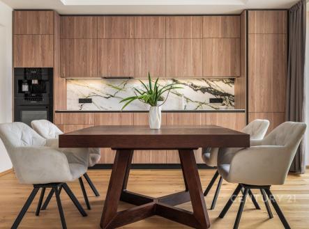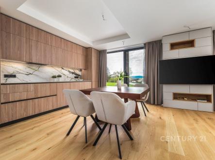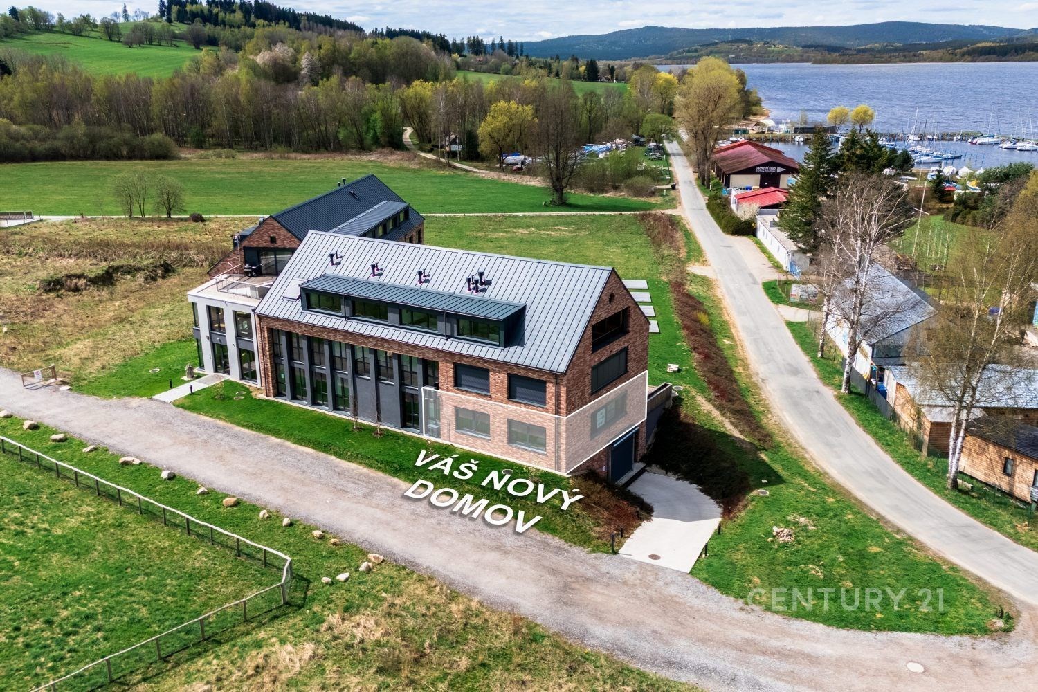 Exkluzivní nabídka. Dovolujeme si Vám nabídnout prodej luxusního apartmánu, polohou v atraktivní lokalitě chráněné krajinné oblasti Šumava, v Černé v Pošumaví. Apartmán je součástí projektu LakeSide Apartments Lipno, který byl dokončen v roce 2022 a poskytuje komfortní ubytování vícečlenné rodině a pod jeho návrhem je podepsán architekt ing. Petr Mužík. Apartmánu o dispozici 3+kk a podlahové ploše 99 m2 dominuje prostorný obývací pokoj s kuchyňským koutem a jídelnou, ze kterého je dvěma velkoplošnými francouzskými okny vstup na terasu (17 m2), ze které je výhled přímo na vodní nádrž Lipno. Kuchyňská linka je osazena spotřebiči Miele (indukční deska, trouba, mikrovlnná trouba, digestoř, lednice, mrazák a vestavěný kávovar). Apartmán dále disponuje dvěma ložnicemi, koupelnou (2 x umyvadlo, sprchový kout, WC), samostatným WC, předsíní a zádveřím. Pračka se sušičkou jsou zabudované do vestavěné skříně v předsíni, každý z pokojů je vybaven televizí. Příslušenstvím je sklepní kóje a garážové stání v suterénu budovy. Zabezpečení je mechanické (bezpečnostní vstupní dveře, okna jsou osazena venkovními žaluziemi a roletami) i elektronické (alarm s přípravou na připojení kamerového systému). V celém apartmánu byly použity vysoce kvalitní materiály, ať už se to týká podlah, obkladů, sanity, nábytku atd. Pro více informací nebo sjednání prohlídky kontaktujte makléře. Provozní náklady: záloha na služby a fond oprav: 4.707 Kč; + elektřina