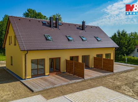 Nabízíme k prodeji moderní apartmán v atraktivní lokalitě obce Černá v Pošumaví - Bližná, jen pár kroků od Lipenského jezera. Tento apartmán o dispozici 3+kk a užitné ploše 83 m² je ideální pro rekreaci i trvalé bydlení. Apartmán je součástí menšího objektu se třemi jednotkami, každá s vlastním vchodem a parkovacím místem. V přízemí najdete zádveří, technickou místnost, toaletu a prostorný obývací pokoj s kuchyňským koutem, krbovými kamny a schodištěm. Podkroví nabízí dvě útulné ložnice a koupelnu se sprchovým koutem. Z obývacího pokoje je přístup na terasu. Součástí objektu je pozemek o rozloze 800 m² a ke každému ze tří apartmánů bude přidělen příslušný podíl. Při výstavbě byly použity pouze kvalitní materiály, díky kterým je energetická náročnost budovy třídy A. Klidná lokalita a blízkost jezera zaručují dokonalé prostředí pro rekreaci i aktivní odpočinek. V současné době probíhá kolaudace stavby. Nepropásněte tuto jedinečnou příležitost a domluvte si prohlídku.