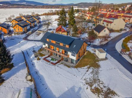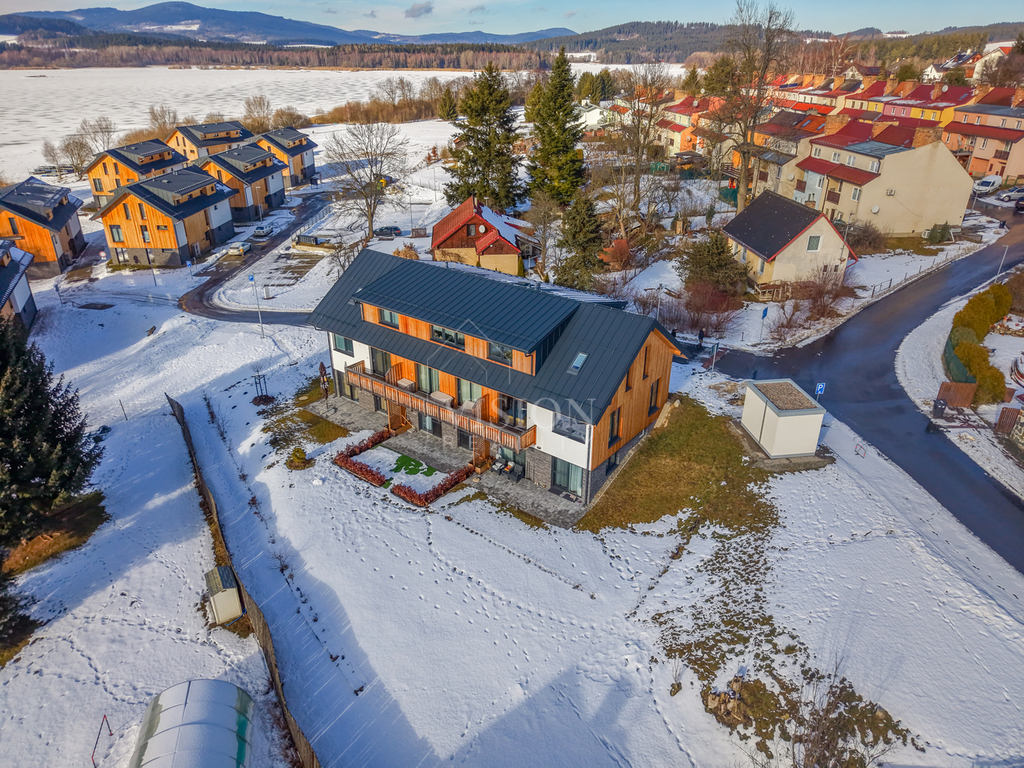V oblíbené lokalitě Černá v Pošumaví nabízíme k prodeji plně vybavený byt 1+kk o ploše 19 m², který se nachází v moderním rezidenčním projektu. Nemovitost je ideální volbou jak pro vlastní rekreaci či druhé bydlení, tak jako atraktivní investice v jedné z nejvyhledávanějších rekreačních oblastí u Lipna. Byt je již zavedený a úspěšně využívaný pro krátkodobé pronájmy, což umožňuje okamžité navázání na stávající provoz bez nutnosti dalších investic. Jedná se o byt v osobním vlastnictví, umístěný v přízemí domu, díky čemuž nabízí bezbariérový přístup a vysoký komfort užívání. Součástí prodeje je vyhrazené parkovací stání, které je již zahrnuto v ceně. Dispozici bytu tvoří světlá obytná místnost s plně vybaveným kuchyňským koutem, prakticky uspořádaná pro odpočinek, vaření i práci. Koupelna je vybavena moderním sprchovým koutem a toaletou. Byt se prodává kompletně vybavený a je ihned připraven k bydlení nebo dalšímu pronájmu. Celý objekt splňuje vysoké standardy kvality a energetická třída C – velmi úsporná zajišťuje nízké provozní náklady a komfortní bydlení po celý rok. Pokud vás nabídka zaujala, neváhejte nás kontaktovat.
