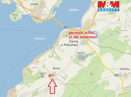 Nabízíme k prodeji prostorný byt 3+1 o celkové ploše 88 m². Okna orientovaná na sever, východ a západ poskytují krásný výhled do zeleně a okolí obce. Byt se nachází ve 2. patře domu bez výtahu, součástí jsou tři sklepy o celkové ploše 16 m² a velká komora. Dům je po rekonstrukci – zateplení, plastová okna, kotel na pelety. Samotný byt prošel zdařilou částečnou rekonstrukcí: zděné jádro, kuchyňská linka a část podlah. Ve dvou pokojích je potřeba dokončit pokládku podlah. Před domem je parkoviště. Veškerá občanská vybavenost je dostupná ve 2 km vzdálené Černé v Pošumaví a k lipenské pláži je to pouhý 1 km. Byt nabízí pohodlné bydlení v klidné lokalitě s krásným výhledem a možností vlastní úpravy interiéru. Pro více informací nás neváhejte kontaktovat.