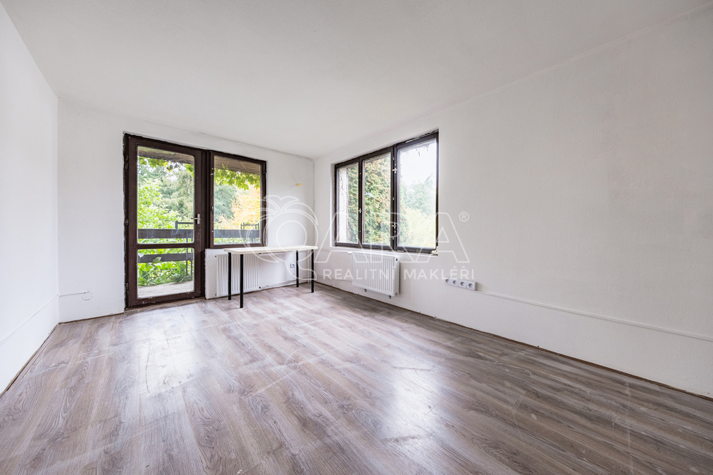 Nabízím k prodeji zděnou chatu o dispozici 3+1 v klidné a vyhledávané lokalitě Černé Voděrady, okres Praha-východ. Nemovitost se nachází v bezprostřední blízkosti přírodní rezervace Voděradské bučiny, jednoho z nejkrásnějších lesních komplexů ve středních Čechách. Ideální místo pro milovníky klidu, přírody a odpočinku, přitom jen 35 minut jízdy od Prahy. Chata stojí na pozemku o výměře 53 m² (zastavěná plocha a nádvoří), a k ní náleží zahrada o velikosti 406 m². Celková plocha pozemku tak činí 459 m². K objektu je hlavní přístup po obecní komunikaci, zároveň je součástí prodeje podíl na příjezdové cestě ze zadní strany pozemku, což zajišťuje pohodlný přístup z obou stran. Před dvěma lety prošla chata částečnou rekonstrukcí, při které byla kompletně zrekonstruována koupelna a toaleta, provedeny nové elektrické rozvody v mědi a další úpravy pro zvýšení komfortu. Objekt je v dobrém, udržovaném stavu a vhodný jak k rekreaci, tak i k celoročnímu bydlení. Chata má tři podlaží: Suterén: garáž ovládaná elektrickými vraty a technické zázemí s kotlem Atmos, který umožňuje vytápění celé chaty. První podlaží: prostorná předsíň, obývací pokoj s krbovými kamny, kuchyňka s jídelním koutem, toaleta a koupelna se sprchovým koutem a umyvadlem. V tomto podlaží byla vyměněna původní dřevěná okna za plastová s roletami den/noc, což přispívá k vyššímu komfortu. Druhé podlaží: dvě útulné ložnice s plovoucí podlahou, z obou je vstup na prostornou terasu s krásným výhledem do okolní zeleně. V tomto podlaží jsou původní dřevěná okna, která zachovávají původní charakter chaty. Z terasy je pomocí výsuvných schodů přístup na plochou střechu, která může sloužit například jako vyhlídkové či odpočinkové místo a do budoucna je vhodné i pro umístění fotovoltaiky. Chata je částečně zařízená – k dispozici je myčka nádobí, mikrovlnná trouba, lednice, odsavač par, pračka a sušička, takže je připravena k okamžitému užívání bez nutnosti dalších investic. K objektu náleží udržovaná zahrada se vzrostlými stromy o výměře 406 m², jejíž dominantou je nádherná magnólie, která na jaře vytváří jedinečnou atmosféru. Zahradu ze dvou stran lemují vzrostlé túje, které zajišťují naprosté soukromí a klid. Na pozemku se dále nachází kůlna, kterou lze využít ke skladování dřeva a částečně také jako dílnu, a přístřešek vhodný k posezení. K dispozici je také gril a otevřené ohniště, ideální pro letní večery s rodinou či přáteli. Inženýrské sítě: elektřina 230 V (nové rozvody v mědi), voda z vlastní studny, odpad sveden do jímky. Vytápění: krbová kamna na tuhá paliva nebo kotel Atmos. Okolí nabízí skvělé možnosti pro turistiku, cykloturistiku, houbaření i koupání. Přírodní rezervace Voděradské bučiny s množstvím cest a rybníků je ideálním místem pro aktivní i klidnou rekreaci. Doprava je možná autem i přímým autobusem z Prahy. Kompletní finanční servis Vám rádi zajistíme. Kontaktujte mne pro termín prohlídky. Těším se na Vás.