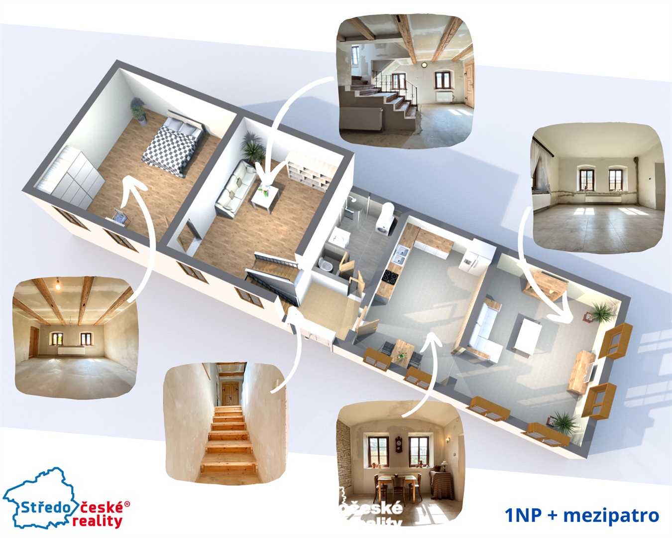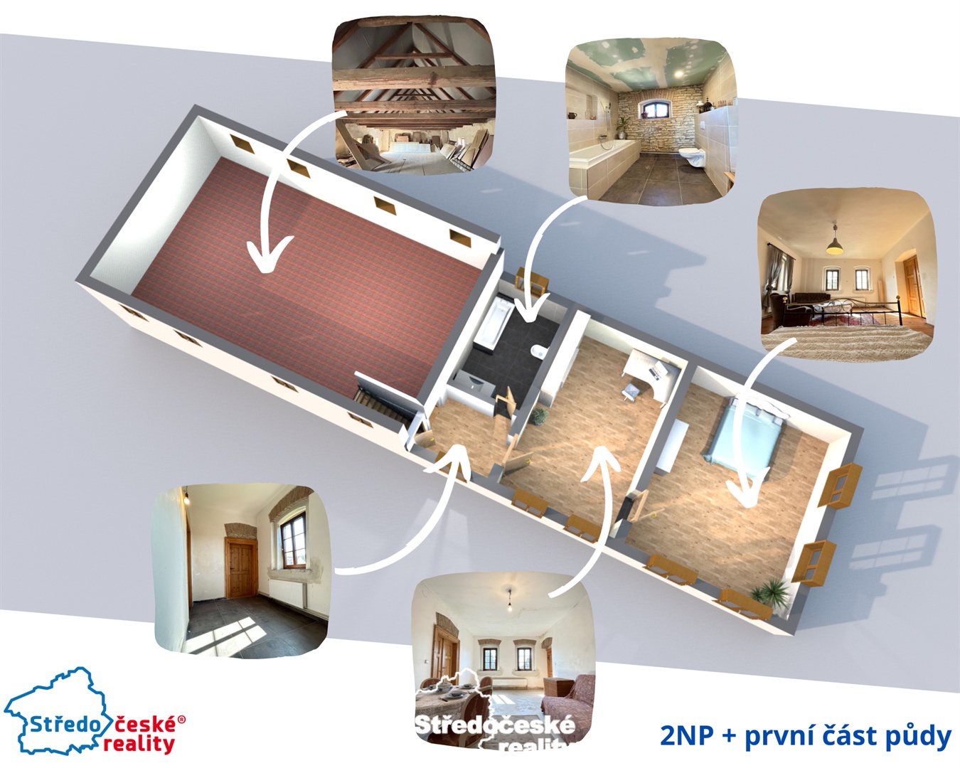 Stylové venkovské bydlení s duší historie – Černěves u Roudnice n. Labem. Hledáte místo s charakterem, které není součástí typizované satelitní výstavby, a přesto nabízí dobrou dostupnost do Prahy? Pak právě pro Vás máme jedinečnou nabídku! V malebné a klidné obci Černěves, pouhé 4 km od Roudnice nad Labem a jen 9 km od dálnice D8 (cca 35 minut na okraj Prahy), se nachází historický dům s bohatou historií sahající až do roku 1880. Nemovitost s potenciálem a atmosférou. Uzavřený areál o celkové rozloze 662 m² tvoří: • hlavní obytná stavba • dvě přístavby (z toho jedna historická s klenutými místnostmi) • útulné nádvoří s venkovským kouzlem Dům prošel částečnou rekonstrukcí: • nová střecha (2020) včetně výměny části krovu, pojistné fólie, kontralatí a impregnace proti škůdcům • nová okna, elektroinstalace, vodovodní a odpadní rozvody • rozvod topení s radiátory, připravený pro připojení tepelného čerpadla (možnost využití dotací) • jedna kompletně zrekonstruovaná koupelna, druhá ve fázi rekonstrukce • nové omítky, zateplený strop s přiznanými trámy, sádrokarton, připravené podlahy • kvalitní dlažba v kuchyni a obývacím pokoji dovezená ze zahraničí Dispozice a možnosti využití. Dům je momentálně řešen jako jednogenerační, ale díky členitosti interiéru jej lze upravit i na dvougenerační bydlení. Přízemí: • vstup přes nádvoří do zádveří • koupelna, kuchyně připravená na osazení linky, prostorný obývací pokoj • dvě samostatné místnosti přístupné přímo ze dvora Mezipatro: • otevřená hala vhodná jako další obývací prostor • vstup do ložnice 2. nadzemní podlaží: • chodba, nová koupelna, 1 průchozí pokoj, 1 neprůchozí pokoj • vstup na půdu Půda má dvě úrovně s možností dalšího rozšíření: ◦ první část: cca 60 m², nadezdívka 2,2 m, výška ke hřebeni 5 m, 8 oken ◦ druhá část: cca 54 m², výška ke hřebeni 3,5 m, dvě štítová okna Přístavky: 1. přístavek: původní zbořeniště s dvěma klenutými místnostmi – ideální pro ateliér, vinárnu nebo dílnu 2. přístavek: torzo původních hospodářských staveb Technické informace • napojení na obecní vodovod a kanalizaci • k dispozici původní studna – ideální pro zalévání zahrady Lokalita a občanská vybavenost • Černěves – klidná vesnička s obecním úřadem a autobusovou zastávkou • Veškerá občanská vybavenost (školy, školky, obchody, služby) v Roudnici nad Labem (4 km) • Dálnice D8: 9 km (exit Roudnice n. L.) • Praha – cca 35–40 minut autem Ideální pro rodinné bydlení, víkendový dům nebo investici s historickým kouzlem. Nemovitost je bez omezení vlastnického práva. Možnost platby hypotékou, kterou vám s garancí vrácení zálohy zajistíme. Neváhejte mě kontaktovat pro více informací nebo domluvení prohlídky. Máte rádi nemovitosti s duší, které si můžete upravit podle vlastních představ? Tento dům je připraven na Vaši kreativitu a energii. Doplňující info: V Roudnici nad Labem je plánovaná výstavba, terminál Roudnice nad Labem, díky kterému se cestovní doba do centra Prahy zkrátí na 19 minut, do Ústí nad Labem na 24 minut. Terminál nabídne rychlé spojení i do dalších měst v ČR a zahraničí, například do Brna, Ostravy, Drážďan či Vídně. Projekt je nyní ve fázi přípravy dokumentace pro územní rozhodnutí, výstavba je plánována na roky 2027 až 2030.
