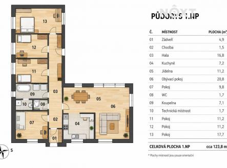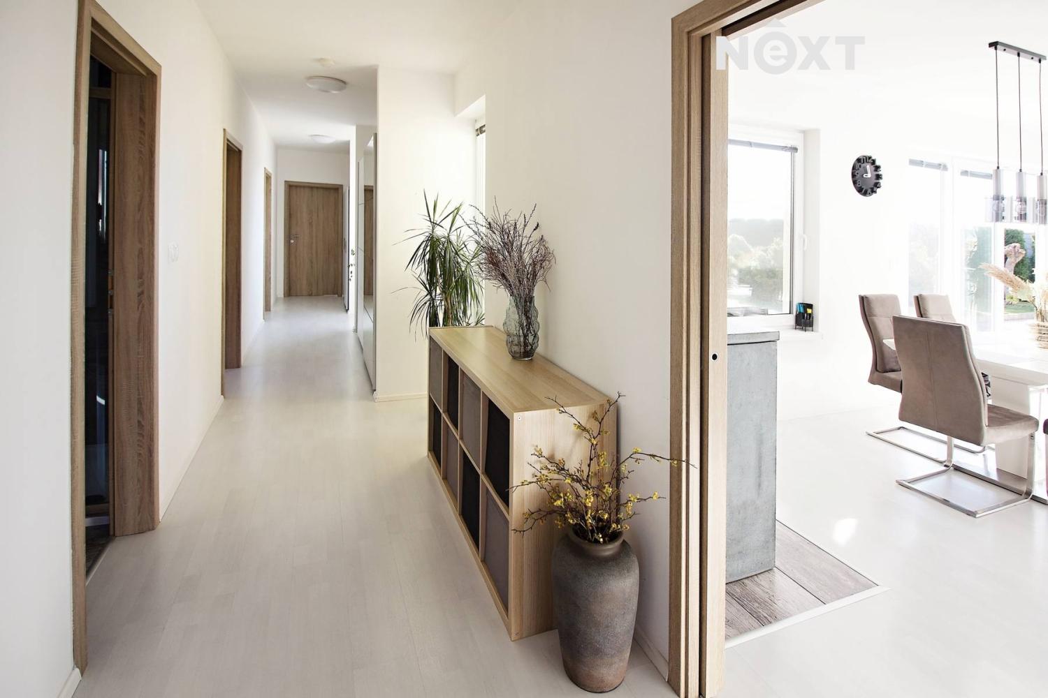 Nabízíme k prodeji moderní přízemní rodinný dům typu bungalov o dispozici 5+1 v oblíbené obci Černilov, pouhých 5 km od Hradce Králové. Dům o užitné ploše 124 m² stojí na pozemku o výměře 905 m². Kolaudace proběhla v 11/2016. Dispozice domu: Vstup je řešen přes zádveří (6,1 m²), na které navazuje chodba (8,2 m²) a prostorná hala (10,1 m²) se vstupy do jednotlivých místností. Dominantou domu je světlý a otevřený obytný prostor, který přirozeně propojuje: • kuchyni (10,6 m²) • jídelnu (15,9 m²) • obývací pokoj (22,8 m²) Tento celek tvoří příjemné místo pro každodenní rodinný život i setkávání s přáteli. Dům dále nabízí čtyři samostatné pokoje o velikostech 12,5 m², 12,0 m², 13,2 m² a 17,0 m², které lze využít jako ložnice, dětské pokoje či pracovnu. Součástí zázemí je koupelna (6,8 m²), samostatné WC (1,8 m²) a technická místnost (3,6 m²). Dispozice domu je velmi praktická – odděluje klidovou část od společenské, což zajišťuje dostatek soukromí pro všechny členy domácnosti. Dům je ve výborném stavu a umožňuje okamžité nastěhování bez nutnosti rekonstrukcí. Vytápění je řešeno elektrickým podlahovým topením, doplněným topnými tělesy a krbovými kamny. K dispozici je také vrtaná studna (20 m). Na pozemku se nachází kryté parkovací stání pro 2 automobily a zahradní domek s úložným prostorem. Obec Černilov patří mezi vyhledávané lokality díky své kompletní občanské vybavenosti (škola, školka, zdravotní středisko, pošta, obchody, restaurace, sportoviště). Černilov nabízí velmi dobrou dopravní dostupnost. Do nedalekého Hradce Králové (cca 5 km) se pohodlně dostanete pravidelnými autobusovými spoji během několika minut. V blízkosti se nachází také Jaroměř (zhruba 13 km) a Třebechovice pod Orebem (cca 10 km), odkud je snadné napojení na dálnici směrem na Prahu. Koupi lze financovat hypotečním úvěrem, s jehož vyřízením vám rádi pomůžeme. Prodávající si vyhrazuje právo vybrat kupujícího dle vlastních kritérií. Pro komunikaci uvádějte evidenční číslo zakázky N117584.