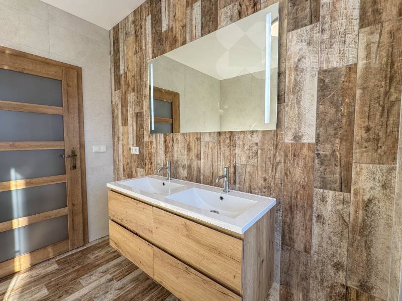 Moderní novostavba 4+kk s výhledem na České středohoří v obci Černiv, okres Litoměřice. Nájezd na dálnici D8 je 10 minut cesty. Hledáte místo, kde se snoubí klid venkova, moderní bydlení a dechberoucí výhledy na České středohoří? Pak vás tento dům v obci Černiv zaručeně osloví. Nabízím k prodeji moderní rodinný dům, zkolaudováný před Vánoci roku 2025, který splňuje veškeré nároky na komfortní a úsporné bydlení. Dům má zastavěnou plochu 180 m2 a podlahovou plochu 150 m2. Dispozice 4+kk je navržena s důrazem na prostor, světlo a praktičnost. Dominantou domu je prostorný obývací pokoj s kuchyní o velikosti téměř 45 m2, který nabízí ideální místo pro rodinný život i setkávání s přáteli. Hlavní přednosti domu: - moderní plovoucí podlahy v celém obytném prostoru - podlahové vytápění v celém domě + plovoucí podlaha - úsporné tepelné čerpadlo voda vzduch - koupelna se sprchovým koutem, vanou a toaletou - samostatné WC u vstupu do domu - vazníková střecha poskytující velkorysý úložný prostor - klidná lokalita s krásnými výhledy do okolní krajiny Tento dům je ideální volbou pro ty, kteří hledají nové, moderní a úsporné bydlení v přírodě, ale s dobrou dostupností do okolních měst. Informace k PENB - Celková dodaná energie: 111 kWh/m2.rok (třída B). Měrná potřeba tepla na vytápění: 70 kWh/m2.rok V případě zájmu mě neváhejte kontaktovat. S financováním Vám rádi pomůžeme.