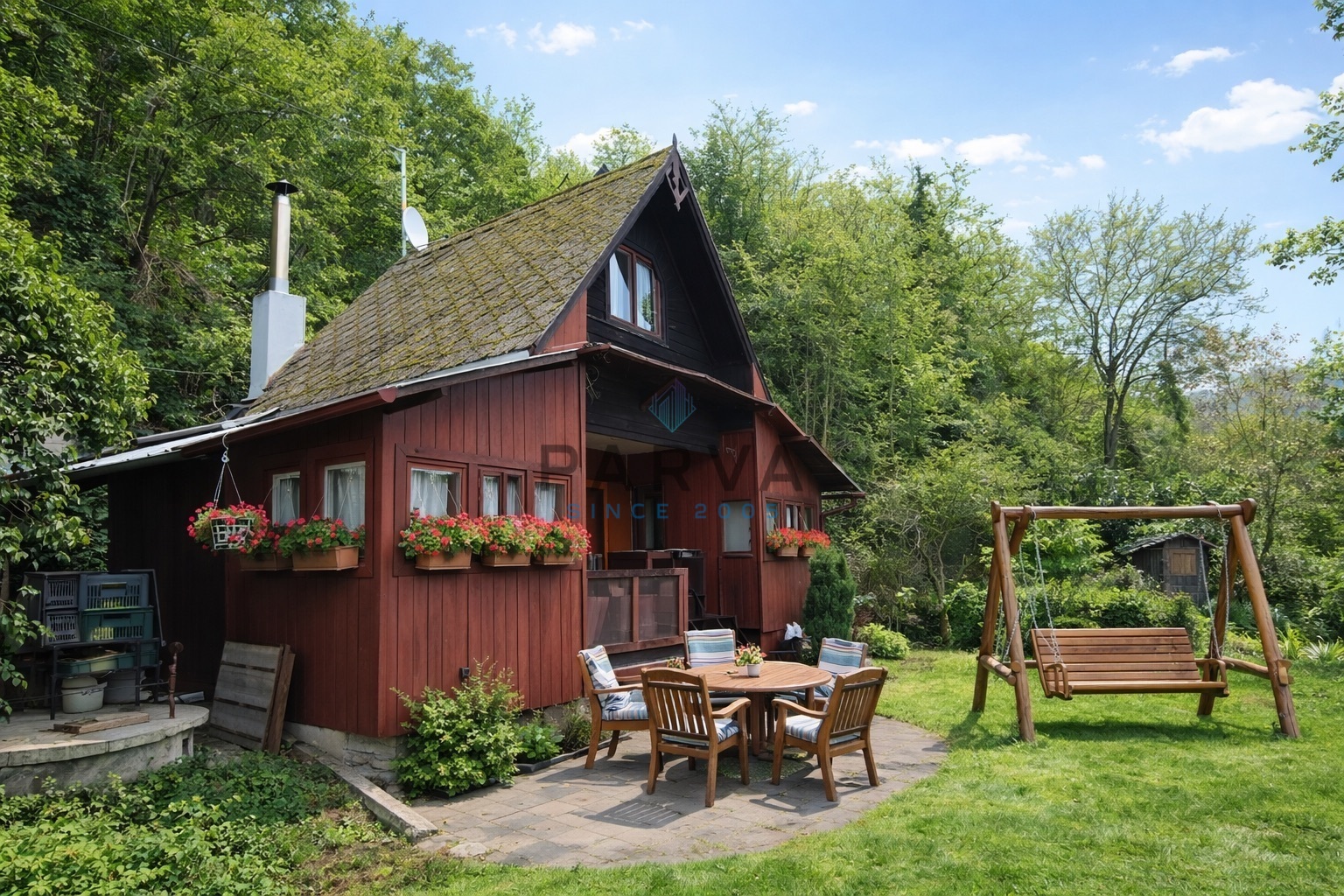 Prodám chatu v obci Černošice Praha - západ u řeky Berounky v části Mokropsy. Chata se nachází na vlastním pozemku v osadě - Lavičky jako jedna z posledních v řadě obklopená přírodou. Objekt je dřevěný o dispozici 3+1 o rozloze 63m2 dle L.V. V chatě se nachází veranda, kuchyňský kout (sporák na PB) který je spojený s obývacím pokojem. Pokoj pro hosty je propojený s terasou a verandou . Z obývacího pokoje vedou dřevěné schody do podkroví kde se nachází ložnice. TV , internet - skylink. U hlavních dveří za verandou po levé straně je přírodní sprchový kout s umyvadlem a bojlerem na ohřev vody. Po pravé straně letní kuchyň se sporákem s myčkou a pračkou. Za letní kuchyní je napojena kolna na nářadí na lednici a mrazák. WC je zděný od chaty oddělen. Vytápění je zajištěno kamny na tuhá paliva. Studna je na pozemku s užitkovou vodou . Pitná voda je k dispozici v osadě, klíč stojí 300,-Kč za rok. Kanalizace - trativod. Elektrická energie je rozvedena po celém objektu. Plyn v osadě není . Za odpady se platí ročně 820,- Kč. Parkoviště je cca. 50m od objektu za roční poplatek 4.500,- Kč. Na pozemku o rozloze 410m2 se nachází keře, stromy, záhony s květinami a posezení k odpočinku s výhledem na splav a řeku Berounku u řeky před chatou je přípojka na koš a čerpadlo na napájení vody na zalevání zahrady. Objekt je oplocený. V Černošicích je občanská vybavenost, v osadě je pouze hospůdka. V Dobřichovicích jsou obchodní domy - Billa, Lídl. Jedná se o klidnou lokalitu. Dopravní dostupnost je výborná jak vlakem tak i autobusem v krátkých intervalech. Obec je součástí Pražské integrované dopravy (PID). Nejbližší stanice od chaty jsou Černošice - Mokropsy. Chata po větší rekonstrukci by byla vhodná i k trvalému bydlení. Chata se prodává s vybavením. Právní a finanční servis zajistíme. Cena je k jednání a já se na Vás budu těšit v osadě od shonu všedního dne. Poslední osm fotek je vizualizace pro Vaší představu.