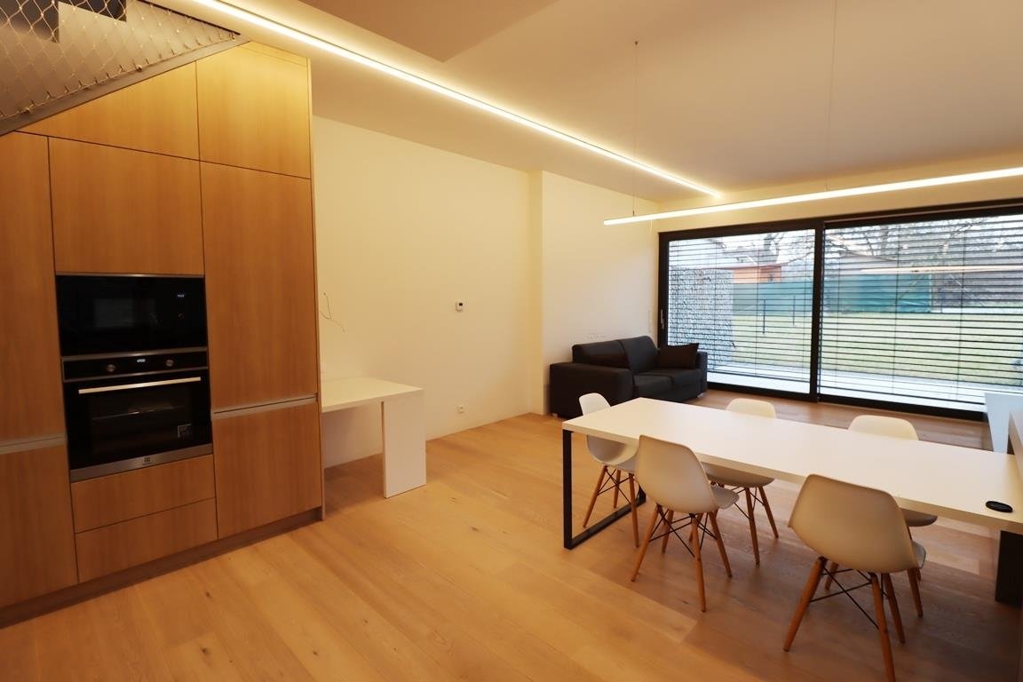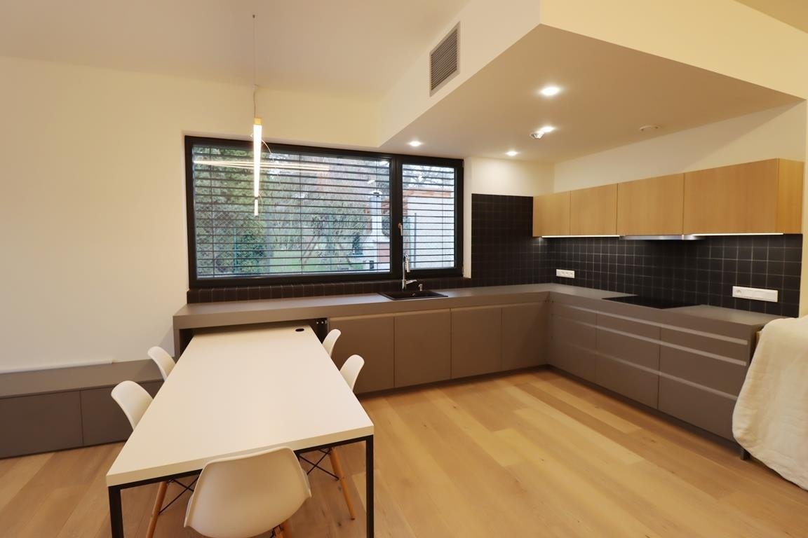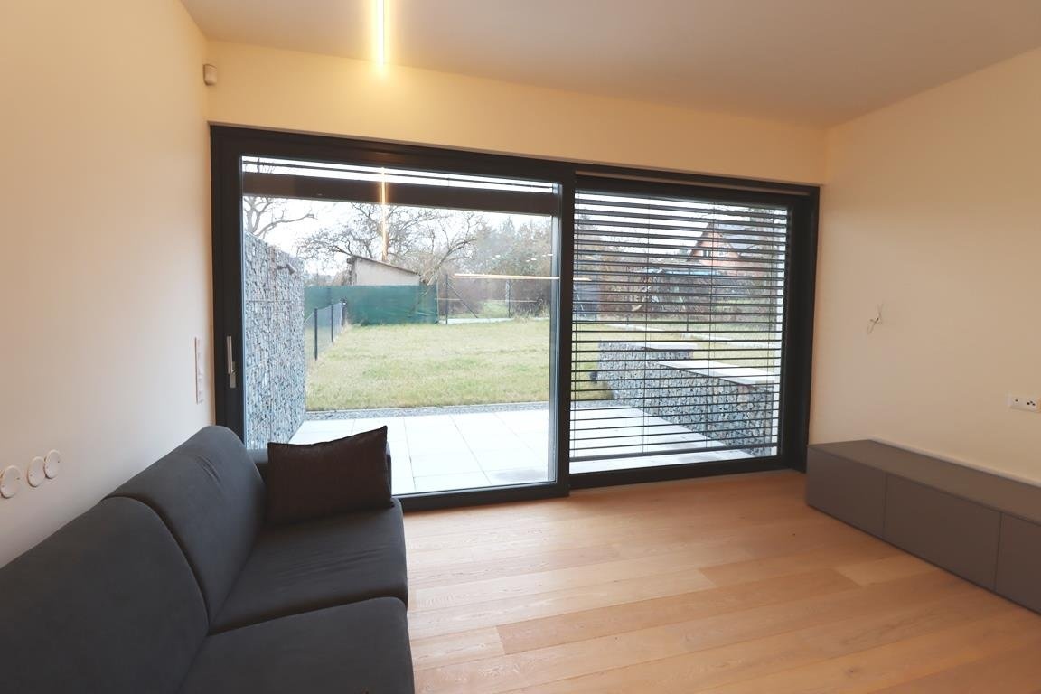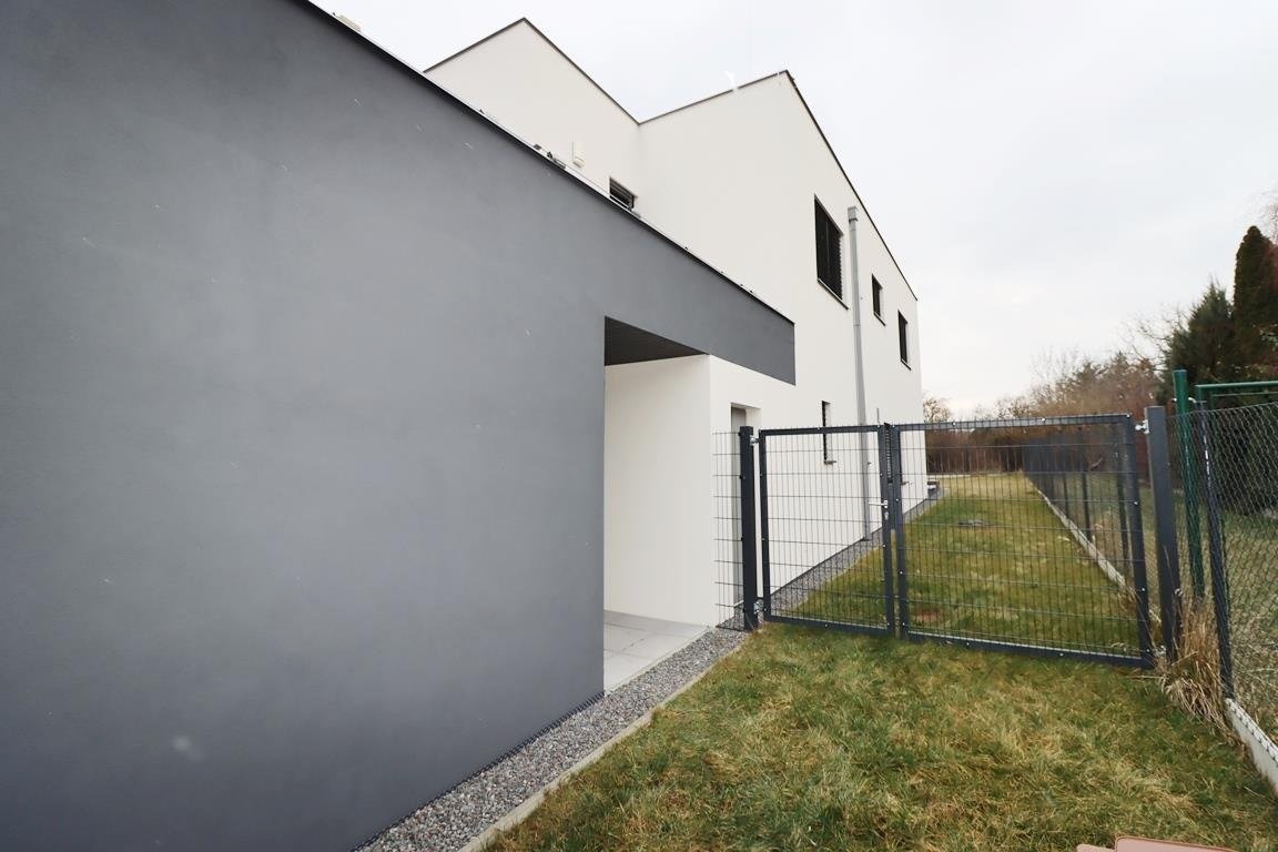 GAUDÍ Černošice nabízí pronájem dvoupodlažní elegantní architektonicky zdařilé dvoupodlažní novostavby 4+kk+pokojíček(šatna/pracovna), s terasou, se zahradou, skladovacím prostorem pro sportovní potřeby, jední, krytým parkovacím místem a druhým venkoním parkovacím místem. Interiér je vybaven designovým nábytkem na míru, mimo postelí a zahradního nábytku je dům celý zařízený a poskytuje dostatek úložného prostoru. Moderní vzdušné interiéry jsou navrženy architektem, bílá výmalba. Dům stojí na výborně umístěném pozemku v obci, perfektní orientace ke světovým stranám, vstup ze severu, okna a zahrada k jihu a západu. Objekt se nachází na velmi ceněném místě v Černošicích (cca 400m Centra Vráž s obchody a lékaři), místo je klidné a slunné, příjezd po asfaltové komunikaci. Zděná novostavba s izolacemi, všechna dřevěná okna otvírací s trojsklem a s venkovními elektricky ovládanými předokenními žaluziemi, podlahové vytápění úsporným plynovým kotlem, dům s rekuperací. V horkých letních dnech se díky žaluziím, dobré izolaci a rekuperaci dá v domě uchovat příjemný chládek Objekt je zajištěn zabezpečovacím zařízením, možnost napojení na PCO. Velká kuchyňská linka vybavena vestavěnými spotřebiči myčka 60cm, velká lednice s mrazákem, el.trouba i mikrovlnná trouba, el.varná deska a digestoř, v koupelně pračka. Podlahy dřevěné dubové olejované, nebo lité stěrky. U ulice se nachází jedno kryté parkovací místo, místo pro parkování druhého auta nekryté Dispozice - Vstup = zádveří společné i pro vedlejší dům, celá budova je „dvojdům“, pronajímá se jedna samostatná část. Vstupní prostor s velkou šatnou napojený na obývací pokoj s kuchyní, výstup na terasu a do zahrady. Od vstupního prostoru vede schodiště do patra, kde se nachází dva samostatné pokoje jako dětské, koupelna s vanou, samostatné WC, dále ložnice se skříní po celé stěně s další místnost s oknem – lze využít jako 5.pokoj-pracovnu, nebo jako šatnu a sklad… Útulná zahrada poskytuje klid slunce a soukromí, možnost zalévání dešťovou vodou. V krátké docházkové vzdálenosti - základní škola, zastávka vlaku i BUS, mateřské školy, občanská vybavenost v OC Vráž, vždy příjemná cesta zahradami s vilkami. Nájemné 44tis.Kč měsíčně plus zálohy na služby cca 4,5 - 5tis.Kč + elektřina domácnosti. Nabízený objekt poskytuje nadstandardní, pohodlné, praktické a velmi příjemné bydlení, volný od 1.5.2026. Podrobnější informace včetně výše poplatků, jistoty, provize, domluvení prohlídky u realitní specialistky pro Černošice a okolí Ing. Romany Moravcové na tel. 777 777 906