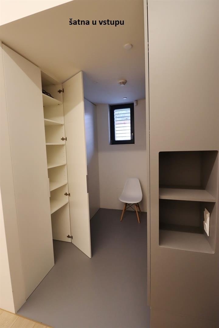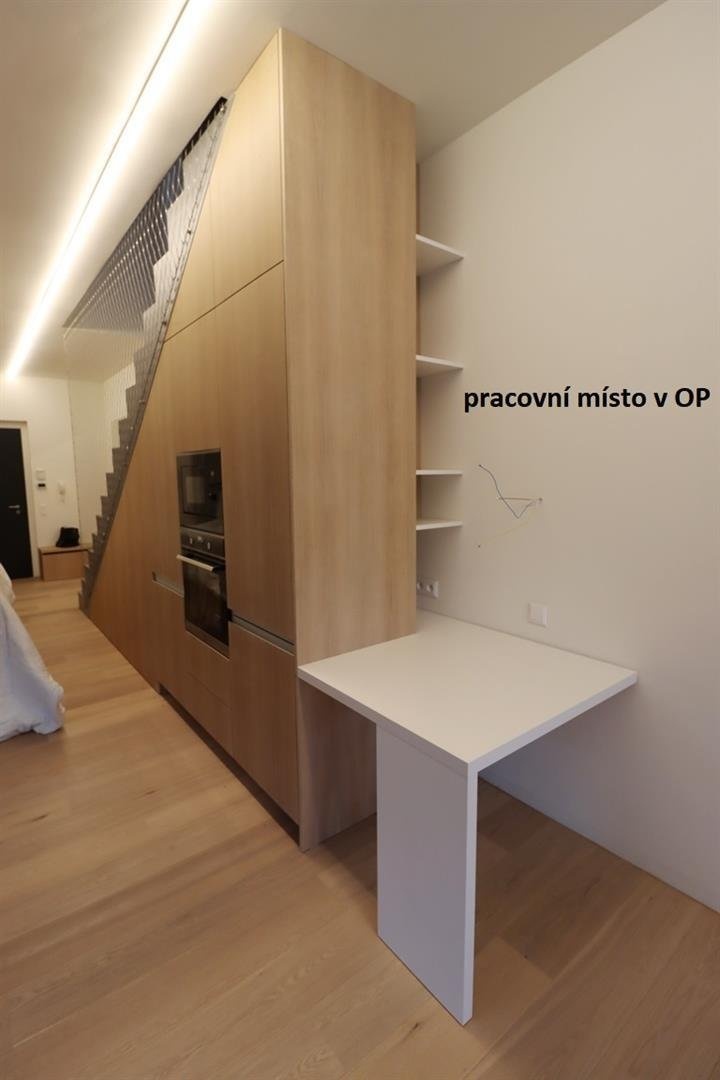 GAUDÍ Černošice nabízí pronájem dvoupodlažní elegantní architektonicky zdařilé dvoupodlažní novostavby 4+kk+pokojíček(šatna/pracovna), s terasou, se zahradou, skladovacím prostorem pro sportovní potřeby, jední, krytým parkovacím místem a druhým venkoním parkovacím místem. Interiér je vybaven designovým nábytkem na míru, mimo postelí a zahradního nábytku je dům celý zařízený a poskytuje dostatek úložného prostoru. Moderní vzdušné interiéry jsou navrženy architektem, bílá výmalba. Dům stojí na výborně umístěném pozemku v obci, perfektní orientace ke světovým stranám, vstup ze severu, okna a zahrada k jihu a západu. Objekt se nachází na velmi ceněném místě v Černošicích (cca 400m Centra Vráž s obchody a lékaři), místo je klidné a slunné, příjezd po asfaltové komunikaci. Zděná novostavba s izolacemi, všechna dřevěná okna otvírací s trojsklem a s venkovními elektricky ovládanými předokenními žaluziemi, podlahové vytápění úsporným plynovým kotlem, dům s rekuperací. V horkých letních dnech se díky žaluziím, dobré izolaci a rekuperaci dá v domě uchovat příjemný chládek Objekt je zajištěn zabezpečovacím zařízením, možnost napojení na PCO. Velká kuchyňská linka vybavena vestavěnými spotřebiči myčka 60cm, velká lednice s mrazákem, el.trouba i mikrovlnná trouba, el.varná deska a digestoř, v koupelně pračka. Podlahy dřevěné dubové olejované, nebo lité stěrky. U ulice se nachází jedno kryté parkovací místo, místo pro parkování druhého auta nekryté Dispozice - Vstup = zádveří společné i pro vedlejší dům, celá budova je „dvojdům“, pronajímá se jedna samostatná část. Vstupní prostor s velkou šatnou napojený na obývací pokoj s kuchyní, výstup na terasu a do zahrady. Od vstupního prostoru vede schodiště do patra, kde se nachází dva samostatné pokoje jako dětské, koupelna s vanou, samostatné WC, dále ložnice se skříní po celé stěně s další místnost s oknem – lze využít jako 5.pokoj-pracovnu, nebo jako šatnu a sklad… Útulná zahrada poskytuje klid slunce a soukromí, možnost zalévání dešťovou vodou. V krátké docházkové vzdálenosti - základní škola, zastávka vlaku i BUS, mateřské školy, občanská vybavenost v OC Vráž, vždy příjemná cesta zahradami s vilkami. Nájemné 44tis.Kč měsíčně plus zálohy na služby cca 4,5 - 5tis.Kč + elektřina domácnosti. Nabízený objekt poskytuje nadstandardní, pohodlné, praktické a velmi příjemné bydlení, volný od 1.5.2026. Podrobnější informace včetně výše poplatků, jistoty, provize, domluvení prohlídky u realitní specialistky pro Černošice a okolí Ing. Romany Moravcové na tel. 777 777 906