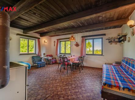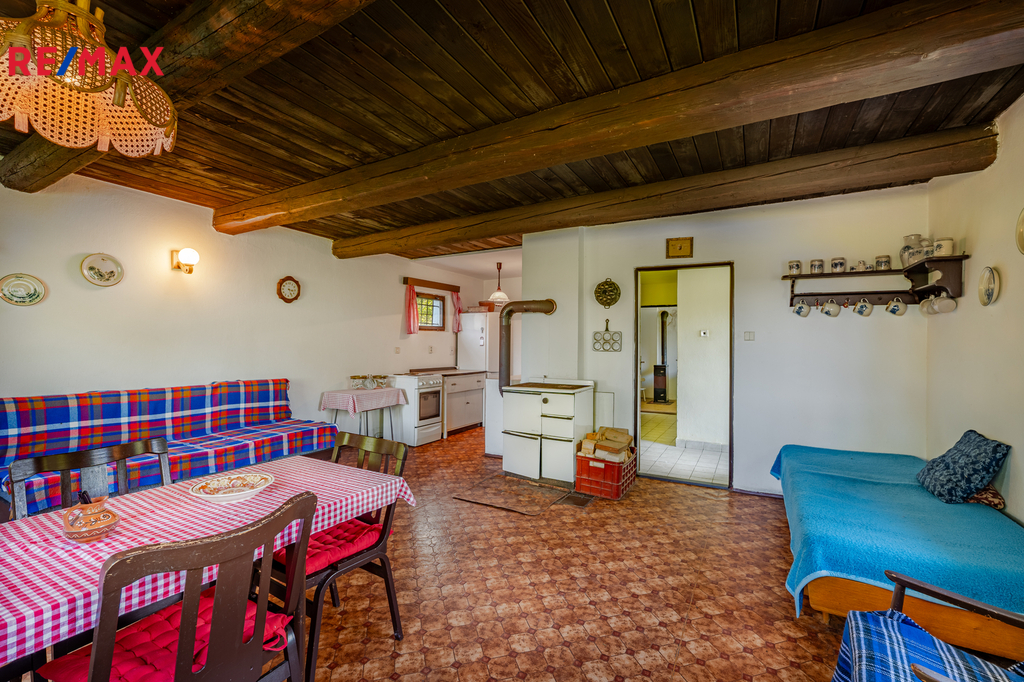 Hledáte místo, kde si skutečně odpočinete od ruchu města? Pak by vás mohla zaujmout tato chalupa v malebné osadě Rytov u Černovic. Rytov je klidná vesnička na Vysočině, kde podle posledního sčítání žije pouhých 23 obyvatel. Právě díky tomu zde najdete naprostý klid a ideální prostředí pro trávení volného času s rodinou či přáteli. Do nedalekých Černovic (cca 3 km) se pohodlně dostanete autem nebo na kole. Najdete zde obchody, restaurace, poštu i základní školu. V létě vás potěší místní koupaliště a rybníky v okolí. Chalupa má dispozici 3+kk. Srdcem domu je prostorný obývací pokoj s kuchyňským koutem, který je ideální pro společné chvíle u kamen. Dále jsou zde dva samostatné pokoje, koupelna, samostatné WC a garáž. Pokud by vám stávající dispozice nestačila, půda nabízí možnost dalšího rozšíření o nové obytné místnosti. Vytápění zajišťují krbová kamna v každé místnosti, voda je ze studny a odpad je sveden do septiku. Pozemek o výměře 1 392 m² poskytuje dostatek prostoru pro zahradu, bazén, pergolu nebo třeba výběh pro vašeho čtyřnohého kamaráda. Okolní krajina je jako stvořená pro aktivní odpočinek. Celá oblast Vysočiny je protkána cyklostezkami a turistickými trasami, které vedou přes hluboké lesy, louky a mezi rybníky. V okolí Rytova narazíte na spoustu míst ideálních k houbaření, koupání, cyklovýletům i klidným procházkám. Milovníci výletů mohou navštívit Červenou Lhotu, Jindřichův Hradec, zříceninu Choustník, malebné město Žirovnice nebo Kamenici nad Lipou s krásným zámeckým parkem a muzeem hraček. Dojezdová vzdálenost do historické Telče, zapsané na seznamu UNESCO, je přibližně 35 minut. Tato chalupa je ideálním místem pro každého, kdo hledá opravdové zklidnění, soukromí a blízkost přírody. Ať už plánujete víkendové útěky z města, letní prázdniny s dětmi nebo trvalé bydlení v souladu s přírodou, Rytov vám nabídne přesně to, co hledáte.