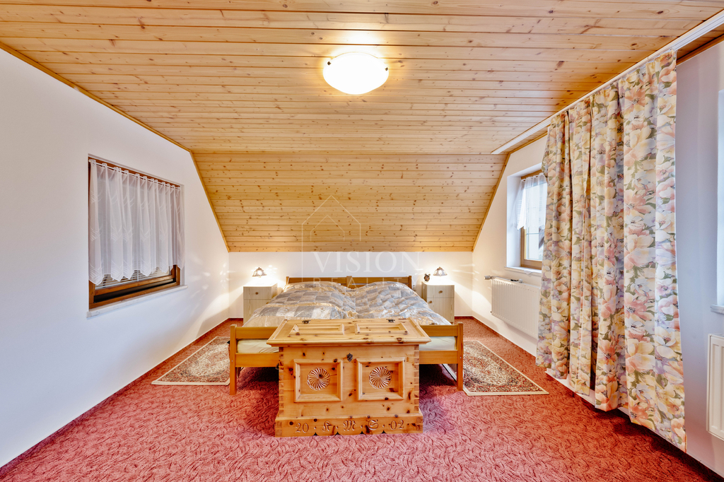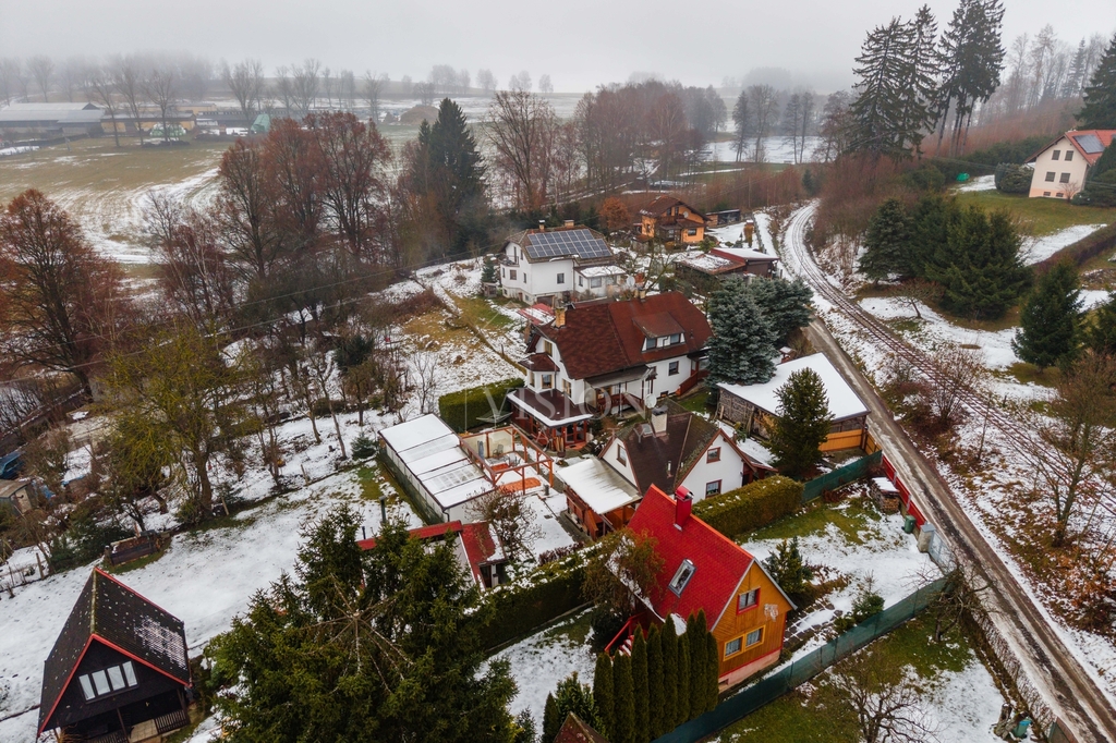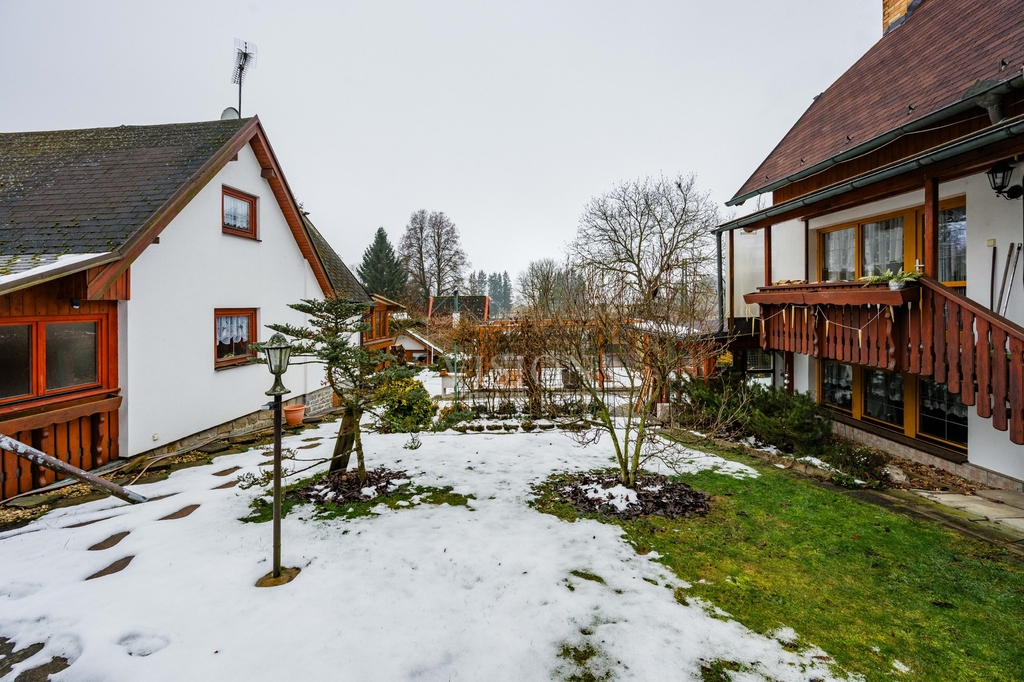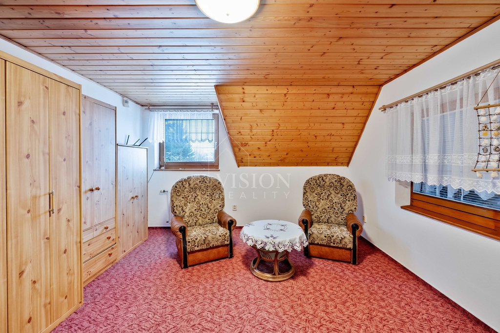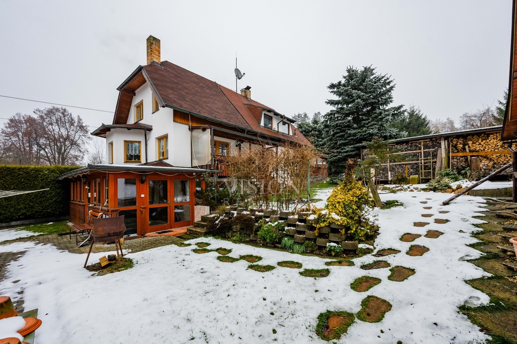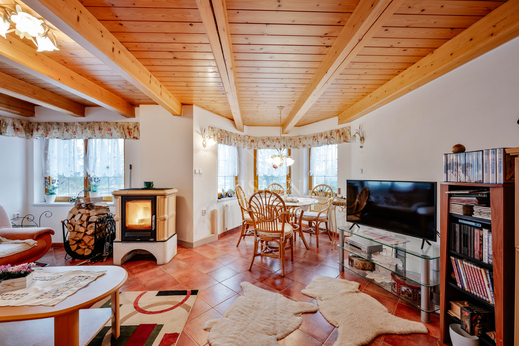Nabízíme k prodeji prostorný a pečlivě udržovaný rodinný dům v obci Černovice, na adrese Husovy Sady 465. Nemovitost leží na pozemku o velikosti 934 m² a nabízí celkovou užitnou plochu 400 m². Dům je ve výborném technickém stavu a poskytuje komfortní zázemí nejen pro velkou rodinu, ale také možnost vícegeneračního bydlení či propojení bydlení s podnikáním. V přízemí domu se nachází prostorná kuchyně s krbovými kamny, která nejen vytvářejí příjemnou atmosféru, ale díky sálavému teplu také efektivně vytopí celou místnost. Na kuchyni navazuje společenská místnost ideální pro rodinná setkání či posezení s přáteli. Přirozené světlo zde doplňuje vstup na verandu, která rozšiřuje obytný prostor směrem do zahrady a poskytuje příjemné místo pro odpočinek. Velkým benefitem je i stylová vinotéka, která nabízí unikátní prostor pro uskladnění vína i drobné degustace. Druhé nadzemní podlaží působí jako samostatná obytná jednotka – díky vlastní verandě, velké kuchyni, útulnému obývacímu pokoji s krbovými kamny a koupelně poskytuje skvělé zázemí jak pro velkou rodinu, tak například pro vícegenerační bydlení. Třetí podlaží pak nabízí klidovou zónu se dvěma dětskými pokoji a prostornou ložnicí, odkud je krásný výhled na zahradu. Vytápění zajišťuje plynový kotel, dům je napojen na veřejný vodovod a disponuje vlastní čističkou odpadních vod. Přečištěná voda je svedena do nádrže a následně využívána pro zavlažování zahrady – praktické a úsporné řešení. Součástí prodeje je také plně vybavená chata umístěná na pozemku. V přízemí chaty se nachází předsíň, obývací pokoj s kuchyňským koutem a koupelna, v patře pak ložnice a dětský pokoj, což poskytuje ideální prostor pro návštěvy nebo rekreační využití. Na pozemku se dále nachází kryté parkování pro dvě vozidla, dílna a zcela zastřešený bazén, který umožňuje koupání i za horšího počasí a výrazně prodlužuje koupací sezónu. Zastřešení zároveň zajišťuje nižší nároky na údržbu a udržuje vodu v příjemné teplotě. Černovice jsou vyhledávanou lokalitou s nádhernou okolní přírodou, výbornou občanskou vybaveností a pohodlným spojením do blízkých měst, jako je Jindřichův Hradec, Kamenice nad Lipou nebo Jarošov nad Nežárkou. Okolí nabízí bohaté možnosti pro cykloturistiku, turistiku, koupání, zimní sporty i houbaření. Jde o ideální místo pro klidné rodinné bydlení se snadnou dostupností všech potřebných služeb. Pro více informací kontaktujte makléře!